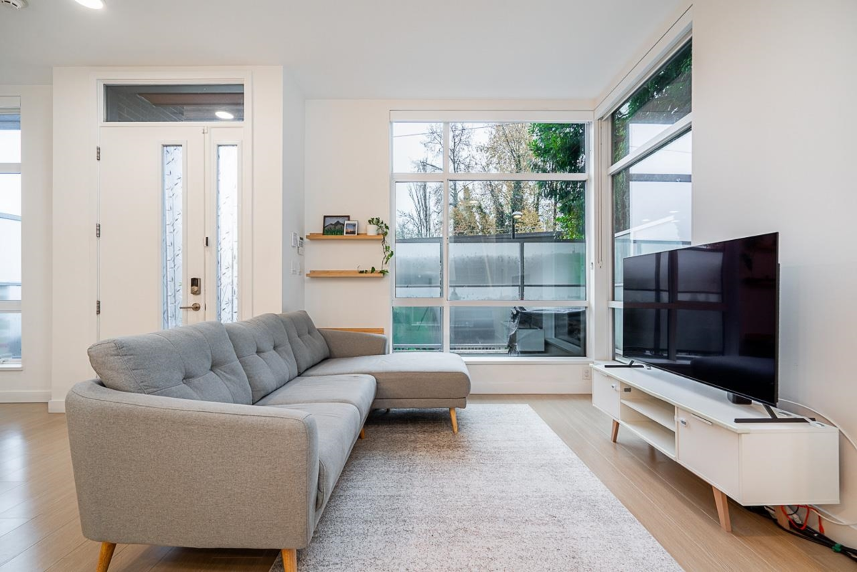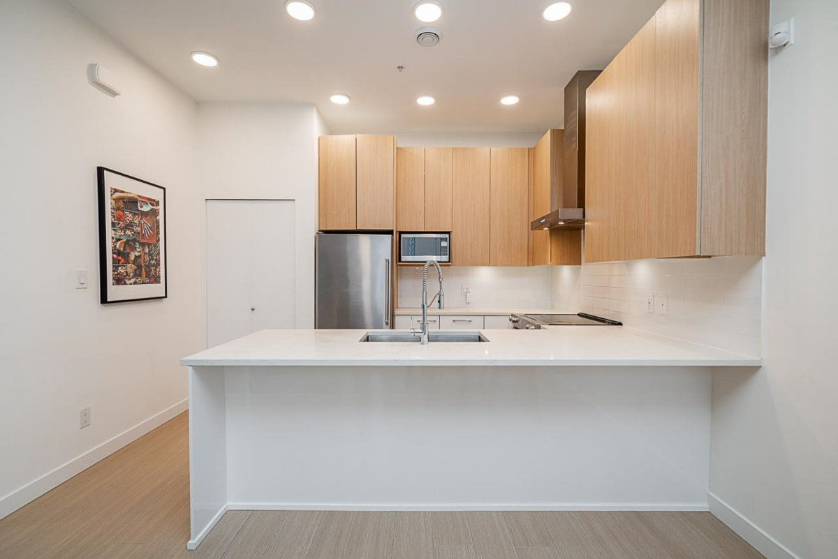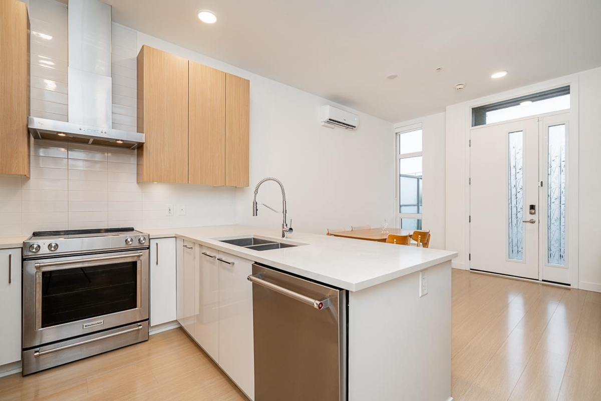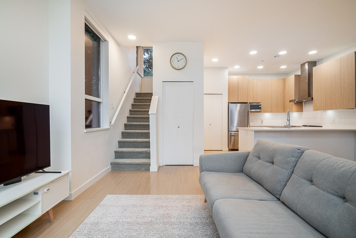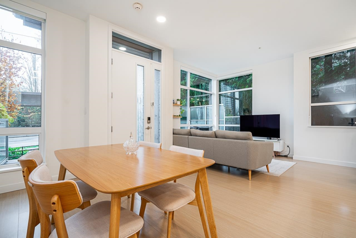 Welcome to "Seasons" by Ledingham McAllister. At 978sf, this amazing 2beds/2 baths corner townhome features soaring ceilings and expansive windows for exceptional natural light. The kitchen showcases stainless steel appliances, quartz countertops and a breakfast bar. Enjoy open concept living with versatile space that offers flexible options for a home office or entertaining. Just steps to Holdom Station, walking distance to shopping and dining at the Amazing Brentwood, with recreation and schools nearby. One EV-ready parking stall and one storage locker included. Main entrance is 5460 Broadway.
