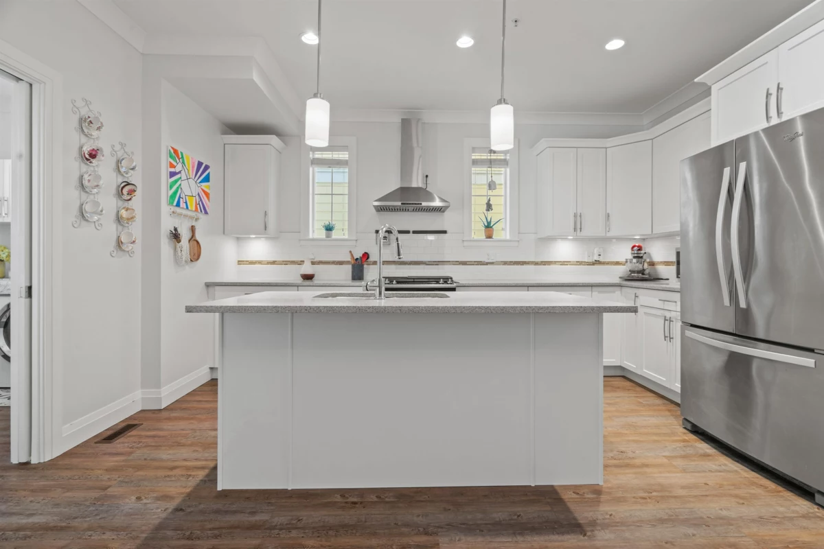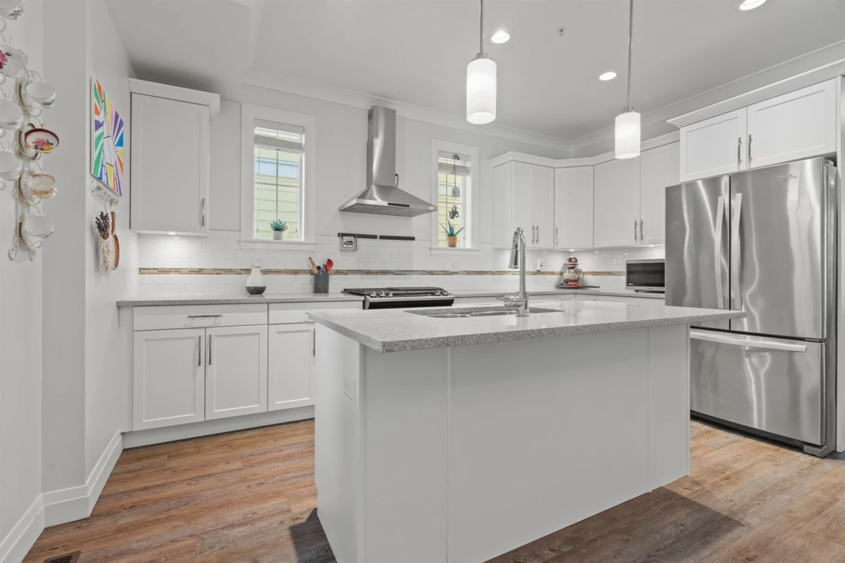 This end-unit rowhome with no strata fees sits on highly sought-after Peach Road, just steps from the Vedder River and Rotary Trail. Featuring 4 bedrooms and 4 bathrooms w/ central A/C, it offers exceptional space, style, and location. The bright kitchen showcases granite countertops and a gas range, opening to the dining area and cozy living room with a gas fireplace. Upstairs are 3 spacious bedrooms, including a primary suite with ensuite and walk-in closet. The fully finished basement adds a large rec room, bedroom, and full bath - perfect for guests or family. Enjoy a private fenced yard, detached garage, and extra parking. Walking distance to Unsworth & Stito:s La:lem Toti:lt schools, this home combines comfort, community, and outdoor living by the river. BEST LOCATION IN CHILLIWACK!