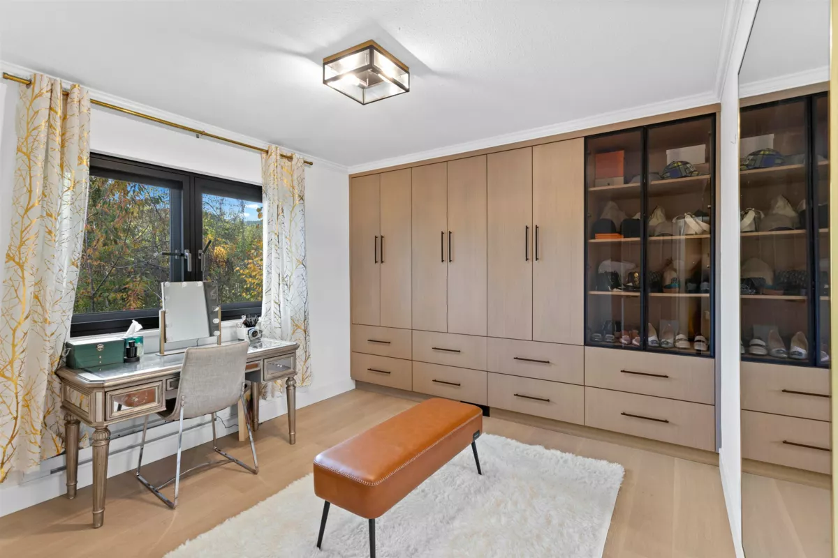 Recently renovated to first class standards, this 6-bedroom family home sits on a quiet cul-de-sac steps from beaches, trails and parks, The main level offers a custom kitchen, spacious living and dining areas, a family room and an office overlooking the garden, plus a large deck with mountain views for effortless entertaining. Upstairs are 4 bedrooms, including an impressive primary suite with a private balcony and luxe ensuite. The lower level, with 10-ft ceilings, features 2 additional bedrooms, a living room, recreation room and a gym. A level lawn and landscaped garden create a serene outdoor setting. A pathway leads directly to Rockridge and Caulfeild Village. Renovation quality throughout is exceptional.