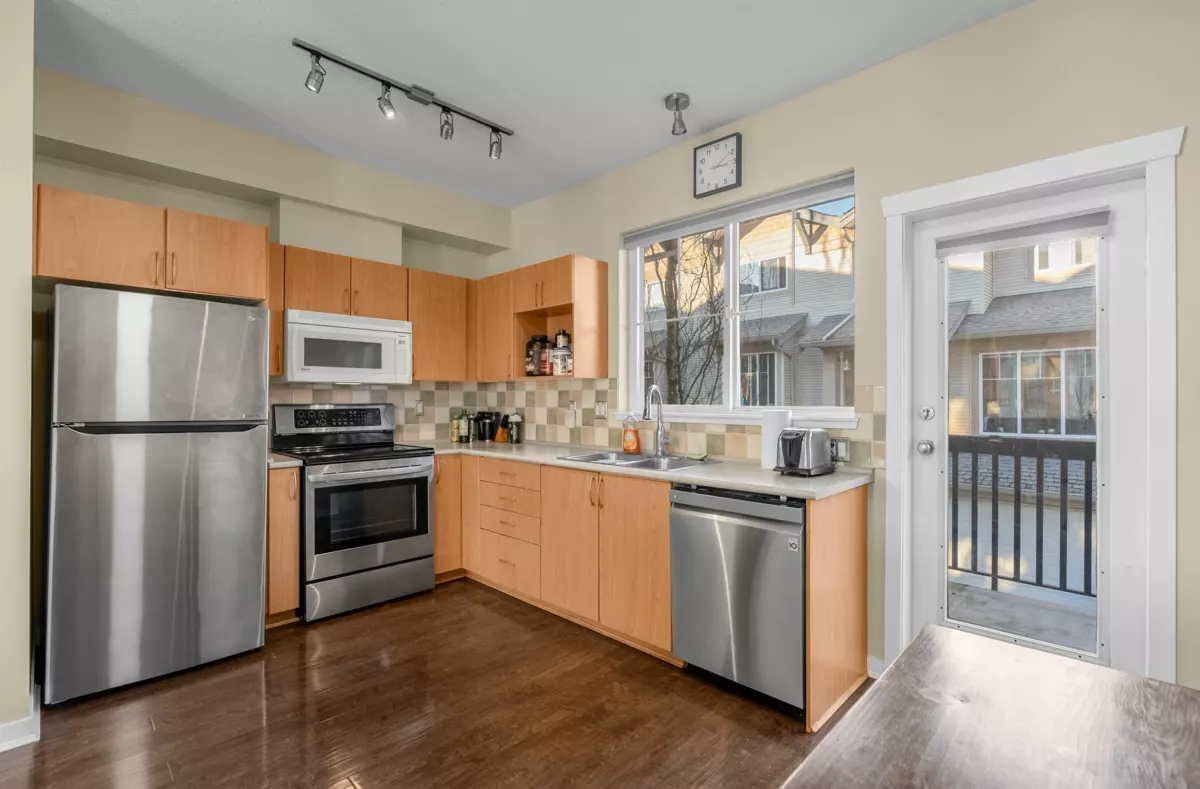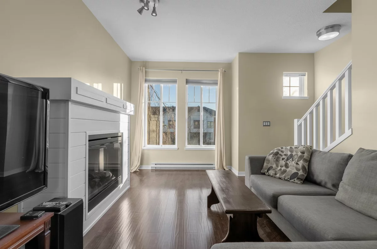 Don’t miss this beautifully desired townhome located in Central Panorama Village! With shopping, restaurants and public transit nearby – this townhome will have you perfectly situated in the prestigious Forest Gate Community! This 2-bedroom corner unit offers exceptional natural lighting with high 9ft ceilings and a functional open floor concept. Experience a fresh and bright kitchen along with modern appliances. For those who love to entertain this space is perfect! Cozy up next to your shiplap fireplace featured in your living room or find tranquility in your spacious master bedroom with ensuite bath. This home has it all! Have peace of mind knowing the washer/dryer and hot water tank are only a few years old.