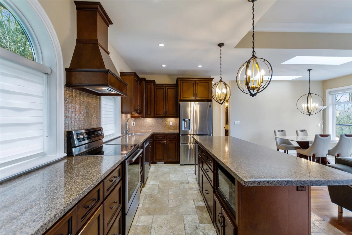Check out the amazing views of Burrard Inlet and Indian Arm. This custom European built home is located on the east side of Capital Hill surrounded by green belts at the end of Bessborough. The upper floor has the main living area with large windows throughout to take advantage of the view. Bright kitchen is open to the family room, eating area and access to a large deck. It has all new appliances, wood cabinets, stone countertops and a large island. The formal living and dining rooms make this home great for entertaining. Flex room can be a bedroom or den. Main floor has a grand foyer with marble floors and a large chandelier, 2 large bedrooms and a primary with a walk in closet and ensuite. The basement large recreation and games room and a self-contained 2-bedroom basement suite.