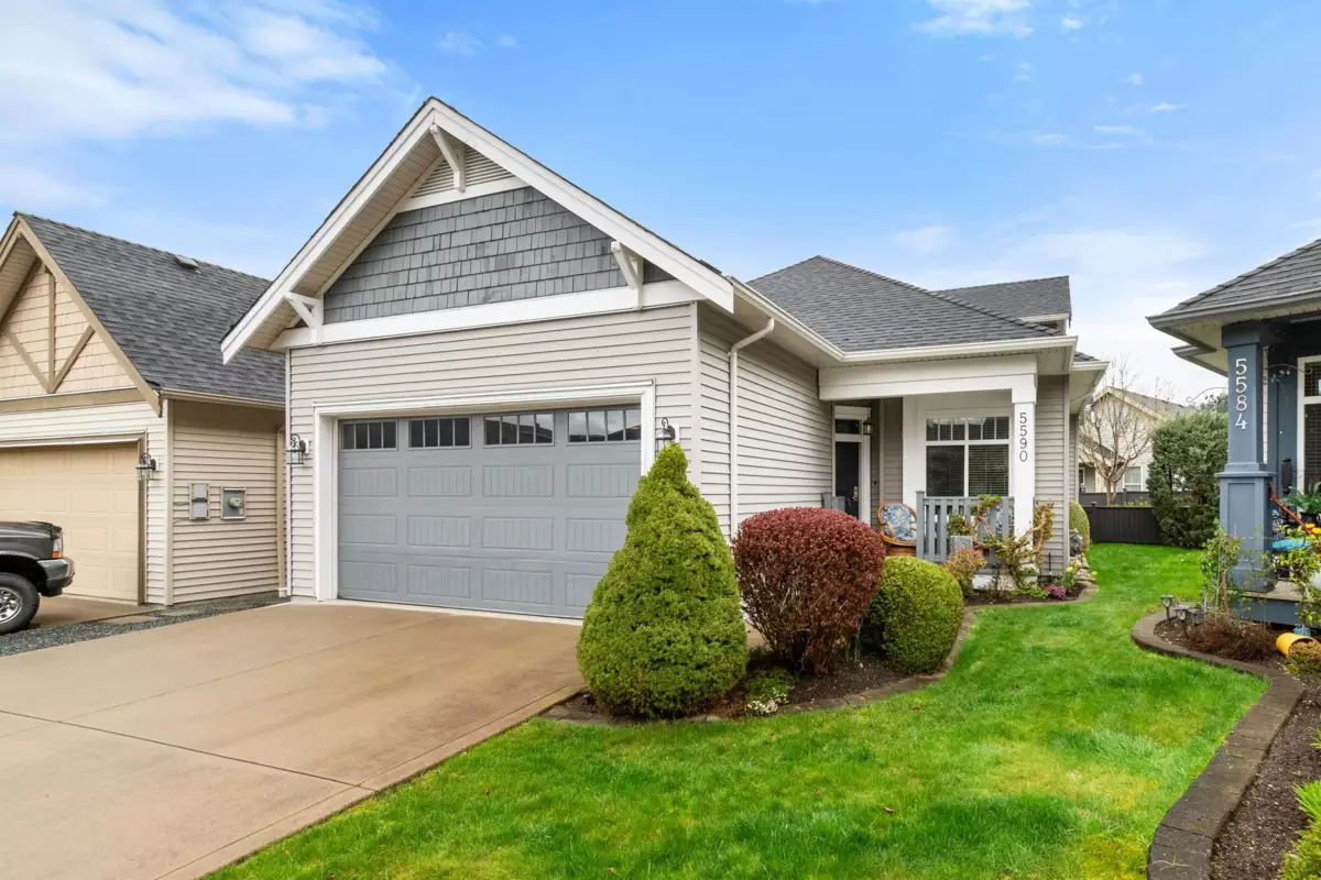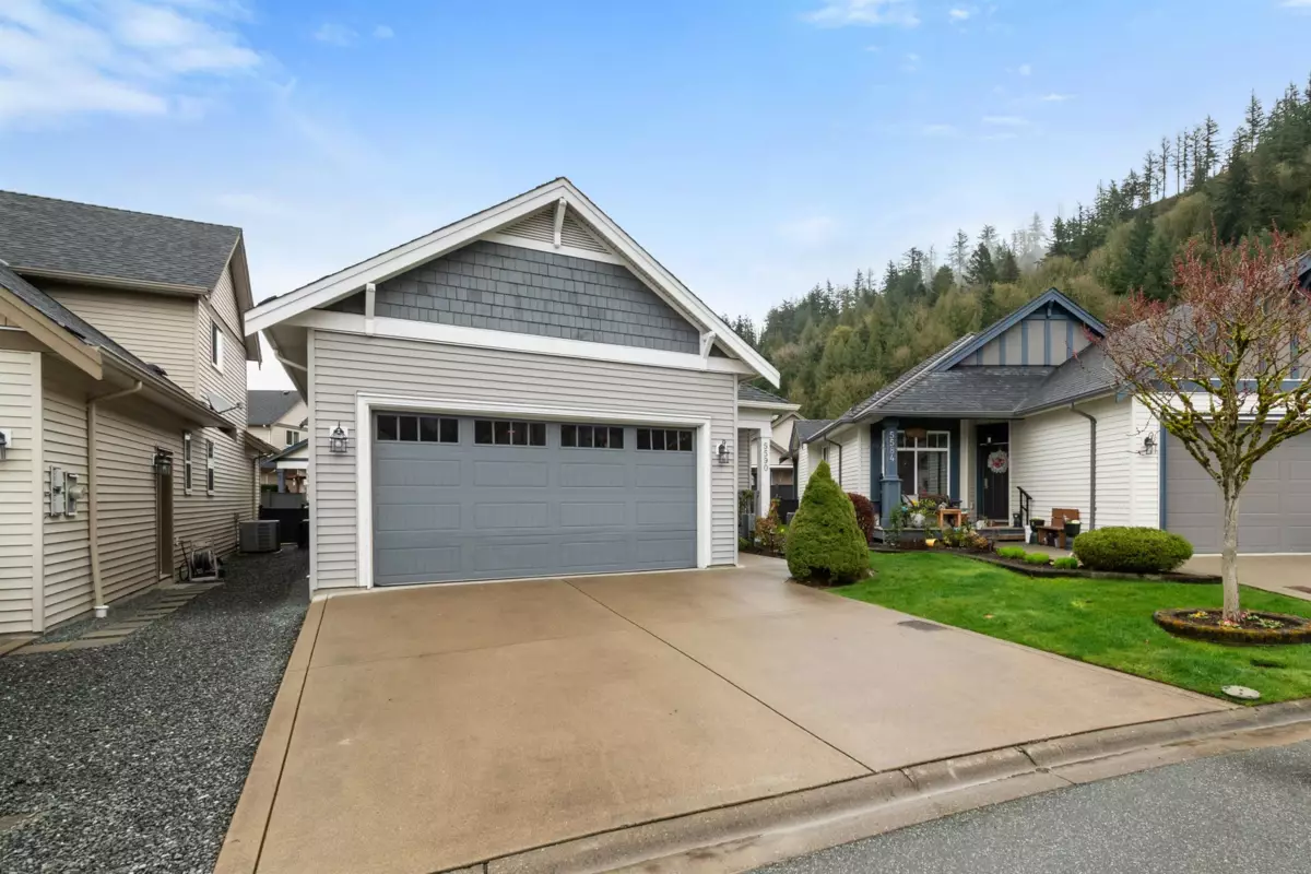 Detached rancher w/ loft in 45+ gated community—The Villages at Englewood! This pristine 2 bed + den home features a large primary on main w/ walk-in closet & ensuite, 2-pc bath for guests, open concept living, stunning kitchen w/ quartz counters, under cabinet lighting, S/S appliances, soft-close drawers, island, & formal dining. Living room has a gas fireplace with fan; den makes a great office. Upstairs: rec room, 2nd bed & full bath with new glass door. One of the largest lots in the complex boasting a sunny backyard w/ custom 16x24 cedar deck, fully fenced, irrigation system & cherry tree. A/C done 2023, stair access to big crawl, double garage + 2 parking. RV parking in the complex, beautiful clubhouse with the ability to walk to Garrison & Vedder! Mins from HWY 1 and Cultus Lake!