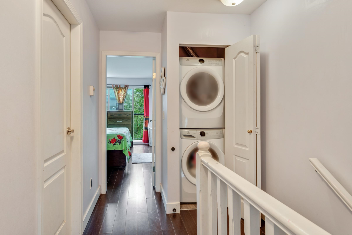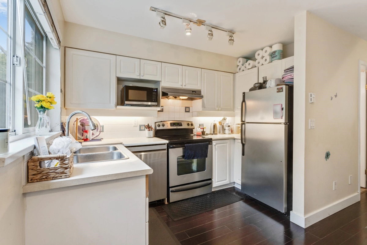 "Le Courcelles" Coquitlam's best townhome value. This 2 storey townhome features 2 large bedrooms and 2 bathrooms. Spacious living room/dining room area with gas fireplace. Bright kitchen with newer appliances. Lots of cupboards and counter tops space. Opens out to a large private sundeck. Upstairs features a large primary bedroom with double, his & hers, closets and ensuite access to a renovated bathroom with walk in shower. Insuite laundry. Lots of windows and natural light. Secure parking and extra large storage. Pet friendly. Awesome location. Nearby Lougheed Mall and skytrain. Walk to schools, shopping, parks, movie theatres, restaurants, starbucks and more. Easy access to freeway to downtown Vancouver. Open House Saturday October 4, 2025