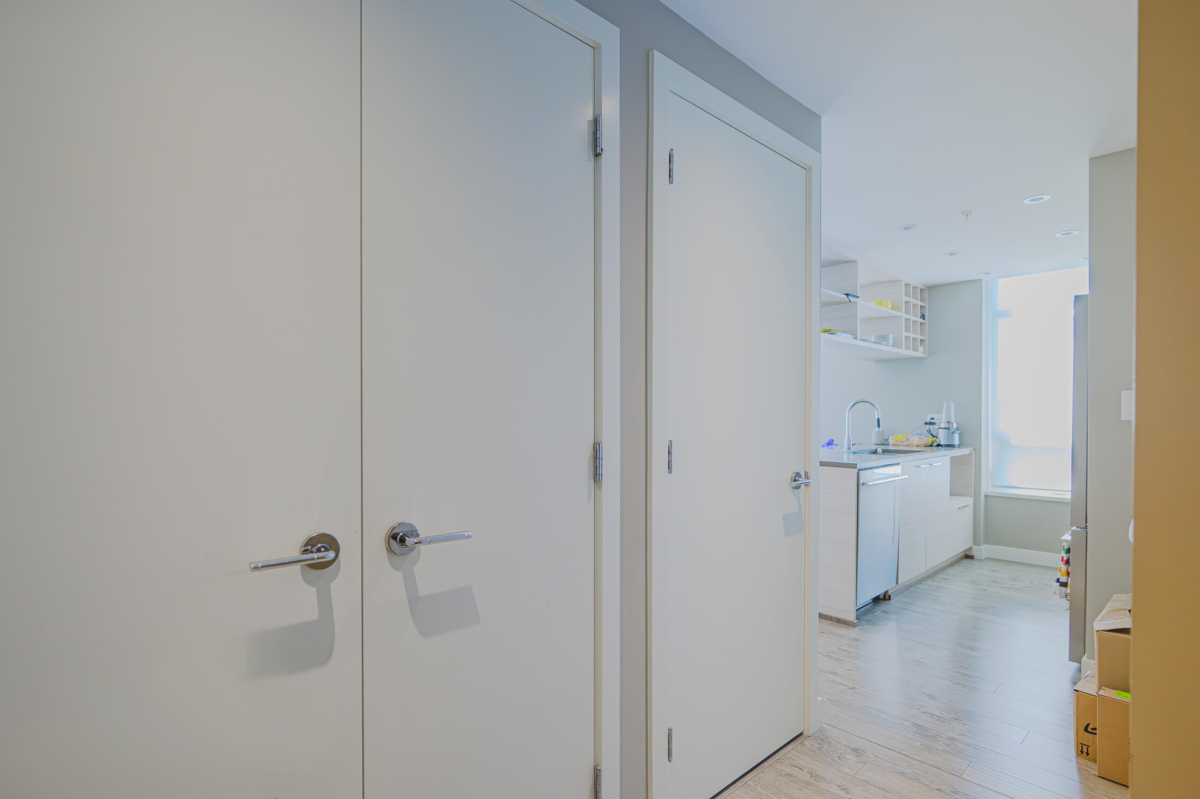 MANDARINE RESIDENCES – Experience luxury living in this bright and stylish 1-bedroom southwest-facing unit with city views. Enjoy year-round comfort with air conditioning and a gourmet kitchen outfitted with premium stainless steel appliances, quartz countertops, and sleek laminate flooring. The functional layout includes a spacious bedroom, a walking closet, and efficient use of space, all with low utility costs. Take advantage of the exclusive building amenities, including a fully equipped gym, party lounge, rooftop garden, guest suite, and more. Step outside and you're in the heart of Richmond – just steps from the SkyTrain, Richmond Centre Mall, top restaurants, parks, and the community centre.