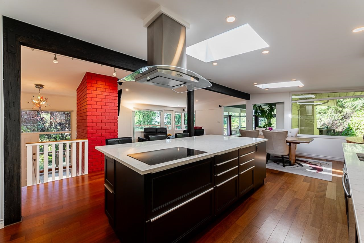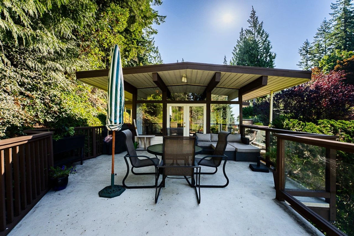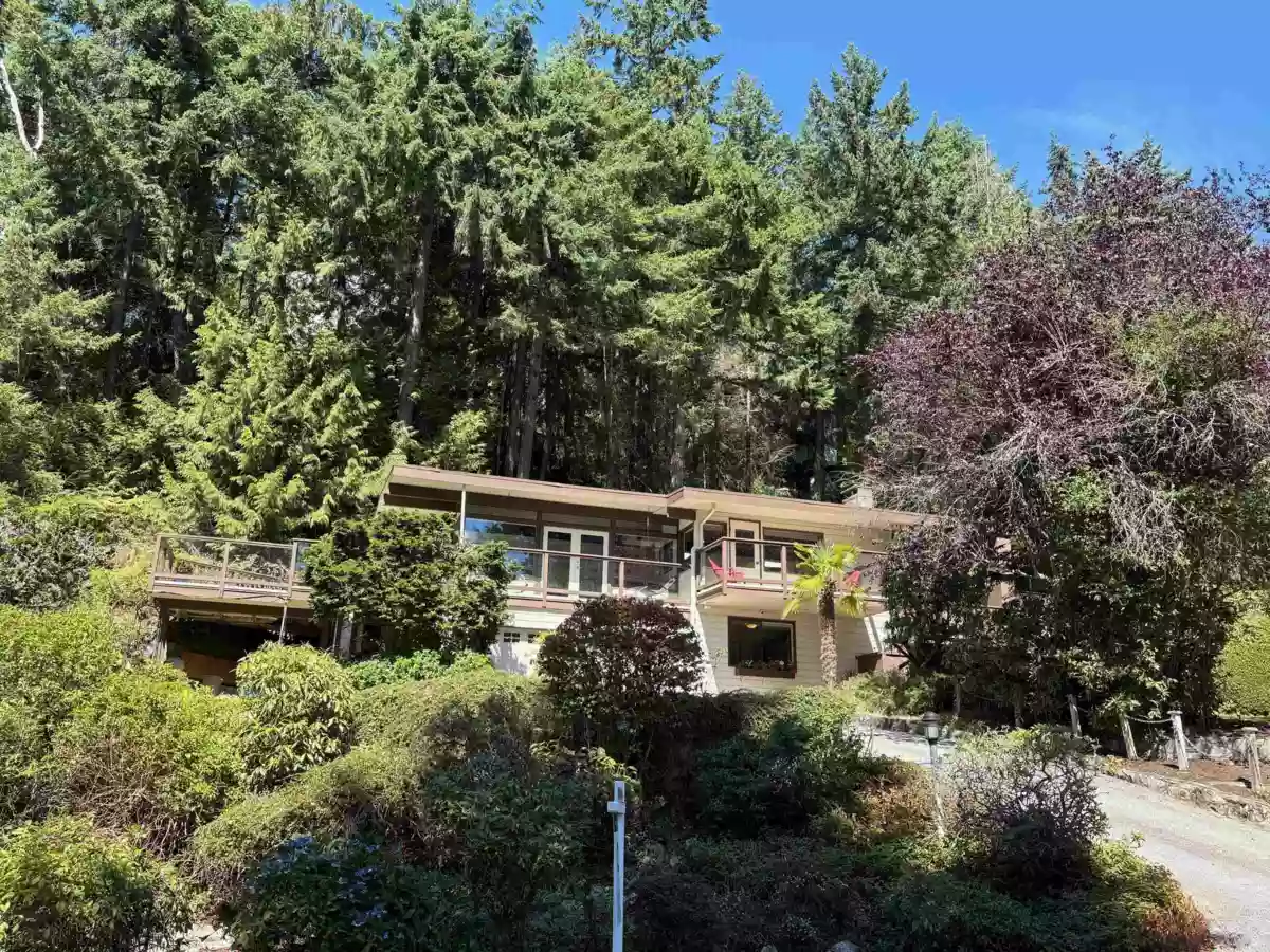 LARGE PRIVATE 21,597 sq.ft. lot with partial ocean views. This bright family home perched on a quiet street features an open floor plan on the main level with renovated kitchen, lots of skylights, hardwood floors and beautiful beams. Lots of decks to enjoy your SOUTH WEST exposure. On the main you will find both a gas and wood burning fireplace for those cold winter days. Offers two bedrooms up with two full bathrooms and downstairs you will find a further two bedrooms and one full bathroom. Exterior freshly painted. Double car garage and ample parking on the driveway. A short drive to parks, trails, golfing, beaches, skiing, Eagle Harbour, Caulfield Village, schools (Eagle Harbour Montessori, Caulfield and Rockridge) and easy access to Highway 99. Potential to sub-divide. Call to view.