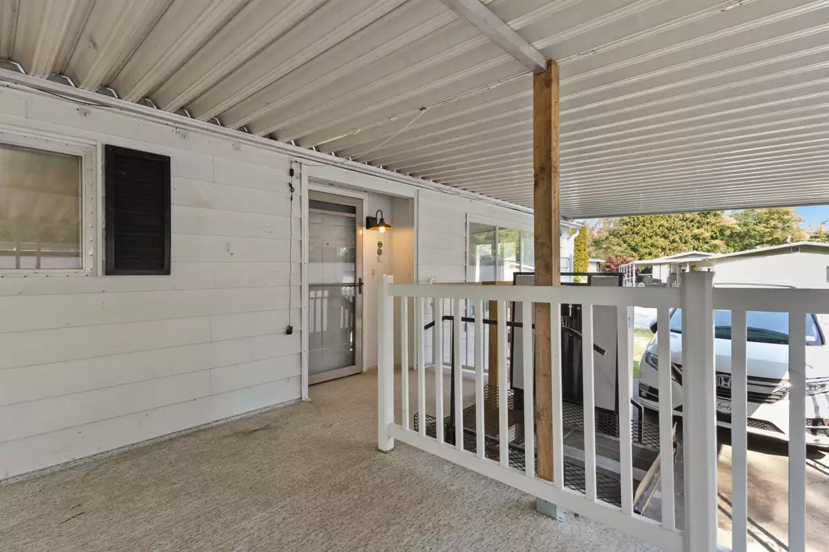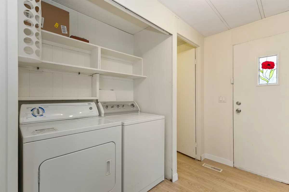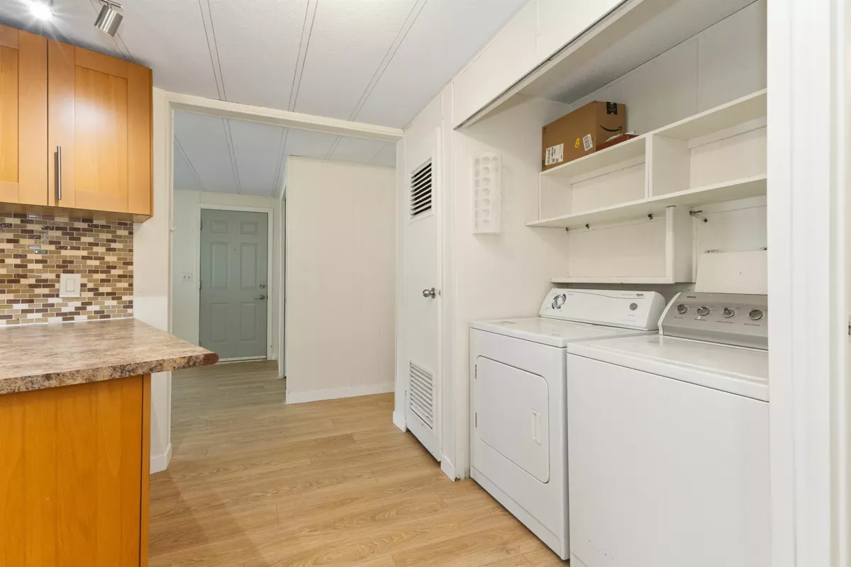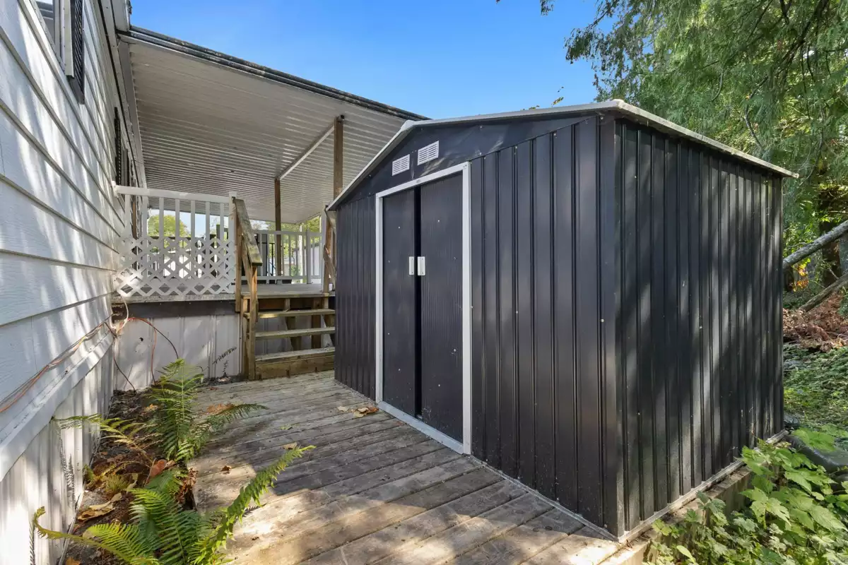 Move-in ready! This lovely & bright 1,149 sq.ft double-wide home is located on the quiet street in the popular family-oriented Crestway Bays park. It features 3 large bdrs, 2 baths, grand living/family room, designated dining area, beautiful kitchen with SS appliances, walk-in pantry/storage & in-suite laundry. Upgrades include brand new laminate floors throughout, fresh touch –up paint, 2023 furnace, hot water tank & 2024 SS dishwasher. It has a large 15x13 covered deck w/double stairs, backing onto the forest-like green space, wheelchair lift, a metal storage shed, 3 car parking spaces & 2025 silver label. Conveniently located minutes to shopping, schools, hospital, King George skytrain station, close to Crescent Beach & White Rock, this home is a great choice for anyone.