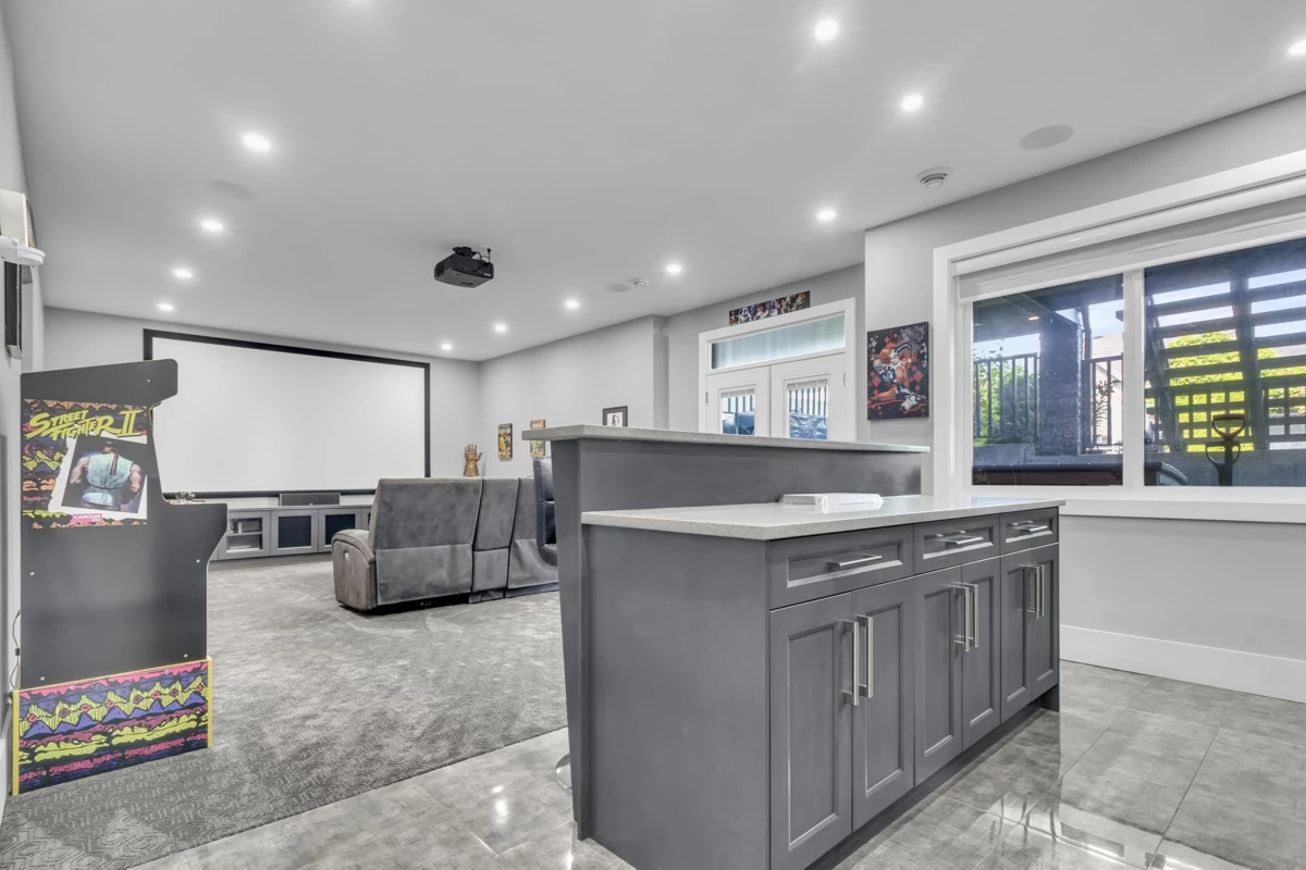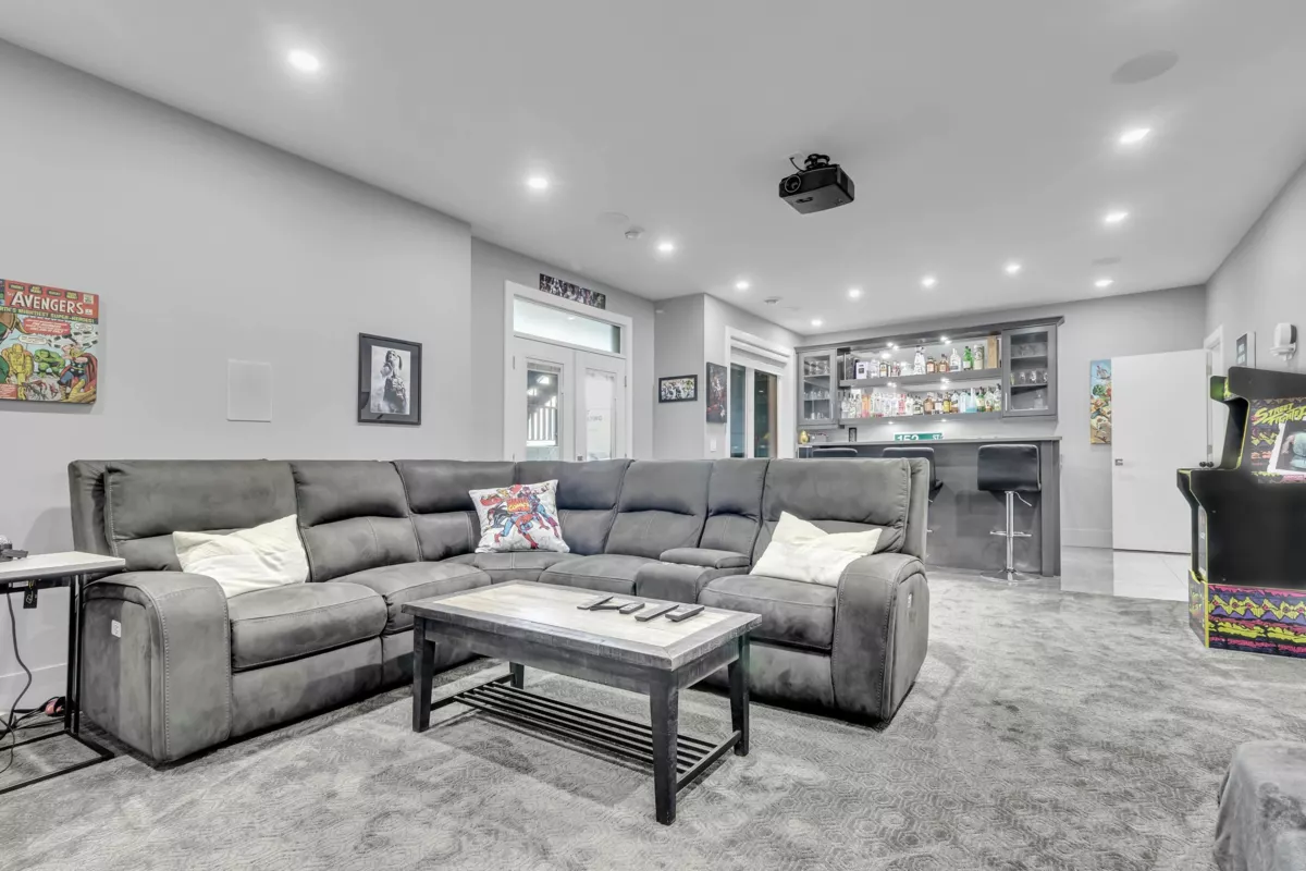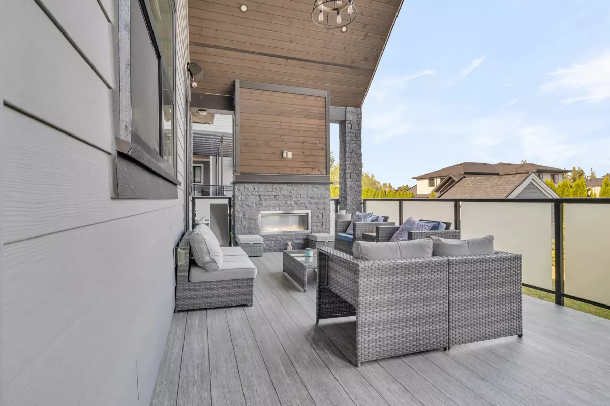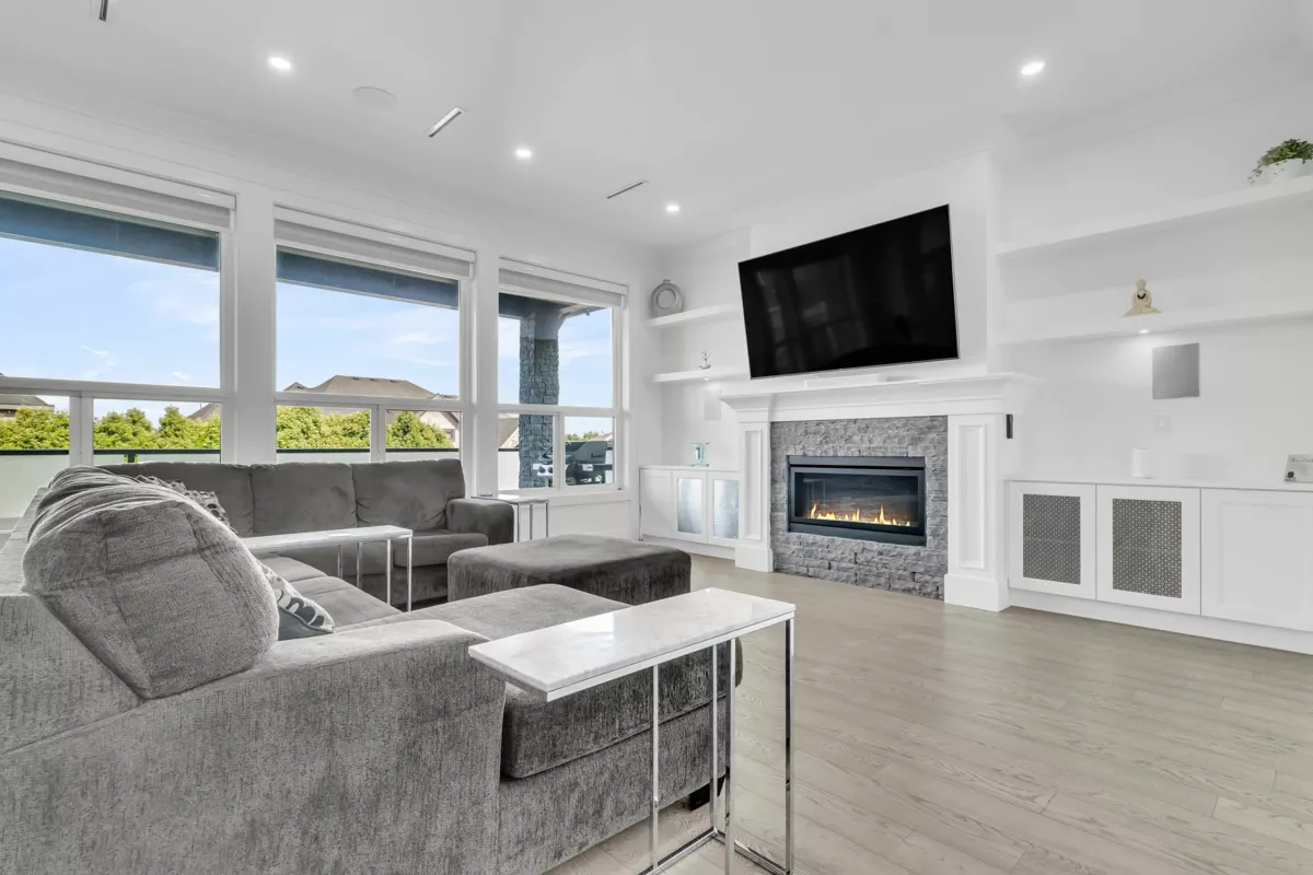 Stunning custom-built home in the highly desirable Sullivan Station neighborhood.This pristine,virtually brand-new residence offers luxury and functionality with a gourmet kitchen, full wok kitchen, and walk-in pantry—perfect for the home chef. The main floor features a junior master suite and a spacious den, ideal for a home office or guest room. Step out to an expansive rear patio with vaulted ceiling, gas fireplace,private side entry, and beautiful views of Mount Baker. Upstairs features spacious bedrooms with designer finishes. The generous legal suite provides excellent rental income or multigenerational living options.Home Theater with full size wet bar. Walking distance to top-rated schools, shopping, restaurants, YMCA, parks, and transit. This home truly checks every box!