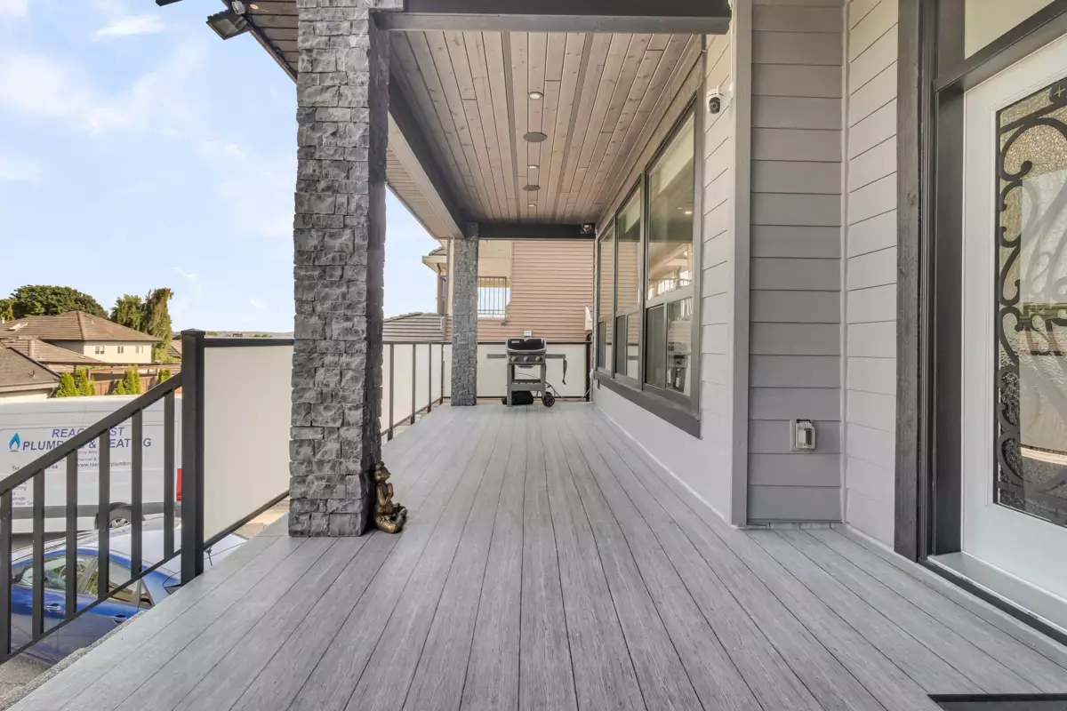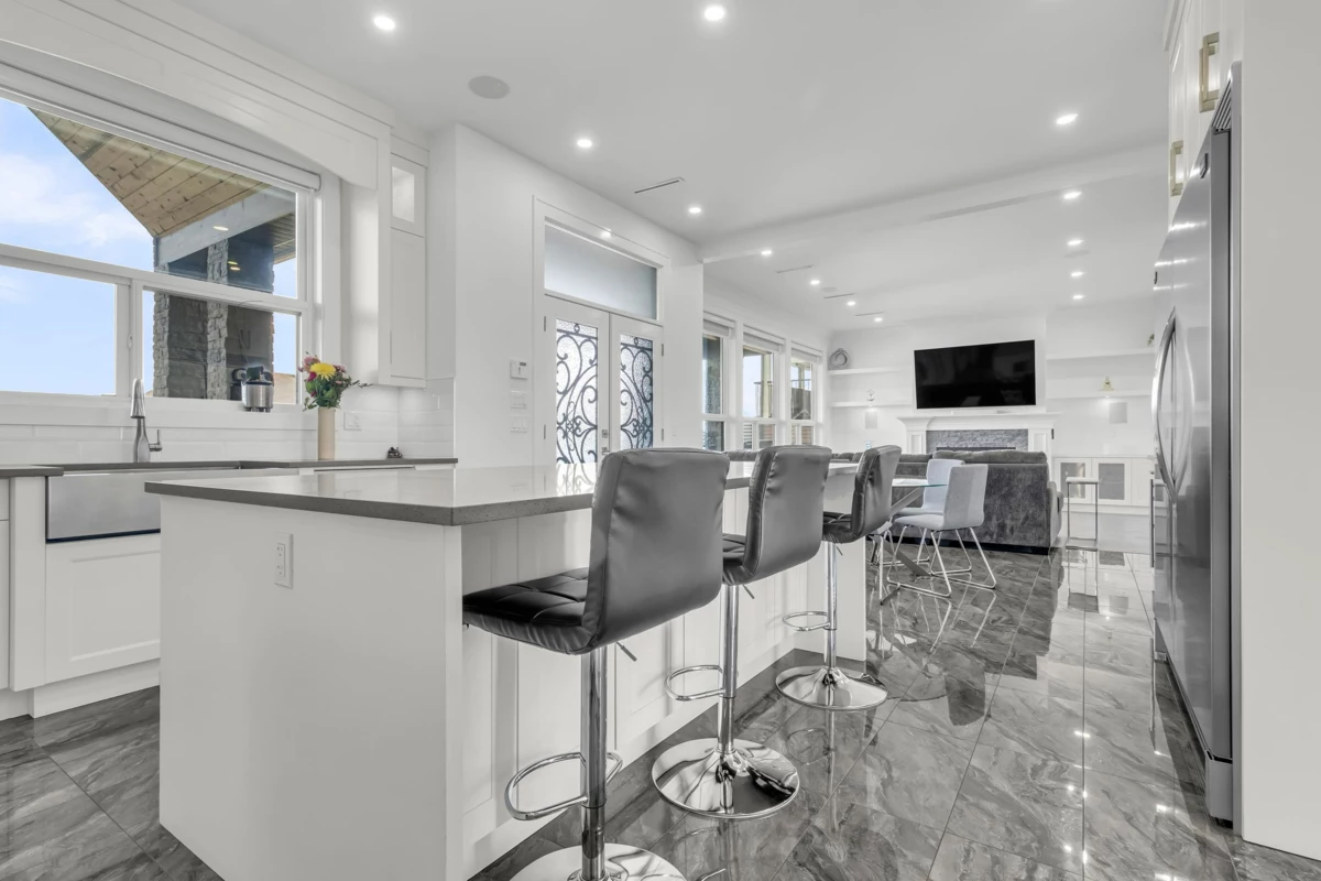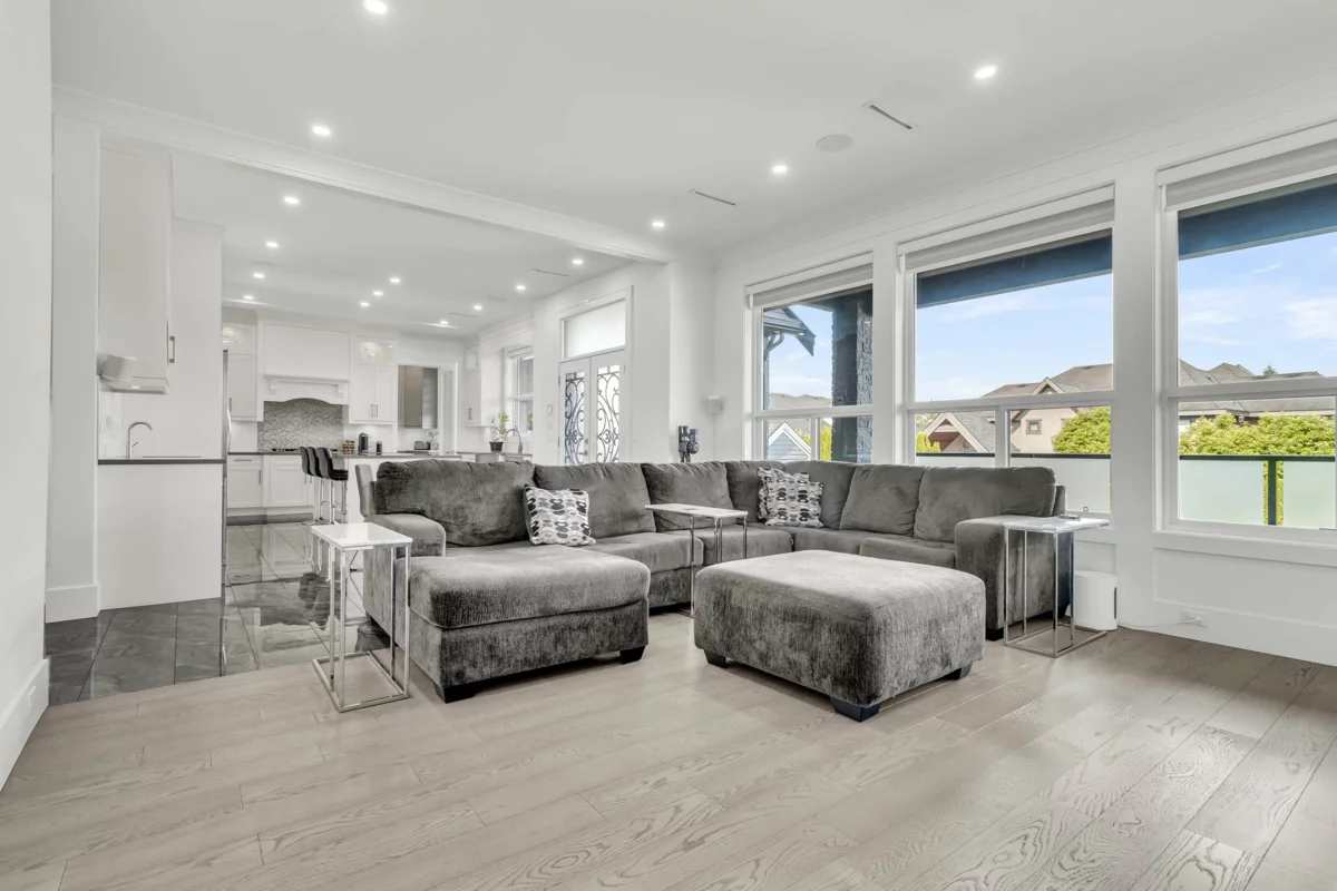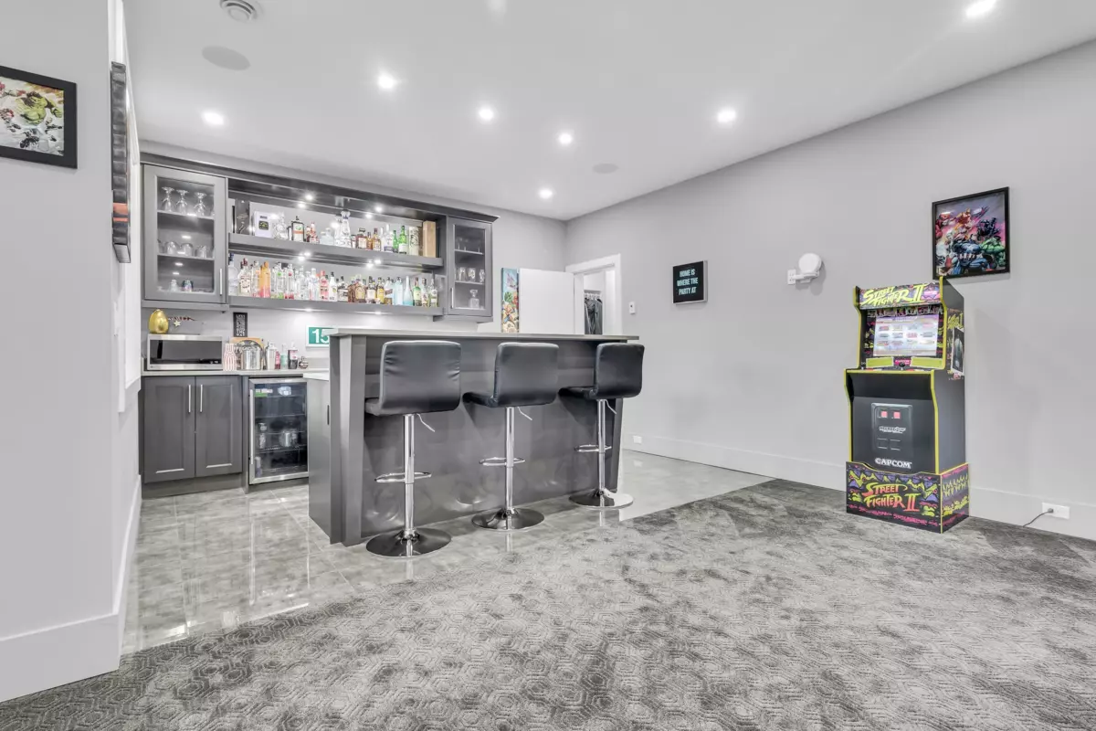 Stunning custom-built home in the highly desirable Sullivan Station neighborhood.This pristine,virtually brand-new residence offers luxury and functionality with a gourmet kitchen, full wok kitchen, and walk-in pantry—perfect for the home chef. The main floor features a junior master suite and a spacious den, ideal for a home office or guest room. Step out to an expansive rear patio with vaulted ceiling, gas fireplace,private side entry, and beautiful views of Mount Baker. Upstairs features spacious bedrooms with designer finishes. The generous legal suite provides excellent rental income or multigenerational living options.Home Theater with full size wet bar. Walking distance to top-rated schools, shopping, restaurants, YMCA, parks, and transit. This home truly checks every box!