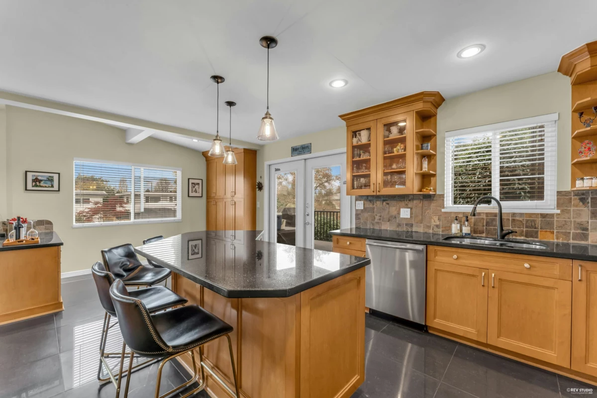 Spacious 5-bedroom, 3-bath home in one of Ladner's most family friendly neighbourhoods; the ideal place to start your journey and grow for years to come. Situated on a large 73' x 100' south-facing lot, this well-cared-for 2-level home offers room for everyone, plus the flexibility of a fully finished basement with easy suite potential for extended family or added income. Filled with warmth and thoughtful updates, the home features a custom kitchen with granite counters and a large island, updated bathrooms, vinyl windows, refinished hardwood floors, and 2 cozy gas fireplaces. The sunny private backyard is perfect for children to play. The covered sundeck is ideal for family BBQs, and creating life long memories. Great location within walking distance to Hawthorne Elementary & tennis court