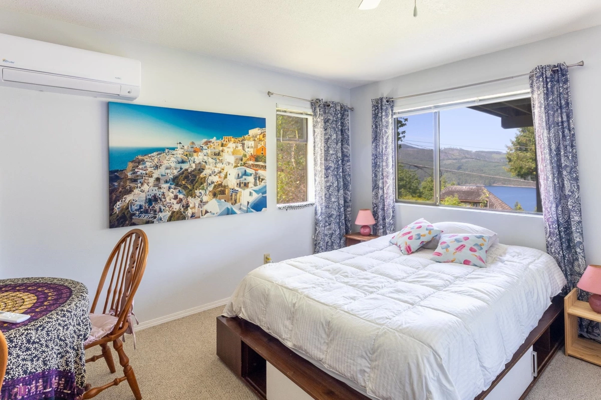 Enjoy lovely ocean views from this spacious 4-bed + den home, located in the sought-after Sandy Hook neighbourhood of Sechelt. Set on a sunny lot, this home blends mid-century modern charm with coastal living. The main floor features an open living space that flows onto a generous ocean-view balcony, perfect for relaxing or entertaining. A cozy wood-burning stove adds warmth & character, while the office/den off the primary bedroom offers flexibility—easily used as a fifth bedrm, nursery, or private workspace. Outdoors, the flat, grassy backyard includes deer-proof raised garden beds, plus a wood shed & storage shed. This peaceful location is surrounded by nature and recreation—just minutes to the beach, Hidden Grove trails, and Porpoise Bay Provincial Park.