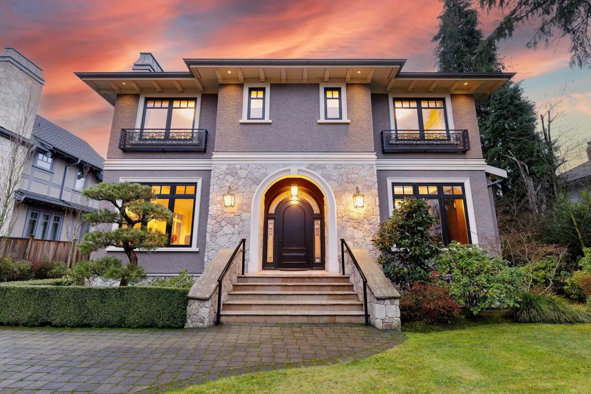 Most desirable South Granville, designed by noted architect Mimi,custom-built throughout, from beautiful hardwood & Marble floors,decorative molding carpentry walls, 11ft ceilings and Euroline windows, to the beautiful Japanese garden. Great layout, spacious floorplan.built-in bookcase office. Open living,dinning room,Marble stone fireplace. Luxury Kitchen has Piano Painted cabinet, Mielle appliances, Agate stone countertop and backsplash. Family room equipped with hand-painted ceiling and sliding door to outside deck. Second floor has 4 en-suited bedrooms. MasterBed has handpainted ceiling,sliding door to balcony. Bathroom features marble stone,double vanity, steam shower. Mediaroom,wine room and sauna completes the basement. Walk to shops, easy drive to downtown,Richmond. A Must See.