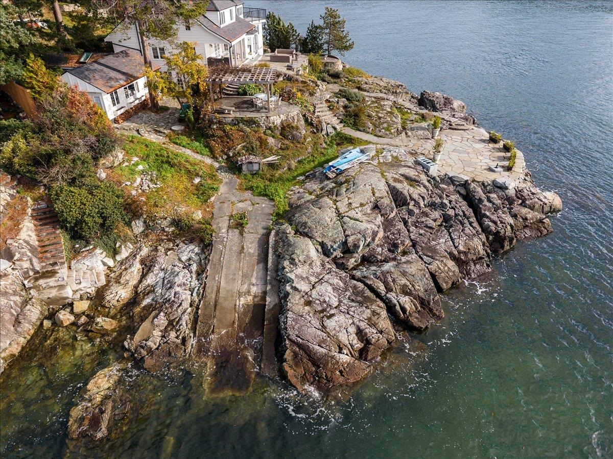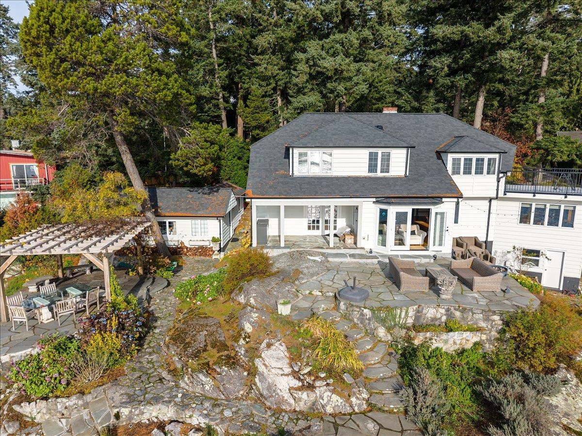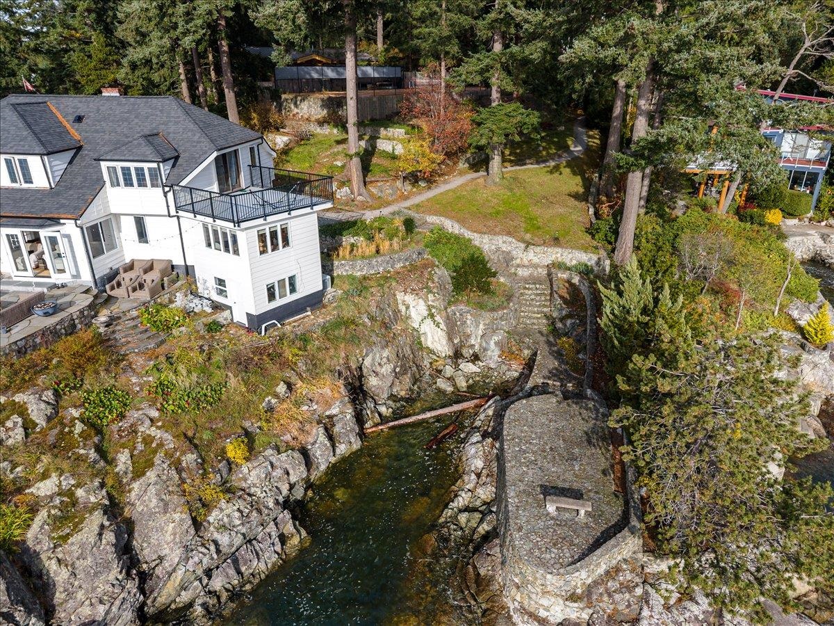 The most extraordinary waterfront estate on Canada’s West Coast, historic 1920 English Tudor. 1st full-time residence on private Eagle Island—offers lifestyle of unmatched beauty, privacy, and prestige. Almost 1 acre with 300 ft of low-bank shoreline, timeless estate captures 280 degree SW ocean views, and all-day sunshine. Lovingly restored/renovated 4 bedrooms, 3 levels and detached guest house—perfect for family and guests. Multiple stone patios evoke the romance of the Amalfi Coast and the rugged West Coast, surrounded by lush English gardens, granite pathways, and tranquil forested trails. Private boat ramp, double pickleball court, and the magic of a secluded island of only 33 residents. Yacht Club, golfing, recreation minutes away. Rare island retreat 20 minutes from Vancouver!