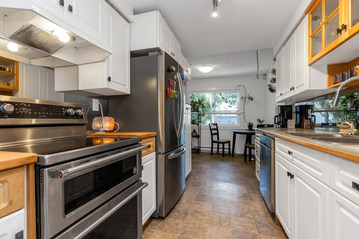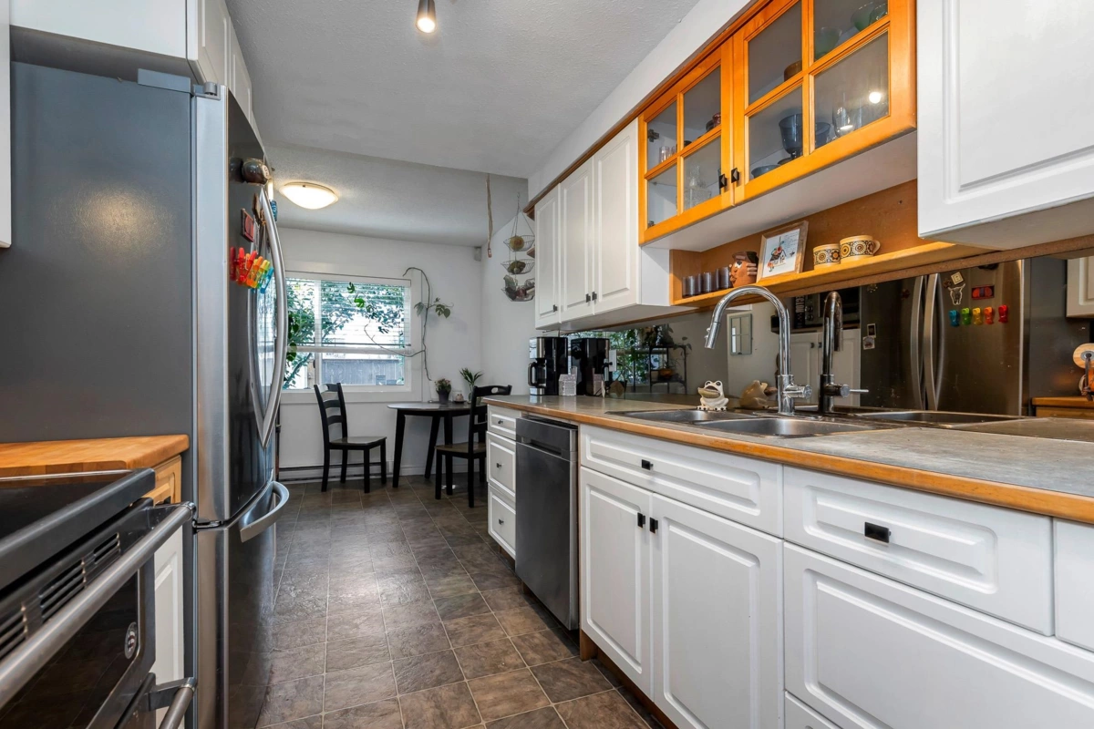 Welcome to Mount Baker Estates—a well-established, family-oriented townhome community in the heart of downtown. Tucked away at the back of the complex, Unit 59 offers over 1,250 sq ft of thoughtfully laid-out living space with 3 bedrooms and 2 bathrooms. Recent updates include white kitchen cabinets, top-tier appliances, new flooring, a renovated main bathroom shower, hot water tank, and modern light fixtures. The home also features a full-size laundry room with cabinetry, an enclosed garage with an insulated door, and a spacious, semi-private backyard with a large deck and grassy area. This pet-friendly complex boasts a large inground swimming pool and playground, all just minutes from shopping, schools, recreation, highway access, and medical facilities.