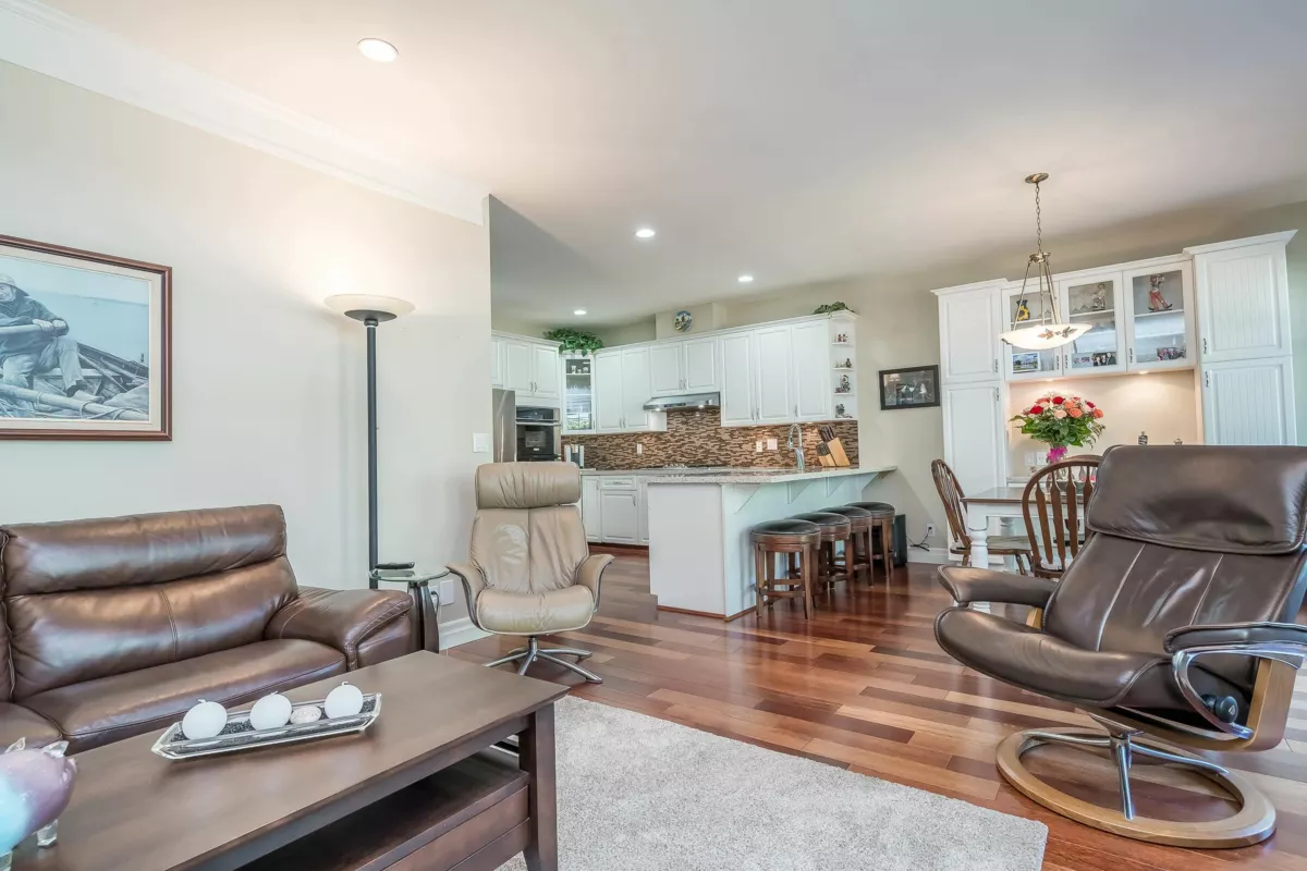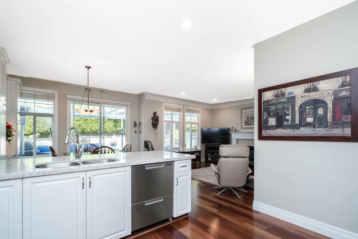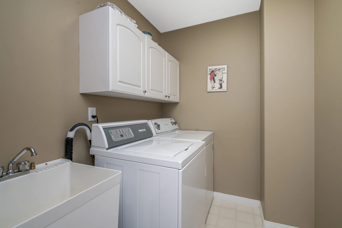 The wait is over for your prime quiet, end unit location in Lakebridge. You will love this 3300+ square foot 4 bedroom, 3.5 bathroom plan complete with huge covered back sundeck for all season use. Updates include new kitchen (white cabinets, quartz counters, stainless steel appliances, built-ins), Brazilian Cherry hardwood, crown mouldings, double wall oven/microwave and gas cook top. This traditional plan easily accommodates full size furniture. Double garage and two car driveway. King-sized primary bedrooms includes full walkin closet and 5-piece ensuite. Check out the huge south facing sundeck off one of the second bedrooms. The basement features a fourth bedroom, full bathroom and huge recroom.