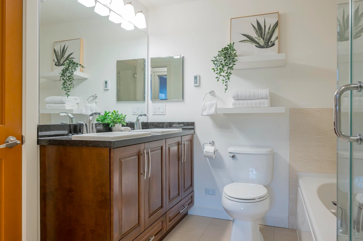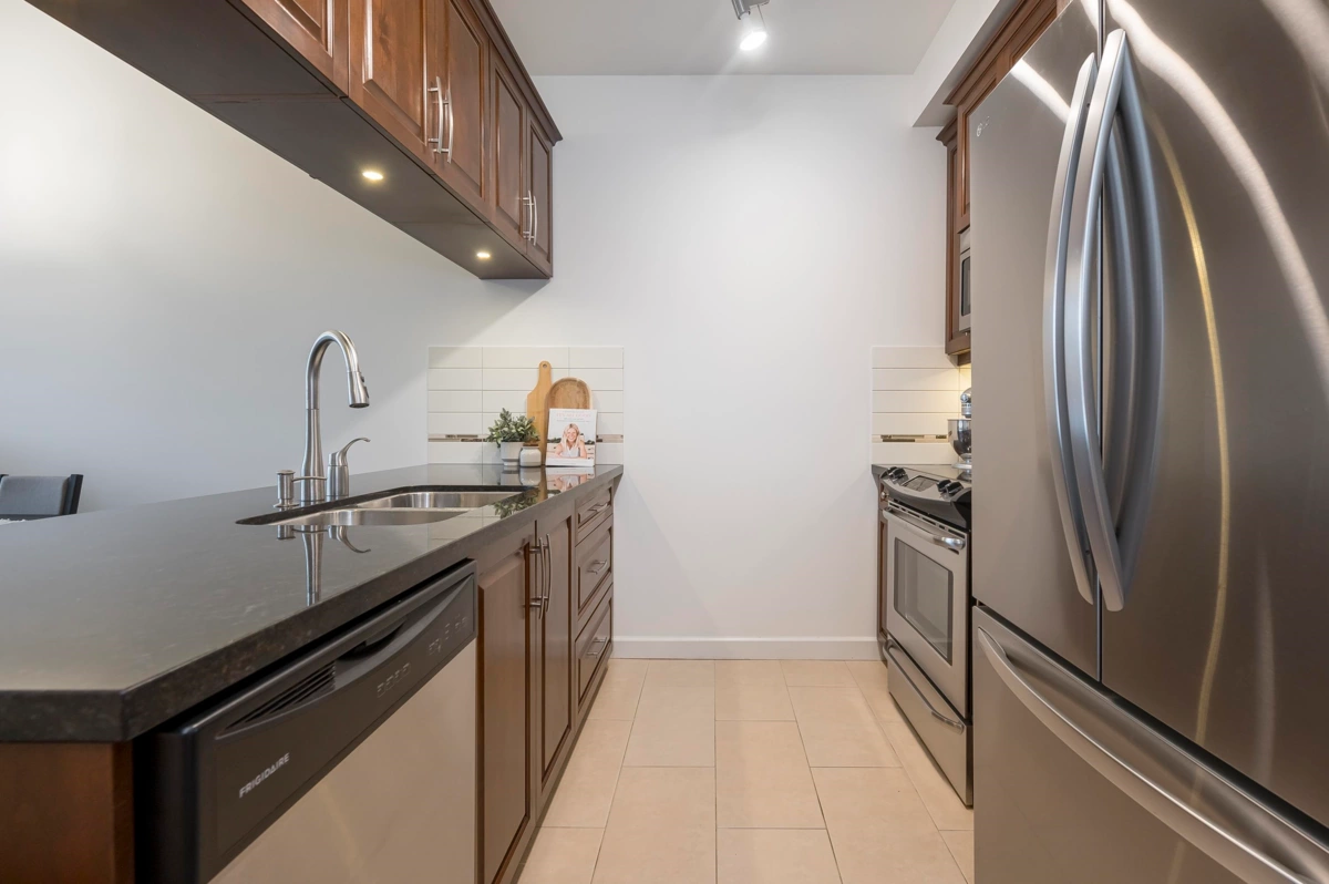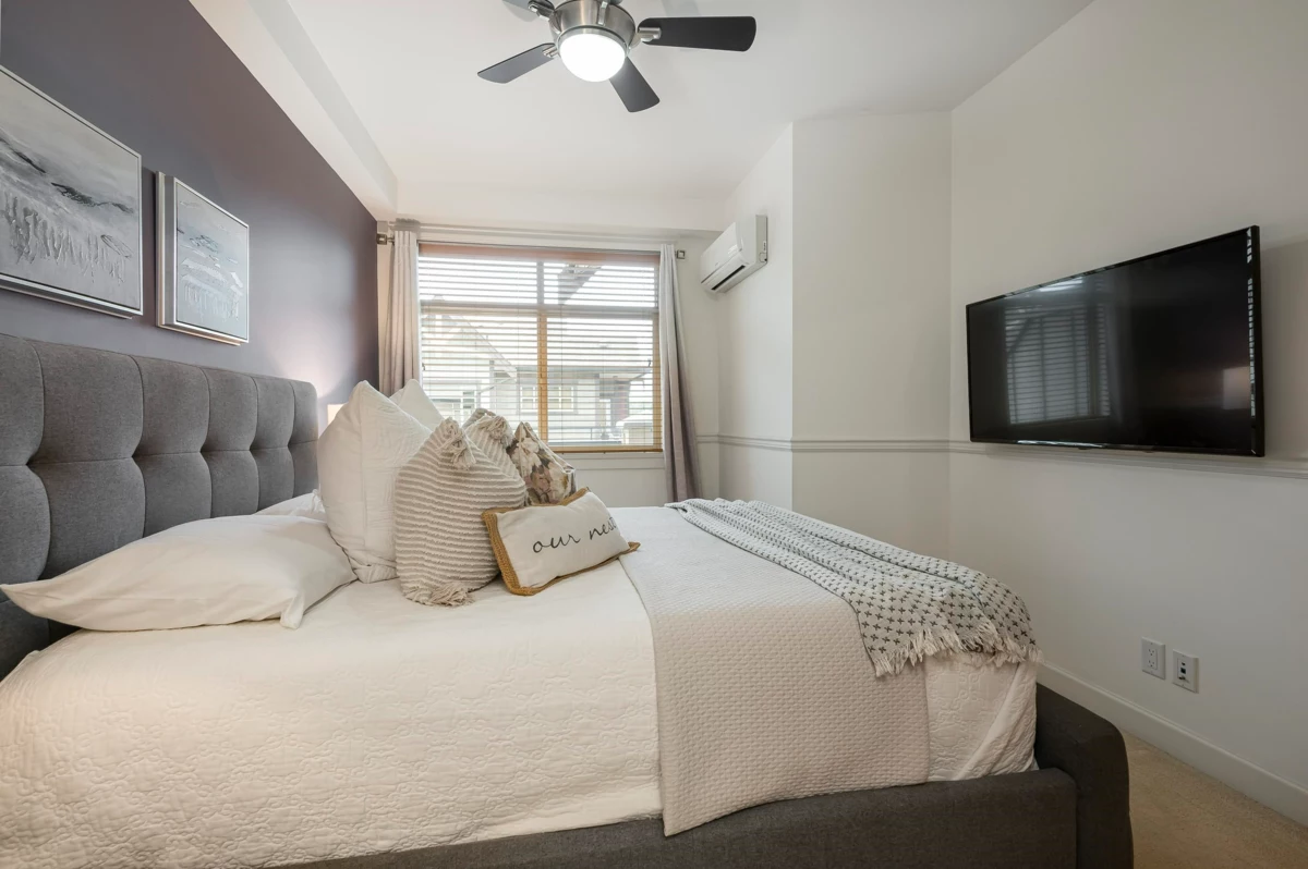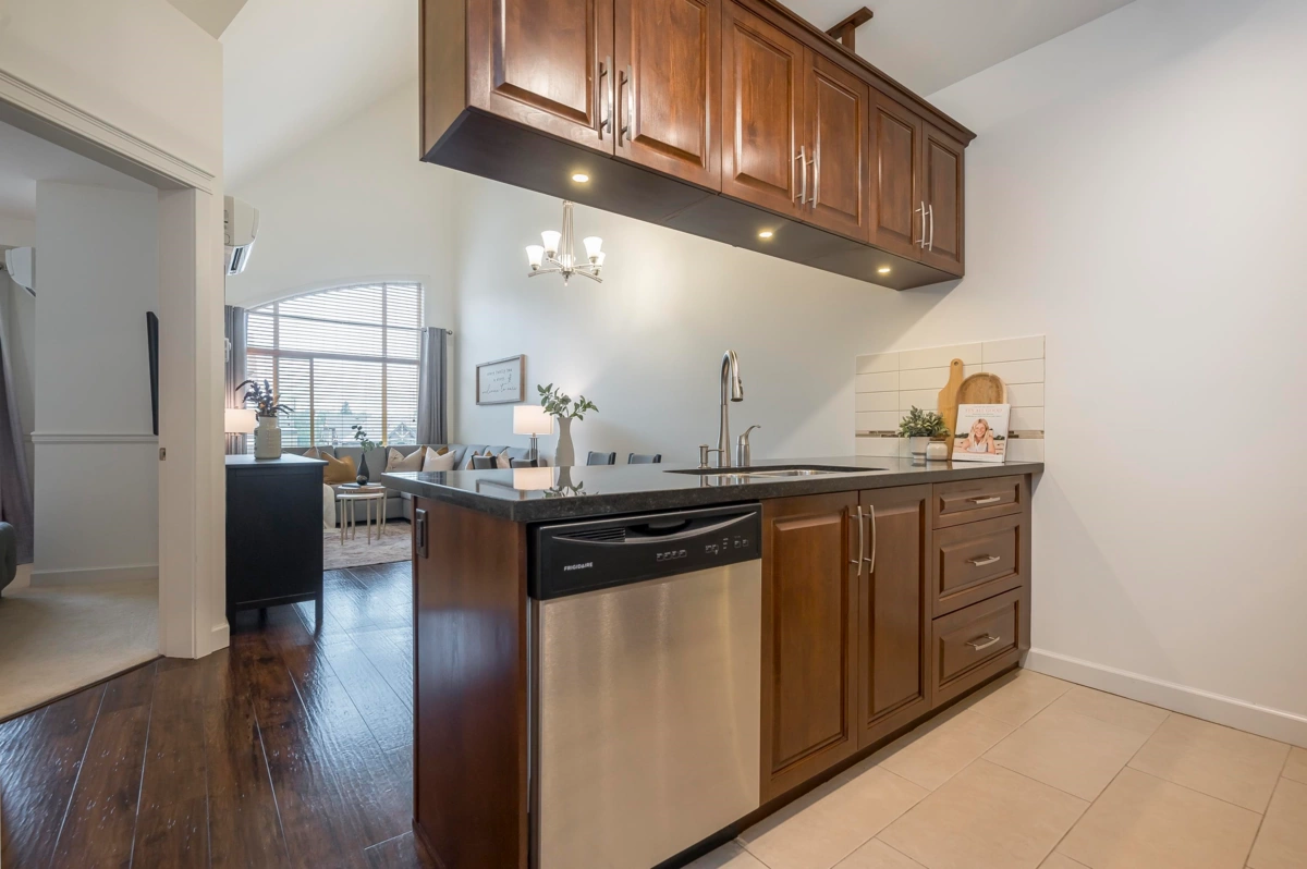 Top-floor 2-storey penthouse at Walnut Ridge by Quadra Homes! This bright & beautiful OPEN CONCEPT home is spacious, functional and exceptionally built with quality finishings throughout. Vaulted ceilings and oversized windows flood the space with natural light. Choose from two primary suites—one up, one down—for ultimate privacy. Enjoy A/C, granite counters, stainless appliances, solid-core fir doors, heated tile bathroom floors, and more. Bonus FLEX AREA for office or reading nook. Includes 2 PARKING stalls and an oversized STORAGE GARAGE with electricity, perfect for EV or a freezer. Unbeatable location near top schools, shopping, parks (including an off-leash dog park), and recreation. Quick access to HWY 1 & Carvolth busloop make commuting a breeze. Quiet, quality top-floor living.