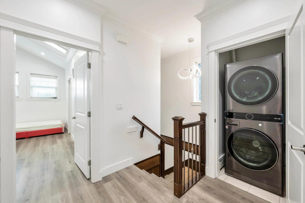 A standout opportunity in Panorama! This modern 3-storey home features three separate living spaces including a full 1-bedroom coach house—ideal for investors, smart buyers, or families looking to offset their mortgage. The main home offers a bright, open layout with a dream chef’s kitchen, quartz counters, custom cabinets, a large island, and a full wok kitchen. The lower level includes a 2-bedroom suite and a rec room that can be integrated for more space or higher rental returns. All suites come with private laundry. Steps to schools, parks, shops, dining, transit, and quick access to Hwy 10. A true income-generating property with incredible long-term potential—don’t miss this one!