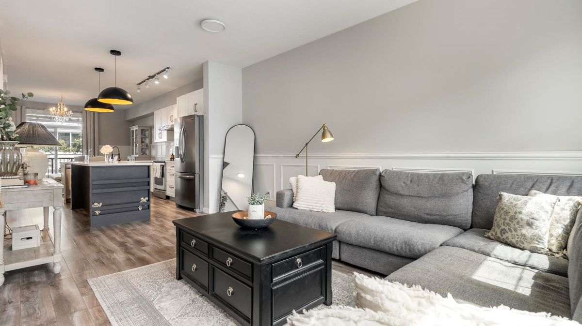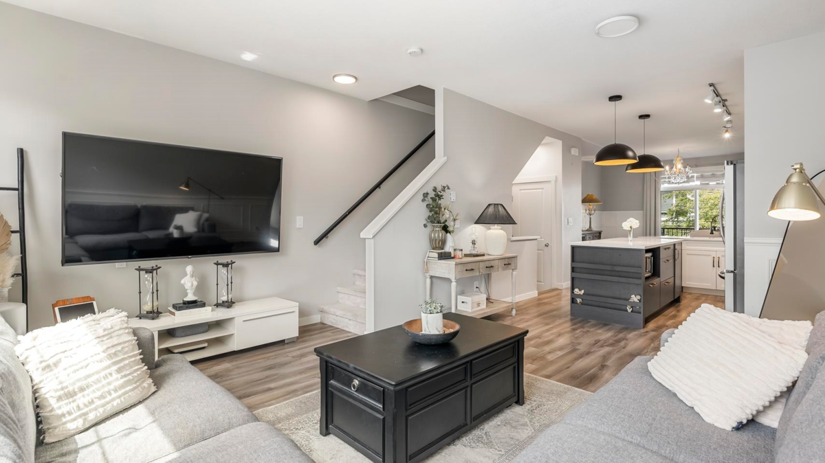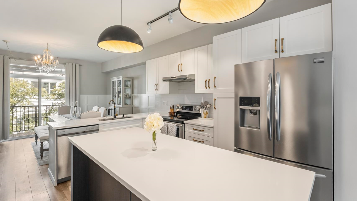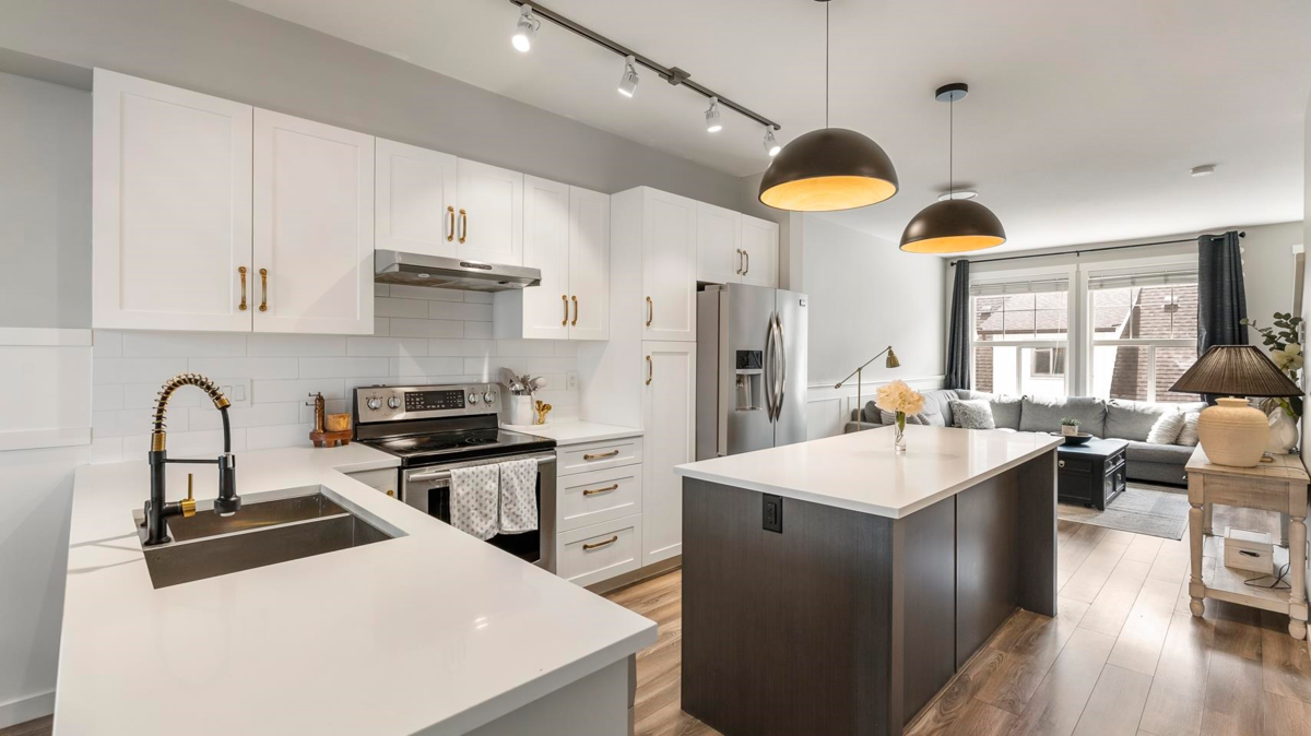 Welcome to The Grove at Cambridge, a well-loved townhouse community in the heart of Sullivan Station. This bright, open-concept home features a spacious main floor with quartz counters, a large island, and stainless steel appliances—great for everyday living or hosting friends. Thoughtful millwork adds warmth and character to the living and dining areas. Upstairs, the generous primary bedroom includes a spa-inspired en-suite with a glass shower and rain showerhead. The double tandem garage offers epoxy floors and plenty of storage. Walk to coffee shops, groceries, restaurants, and the YMCA—everything you need is close to home.