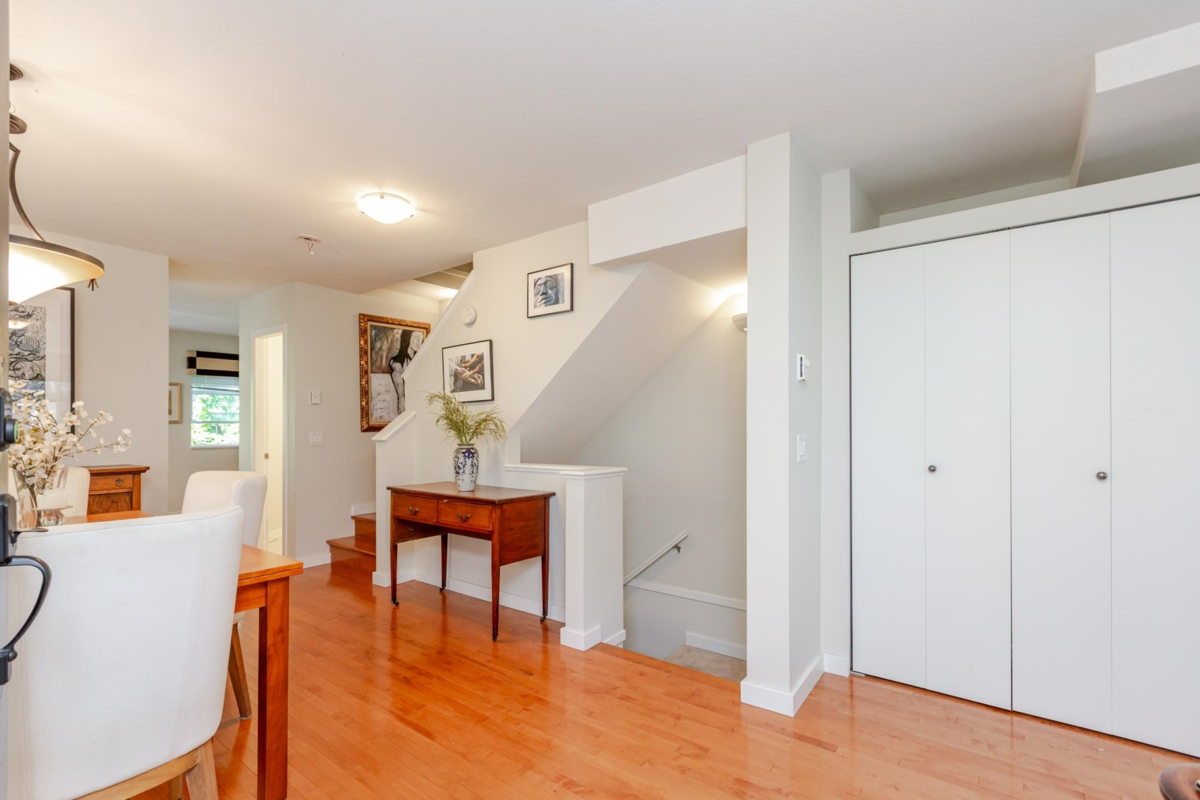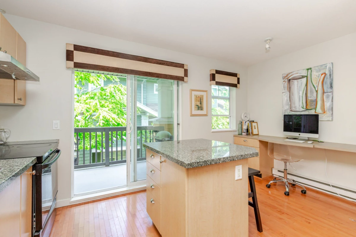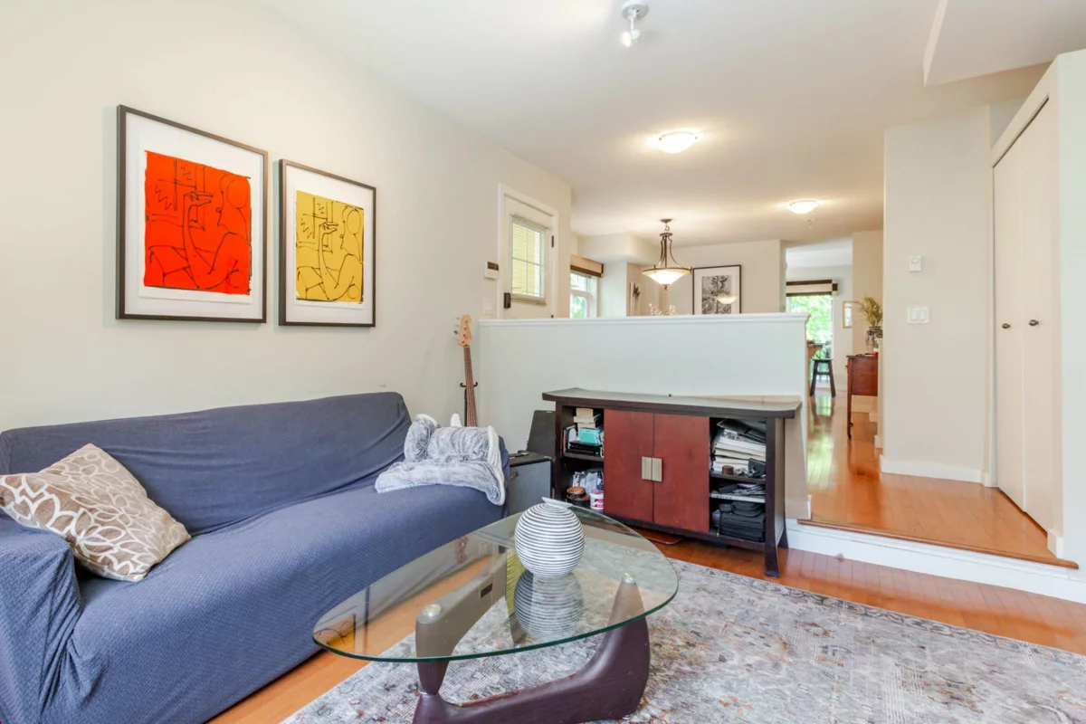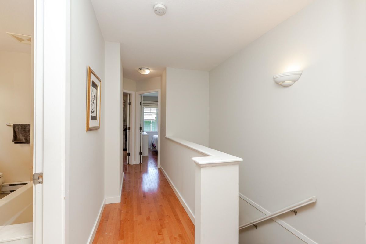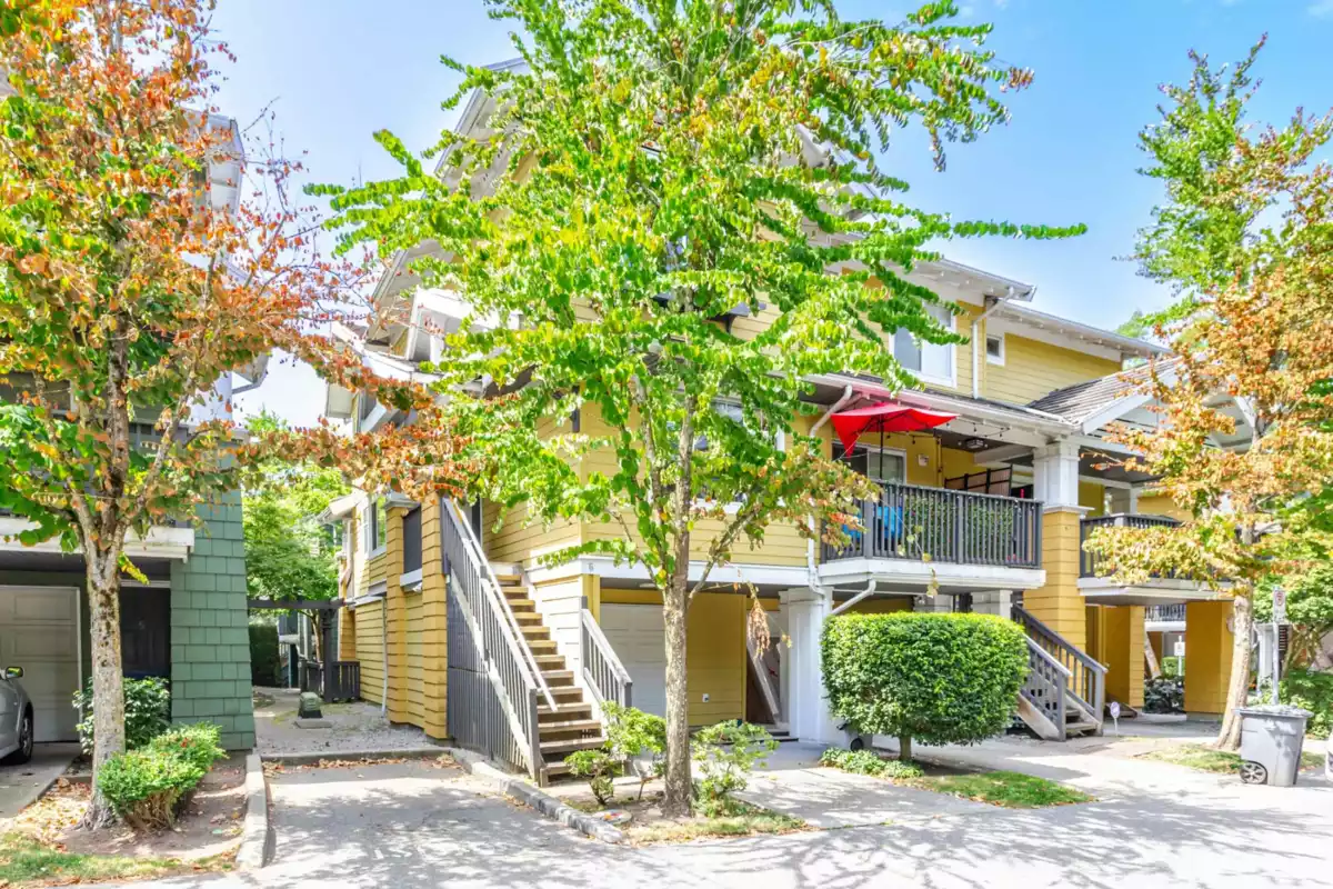 Welcome to Sundance! This END UNIT townhome offers almost 1500sf of living space! A fantastic layout that features 3 good sized bedrooms upstairs & an additional rec room or fourth bed downstairs. Main floor has a large dining area, kitchen that includes an eating area or home office & sunken living room that features a cozy electric fireplace. This original showhome includes real maple hardwood floors on main & upper floors, granite kitchen counters, powder room on main floor, & both a balcony off the main & patio off the lower floor. Primary bedroom boasts vaulted ceilings & a walk-in closet with built in's. 1 covered + 1 open parking & 2 pets allowed (no size restrictions). All this showcased by an abundance of natural light throughout! Great location close to all amenities!