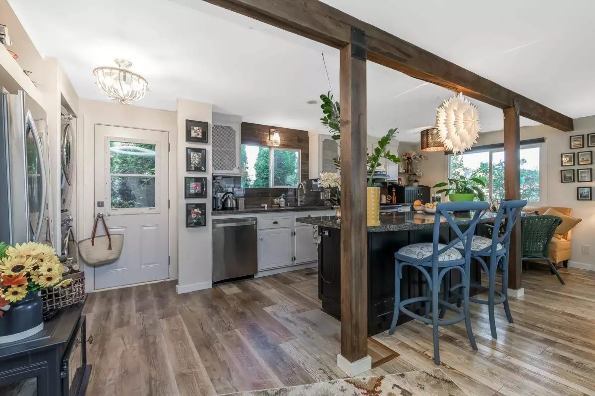 Welcome Home to Breakaway Bays! Fall in love with this gorgeous 3-bedroom, 1-bath Double Wide, full of updates and charm and your very own Catio! Since 2018 — new roof, gutters, hot water tank, windows, doors, brand new kitchen and appliances, flooring, lighting — you name it, it’s done! New covered porch with tons of storage, plus lush gardens in a prime cul-de-sac location! Additional insulation throughout the undercarriage. Your community perks? Outdoor heated pool, clubhouse with library and pool table, loads of activities — all just minutes to the beach, shopping, golf, schools, transit, and the USA border. Seller will pay 6 months pad rental upon closing RV Parking available too! Electricity is included in the pad rent! Don’t miss this rare gem — book your showing today!