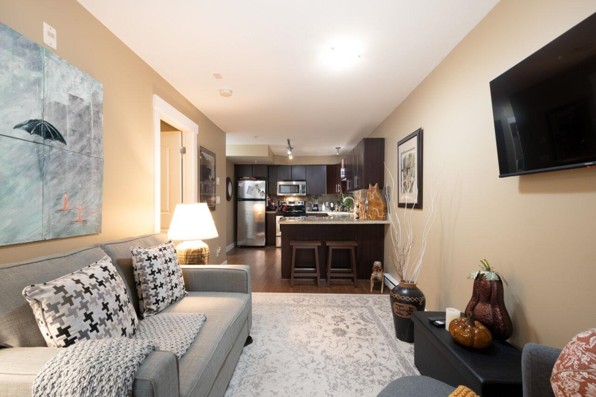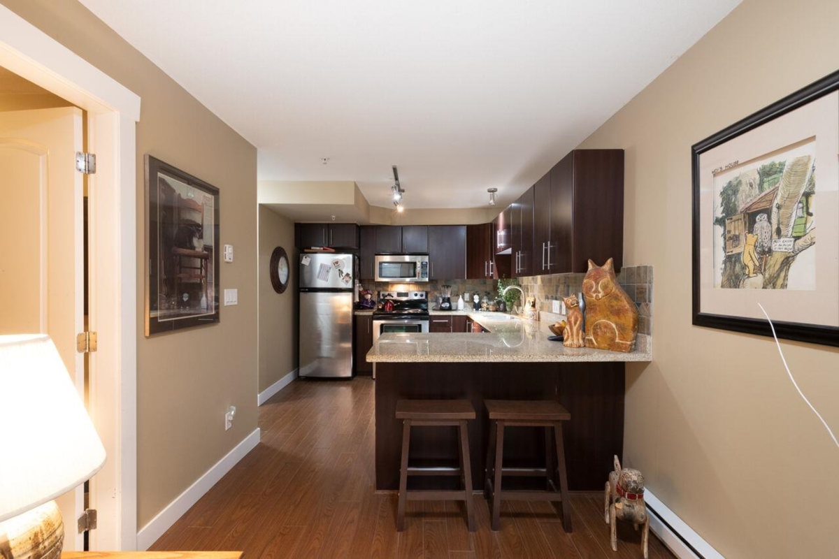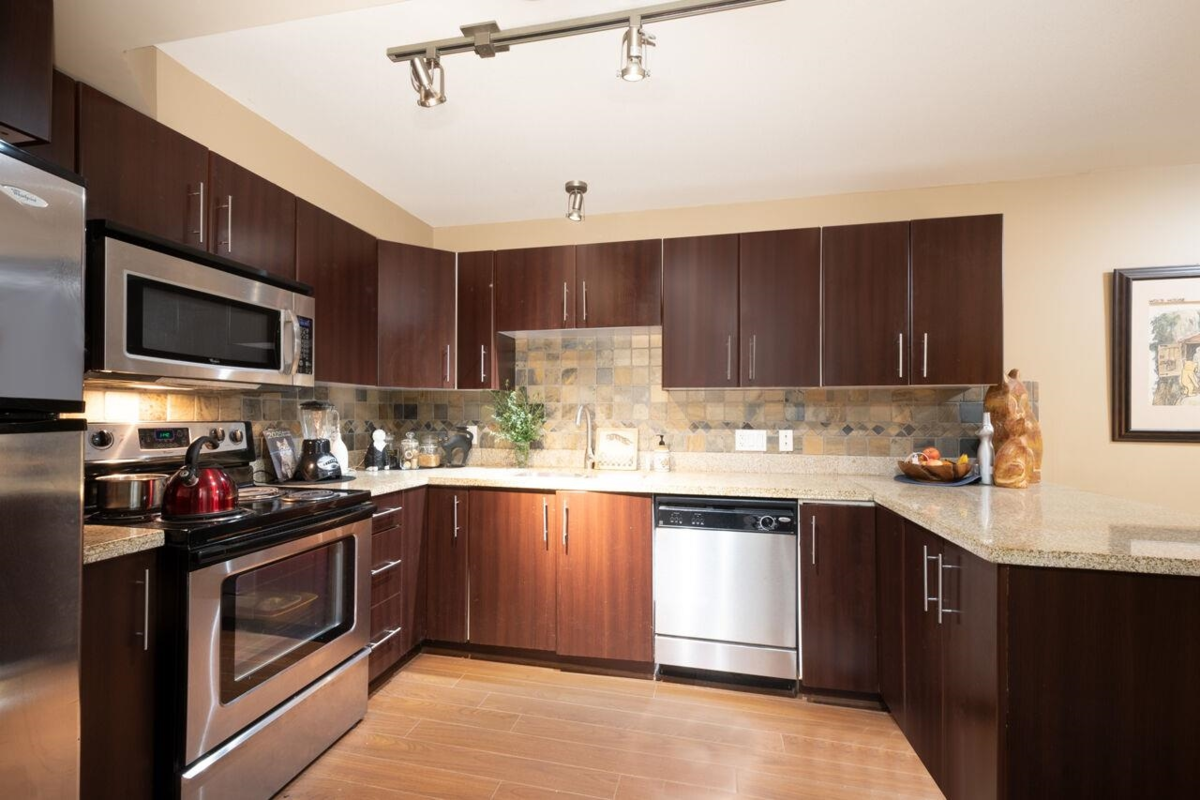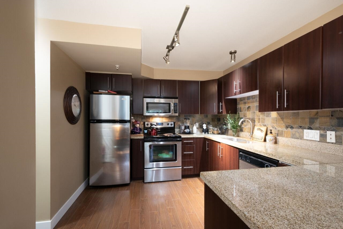 This beautifully kept 1 Bed + Den garden townhome offers 638 sq.ft. of bright, functional living with a 160 sq.ft. private patio—no work needed, just move in and enjoy. Featuring a spacious kitchen with stainless steel appliances, granite counters & breakfast bar, plus a southeast-facing living/dining area with bay window and laminate floors. Large primary bedroom and a den with window perfect for a home office. Quiet courtyard exposure ideal for BBQs and relaxing outdoors. Pet & rental friendly, 1 parking, and low strata fees. Conveniently located at Kingsway & 14th, close to shops, restaurants, community centre, schools & SkyTrain.