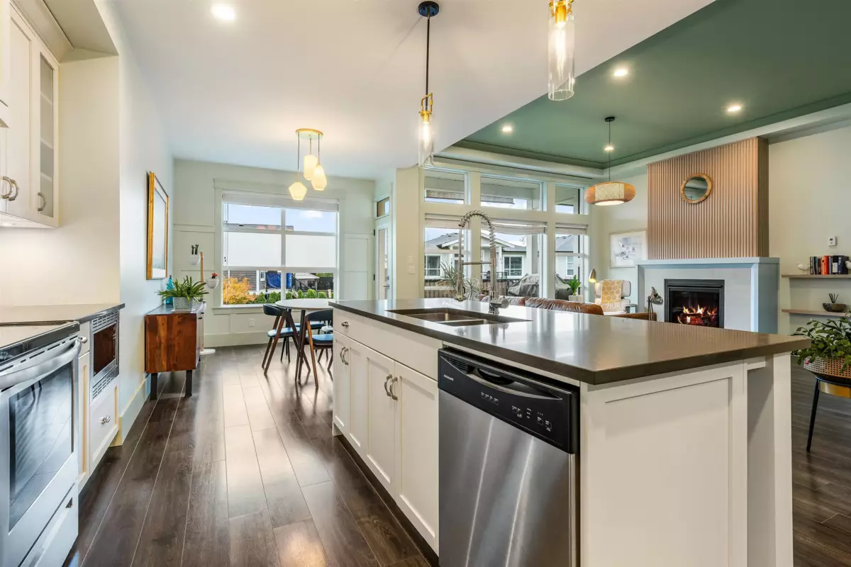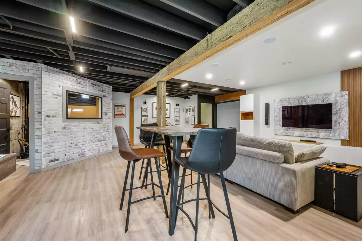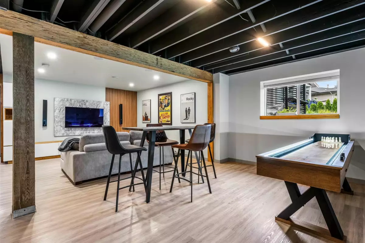 Positioned between Garrison Crossing & District 1881, this home offers great convenience - everything you need w/i minutes! Wake up to mountain sunrises & wind down w/ sunsets on your private, fully landscaped b/y oasis, complete w/ inground sprinklers & gas BBQ hookup. Bonus: the strata takes care of lawn! Inside, the California coastal vibe creates a relaxed, atmosphere. The main-floor primary suite is a serene retreat, featuring a spa-inspired design that invites you to unwind. Downstairs, you'll find a chic Manhattan loft vibe w/ exposed beams, concrete paneling & recessed lighting in the rec/theatre rm, which incls b/i sound & a sound-damped flex space—ideal for musicians, a study or wine vault! 3 bdrms, 3 baths & ample space to add a 4th bdrm down - this house must be seen!