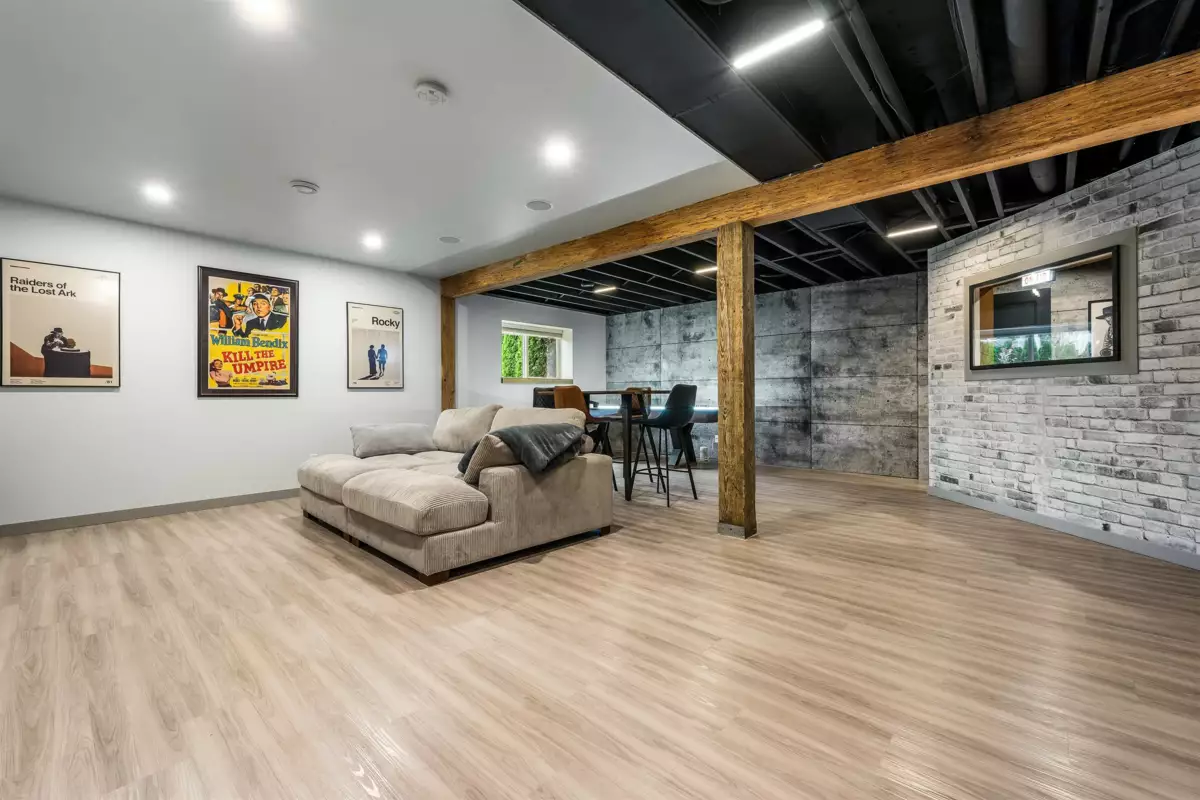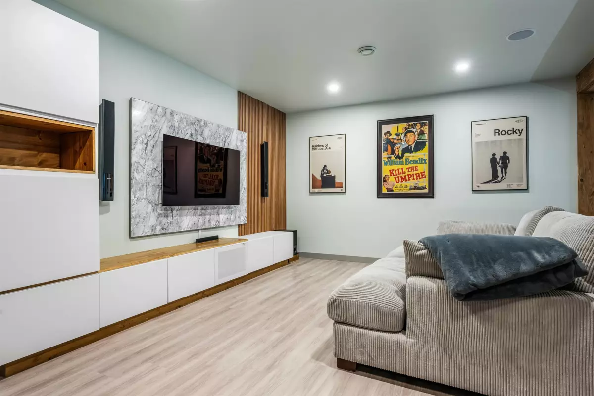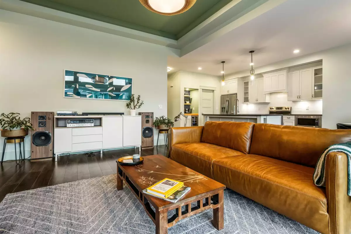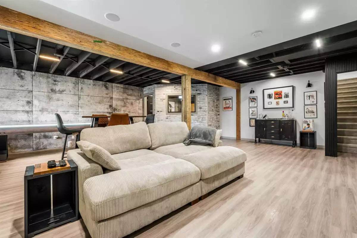 Positioned between Garrison Crossing & District 1881, this home offers great convenience - everything you need w/i minutes! Wake up to mountain sunrises & wind down w/ sunsets on your private, fully landscaped b/y oasis, complete w/ inground sprinklers & gas BBQ hookup. Bonus: the strata takes care of lawn! Inside, the California coastal vibe creates a relaxed, atmosphere. The main-floor primary suite is a serene retreat, featuring a spa-inspired design that invites you to unwind. Downstairs, you'll find a chic Manhattan loft vibe w/ exposed beams, concrete paneling & recessed lighting in the rec/theatre rm, which incls b/i sound & a sound-damped flex space—ideal for musicians, a study or wine vault! 3 bdrms, 3 baths & ample space to add a 4th bdrm down - this house must be seen!