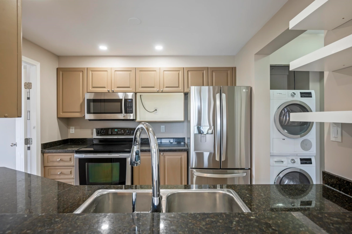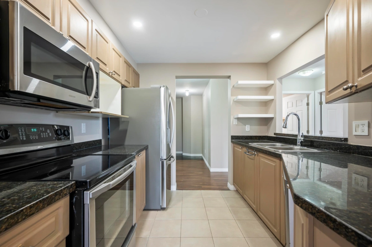 Experience urban convenience and serene living in this 842 sqft 2-bedroom, 1-bathroom corner home in the heart of Coquitlam. Boasting updated appliances and an expansive balcony, this home offers modern comfort with room to relax. Located directly across from Lafarge Lake and overlooking the quiet courtyard, outdoor recreation is at your doorstep. Steps to the SkyTrain, Coquitlam Centre, and countless shops and restaurants, this location is truly unbeatable. The well-maintained building features top-notch amenities, including an indoor pool, 2 hot tubs, gym, and sauna. Complete with 1 parking space and a storage locker, this condo is perfect for first-time buyers or investors.