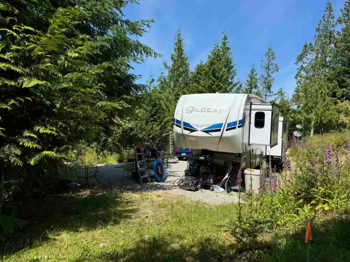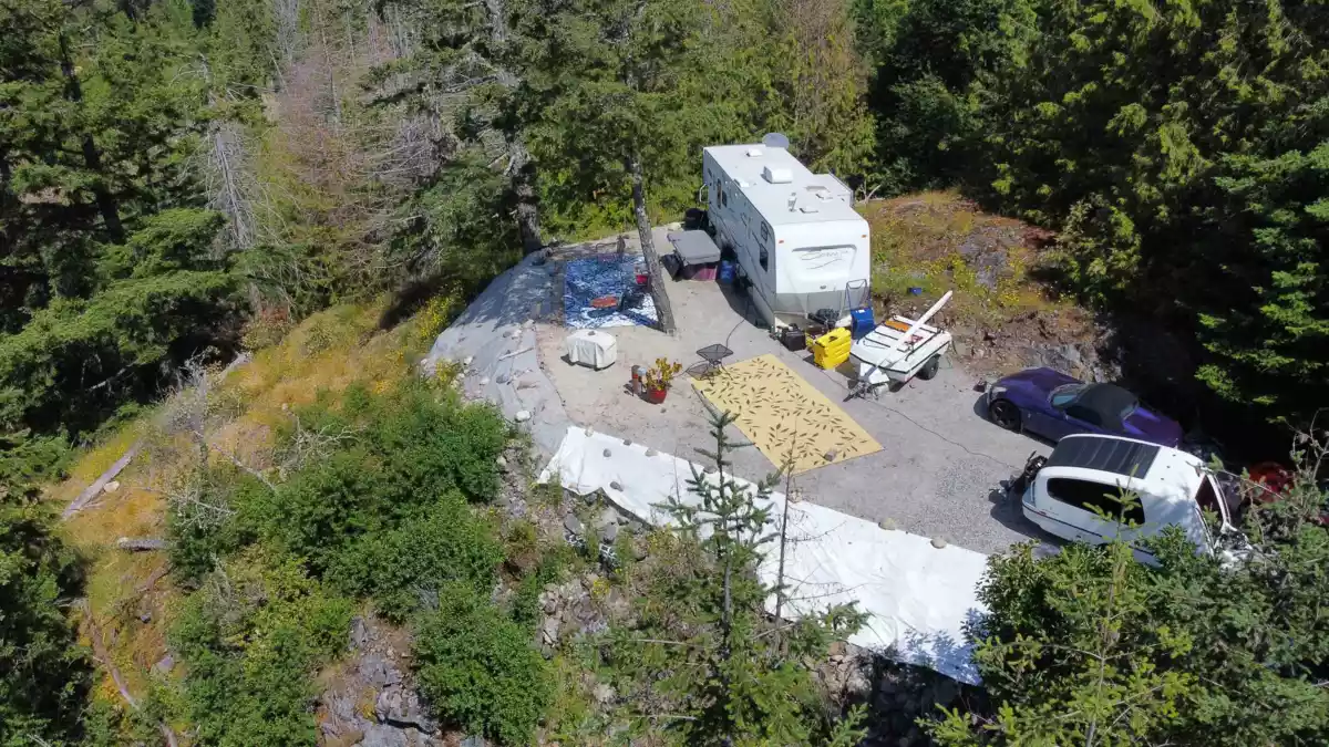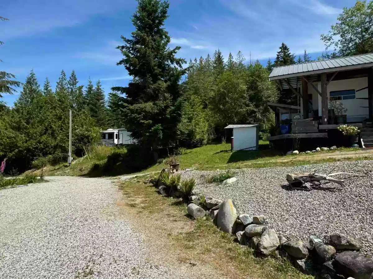 13 ACRES * Beautifully prepared acreage with panoramic ocean views. Ideal group purchase - 3 homes permitted - 5 VIEW building sites * lots of clearing and prep done * easily envision living your best lives. Currently 4 fully serviced RV sites in use. Infastructure to 4 RV sites incl power, drilled well, two septic fields, satellite service. Propane at primary site. Significant land clearing and trailblazing has created a very special setting with trails to several view spots. Monthly income not including owners site is $2800 per month. Do not enter the property without permission. No sign. Seller has invested close to $400,000 - infrastructure improvements. RU2 zoning could allow strata subdivision as well as campground. Refer to SCR 722 bylaw for confirmation.