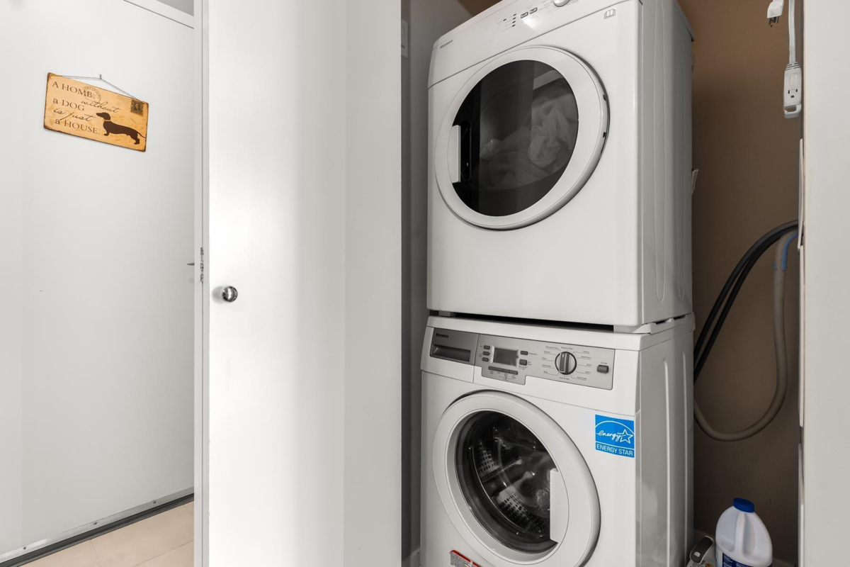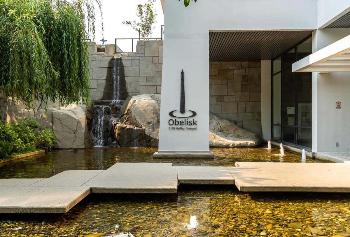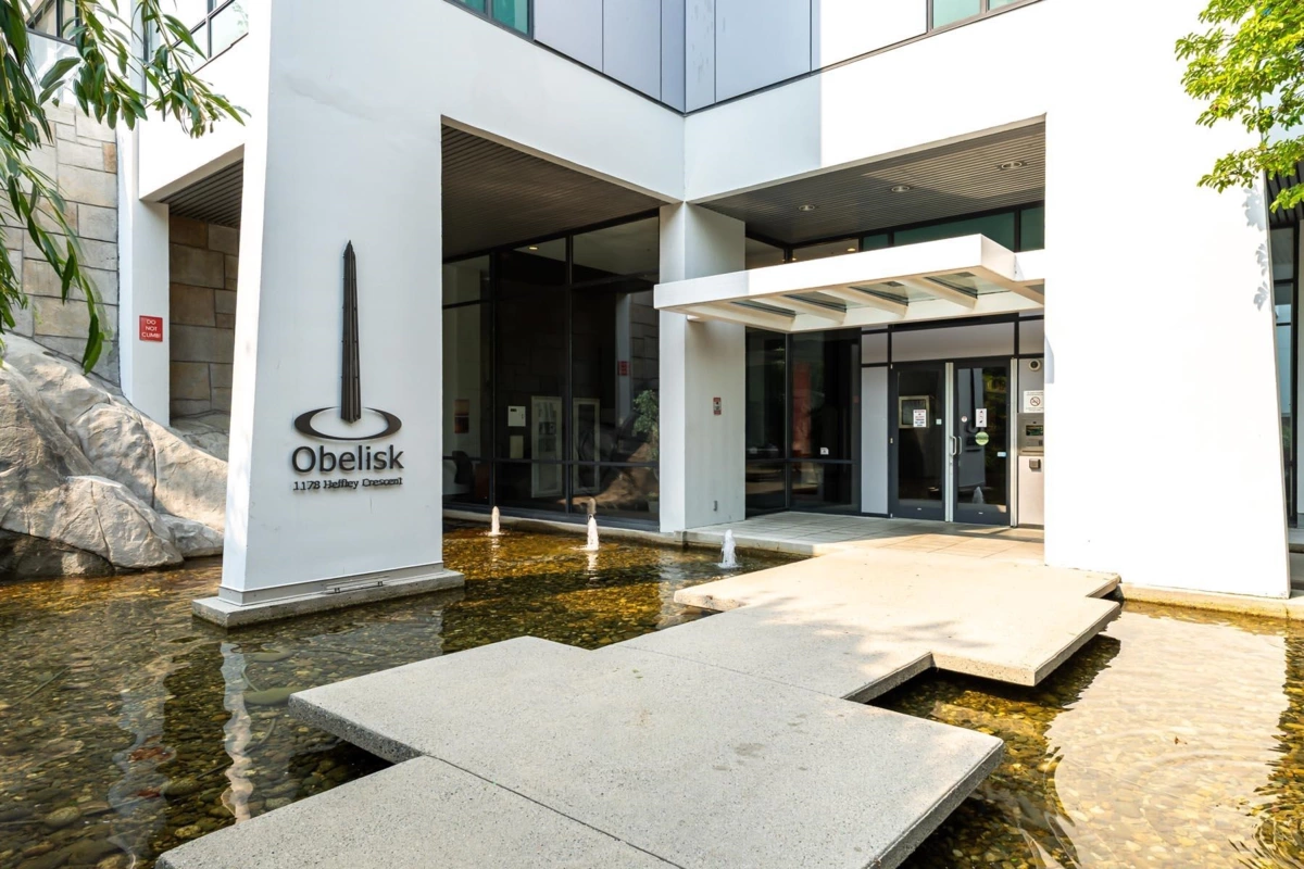 Pristine 2 bed + den, 2 bath corner unit in Obelisk, an excellent building with impressive amenities. The condo includes an open living area - kitchen w/ island, updated dishwasher/stove/washer/dryer, updated laminate floors, electric fireplace & large windows. Efficient layout, bedrooms on opposite sides. Functional den perfect for a home office or storage. Covered balcony. Primary bedroom has double closets & ensuite bathrm. Amazing amenities: gym, sauna, party room, games room, bike room, car wash station, 6 EV chargers, visitor parking, 3 elevators & on site building manager. 1 dog/cat allowed (25 lbs max). Close to Skytrain, Lafarge Lake, Coquitlam Centre, Douglas College, schools, parks, dog park, restaurants, coffee shops & more!