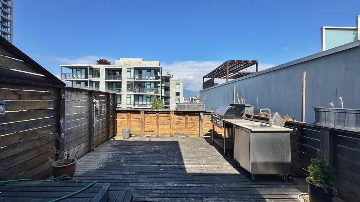 "PARIS BLOCK", a unique heritage conversion by the Salient Group, perfect for professionals/investors. This highly desirable, New York live/work/industrial/loft style w/ red bricks offers 1047 sqft of exceptionally finished space in a quiet/central location, putting you moments away from Vancouver's best dining, shopping & scenic views. This penthouse unit celebrates its heritage w/ exposed brick walls, Pella windows & doors, polished concrete floors. Modern comforts include a Miele appliance package, wine fridge & spa-like bathroom w/ slate tile, soaker tub, walk-in shower. The true highlight is the massive & private rooftop patio, complete w/ an outdoor kitchen & stunning North Shore mountain views. *Some photos are virtually staged.