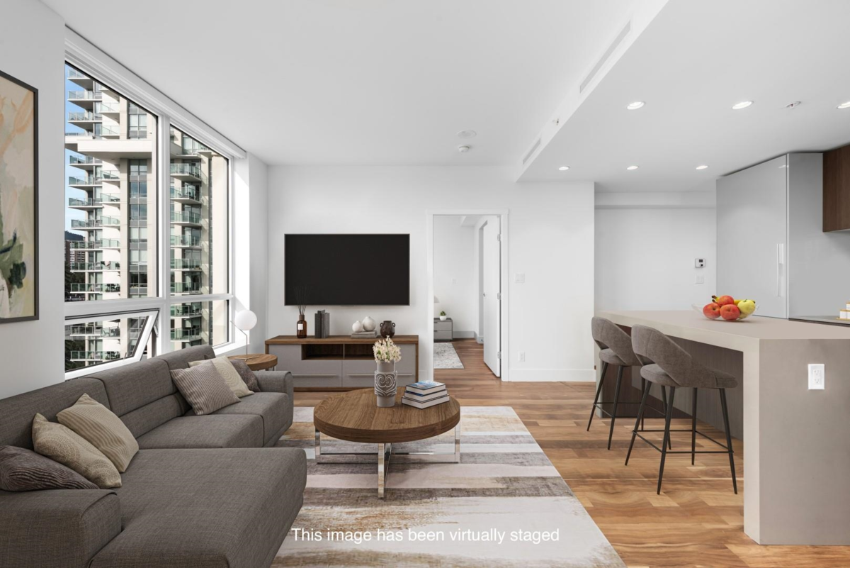 This sophisticated 2-bedroom, 2-bathroom corner unit at Park West in Lions Gate Village offers 920 square feet of refined space with stunning views of the North Shore mountains and Lions Gate Bridge. The home features hardwood floors, a high-end kitchen with Miele appliances, and an open den/flex room. Residents enjoy resort-style amenities, including an outdoor pool, fitness center, spa room, and secure underground parking with EV charging. Ideally located near Park Royal Shopping Centre and scenic Capilano River trails, this unit epitomizes luxurious North Shore living.