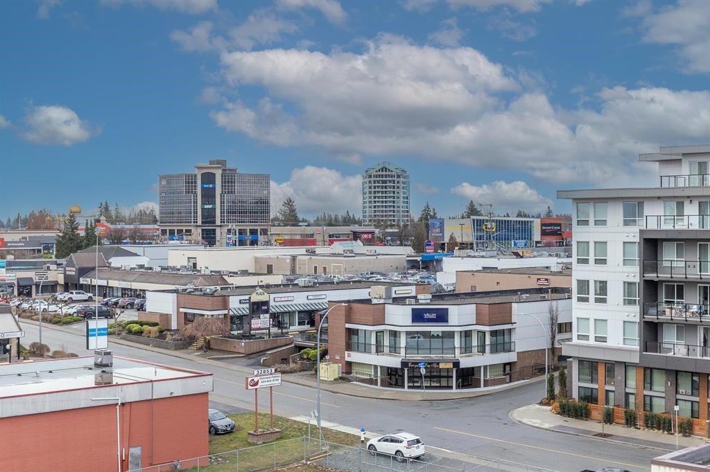 CORNER UNIT WITH VIEW - 2 bed 2 bath, 884 sq ft with wrap around deck and view of Mt Baker for private outdoor living. Featuring stainless steel appliances, polished quartz countertops and modern flat panel cabinetry. Bright outlook with 10 foot ceilings, walk through closet and 3 piece master bath. Courtyard features a theatre wall, lounge seating and picnic tables, BBQ area and fitness space. Secure underground parking and storage unit. This beautiful apartment is centrally located, steps from Seven oaks Shopping Centre, superstore ,sandman hotel and minutes from Abbotsford's historic downtown core plus Mill Lake Park. This unit has 2 parking spots.