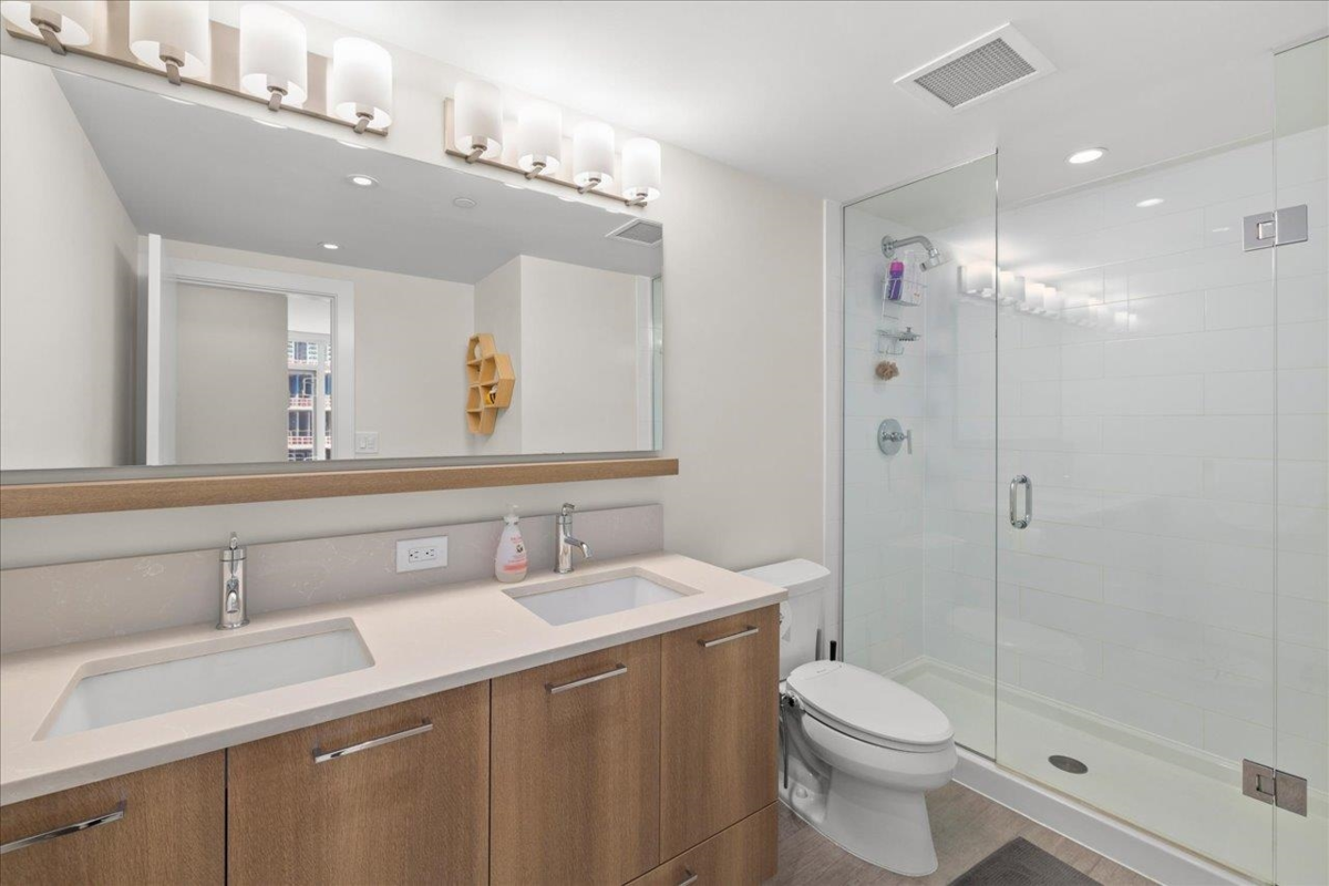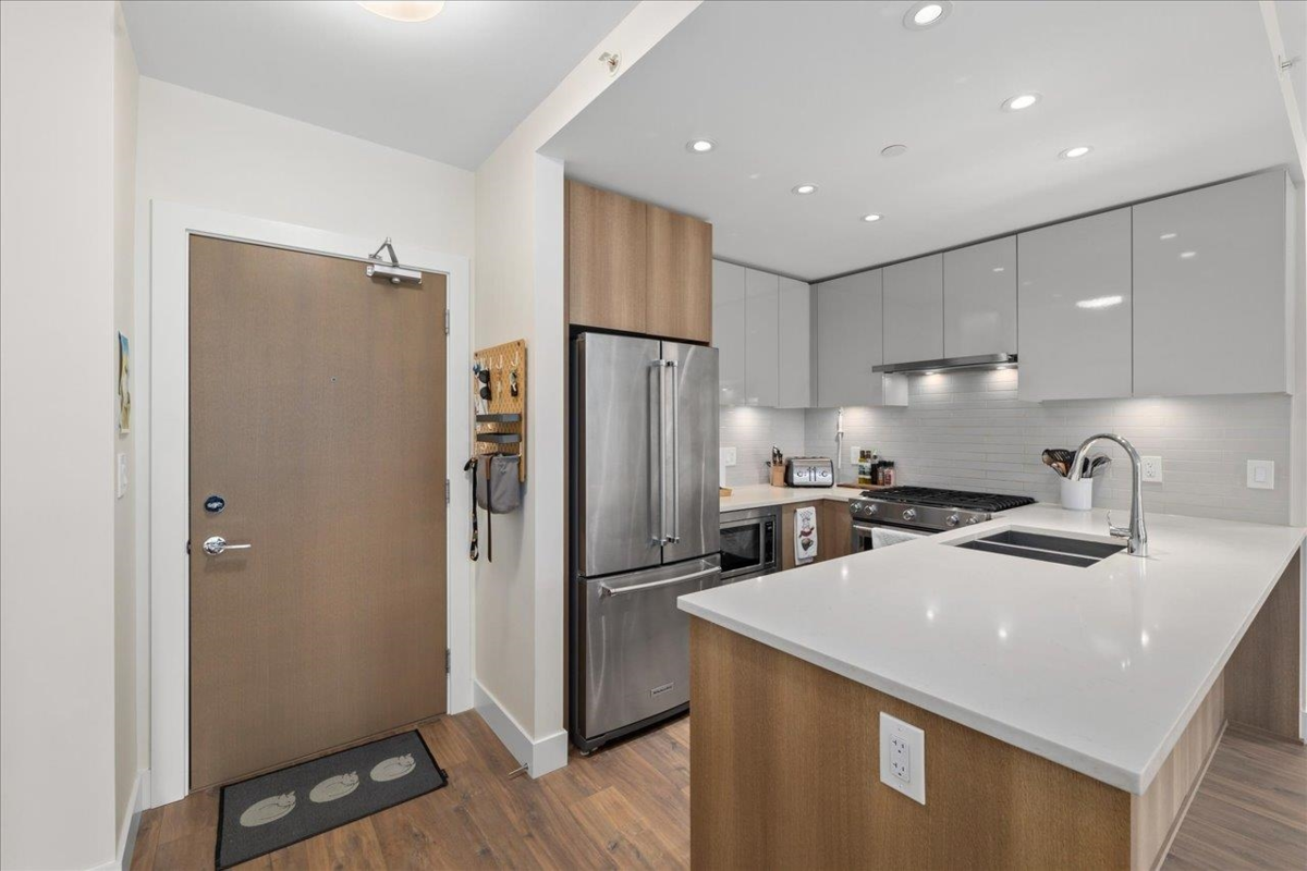 Immaculate 2 bed, 2 full bath ~950 sqft home at THE COLUMBIA—one of the best layouts in the Brewery District! Bright open plan w/ no wasted space & large windows for natural light. Modern kitchen w/ GAS range, S/S appliances, quartz counters & island bar. Defined dining & living areas lead to a quiet court-facing 112 sqft balcony—perfect for relaxing or entertaining. Spacious primary bdrm w/ walk-in closet & ensuite w/ dbl sinks + a good-sized 2nd bdrm ideal for guests, kids, or office. Quality 5 yr old bldg w/ balance of 2-5-10 warranty. 10,000+ sqft of resort-style amenities: gym, squash court, yoga rm, sauna/steam, lounges, comm. garden + wash stations! 1 parking & locker. PRIME location steps to SkyTrain, RC hospital, grocery, shops & restaurants + easy highway access. *MOVE IN READY!*