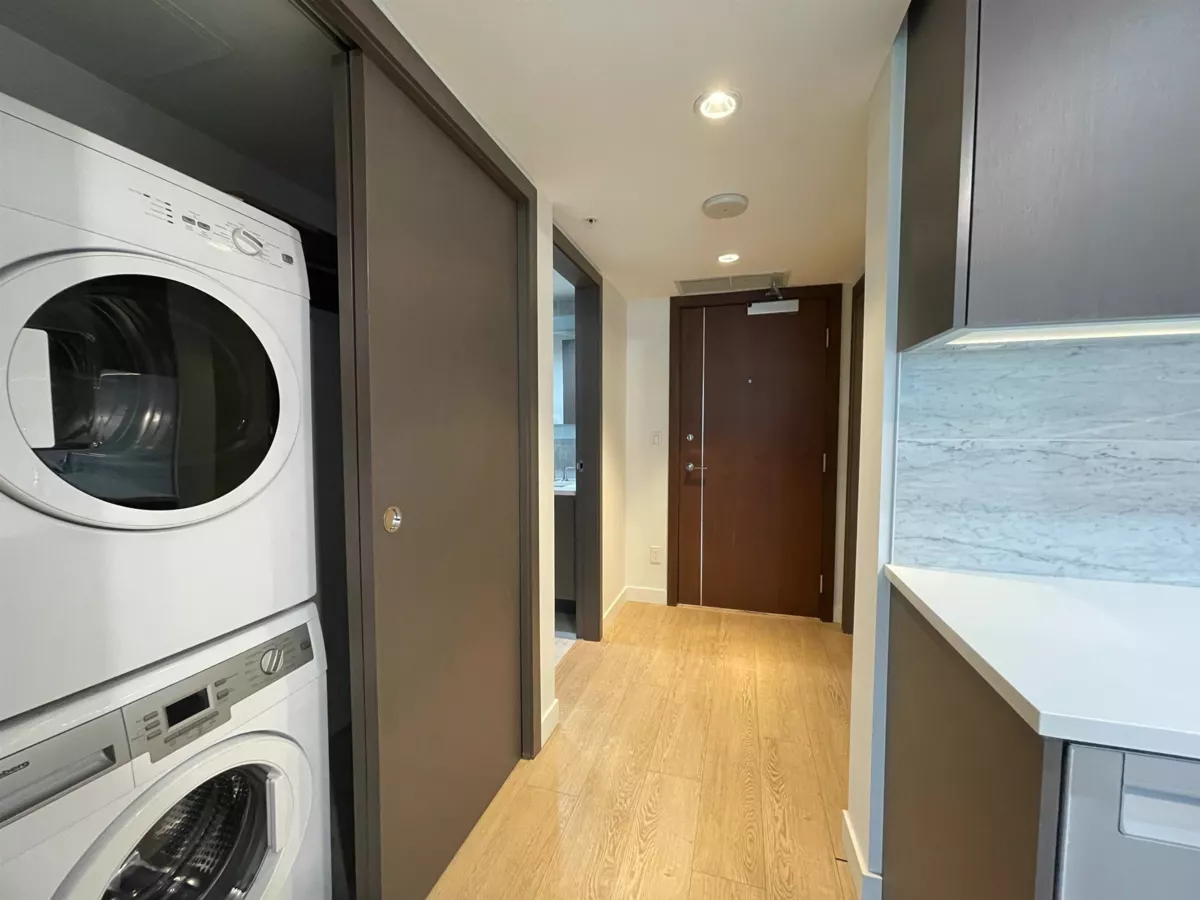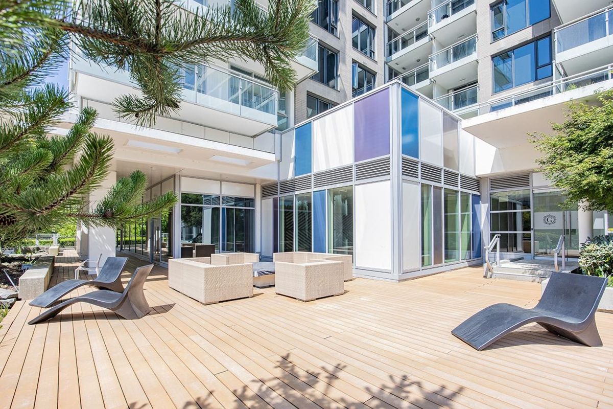 Concord Gardens@Central Estates built by Concord Pacific. Quality built and functional layout with 1 bedroom+DEN, quiet unit facing EAST with courtyard garden view. 1 covered EV parking. Central A/C and heating with European appliances. Concierge Service, Diamond Club with 20,000sf amenities which includes indoor pool, sauna, bowling, big gym, golf simulator, basketball/badminton court, private theatre, grand ballroom & dining room. Centrally located and walking distance to restaurants, shopping malls, supermarkets and CAPSTAN Skytrain station.
