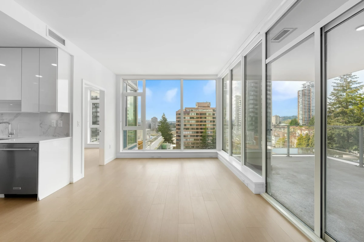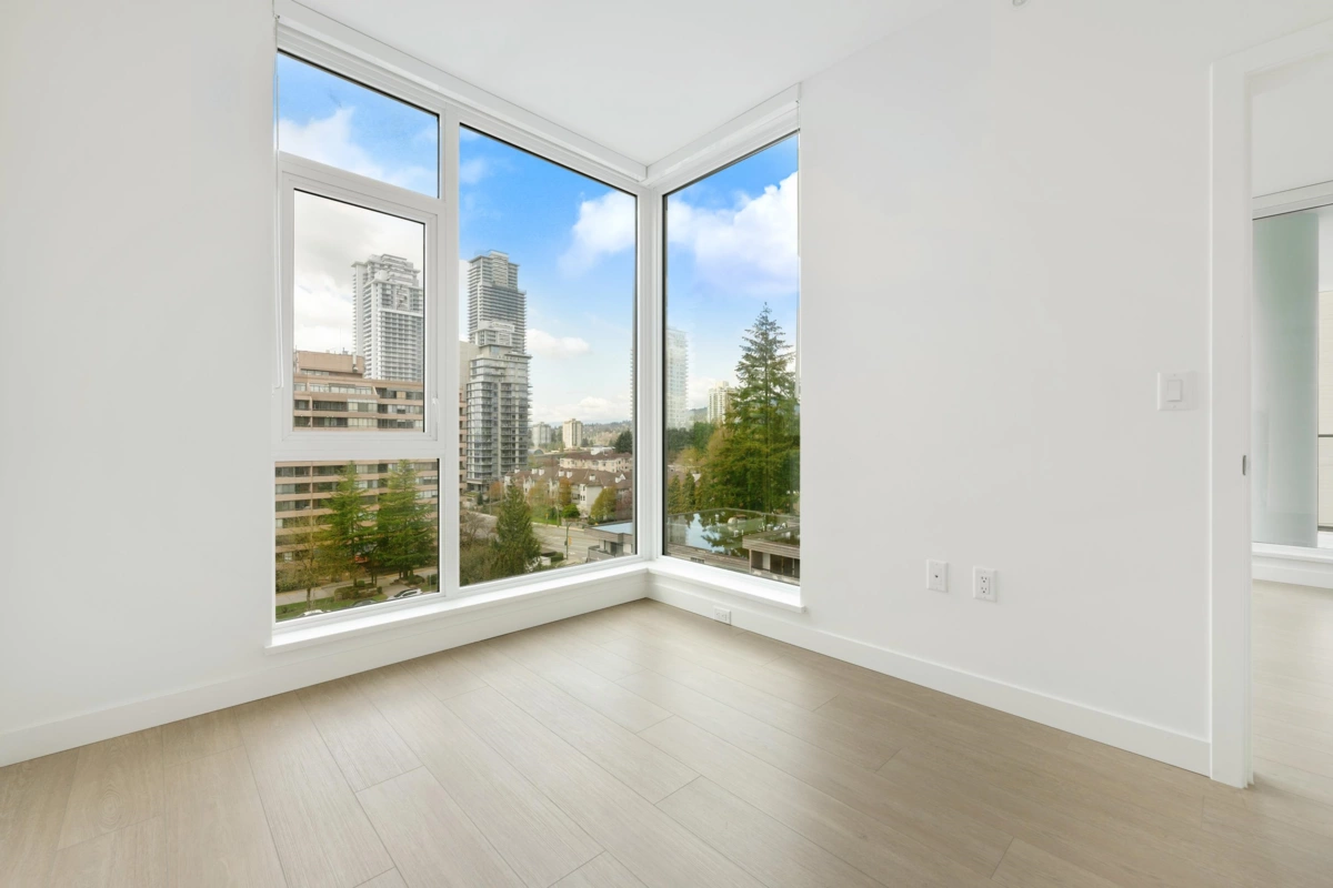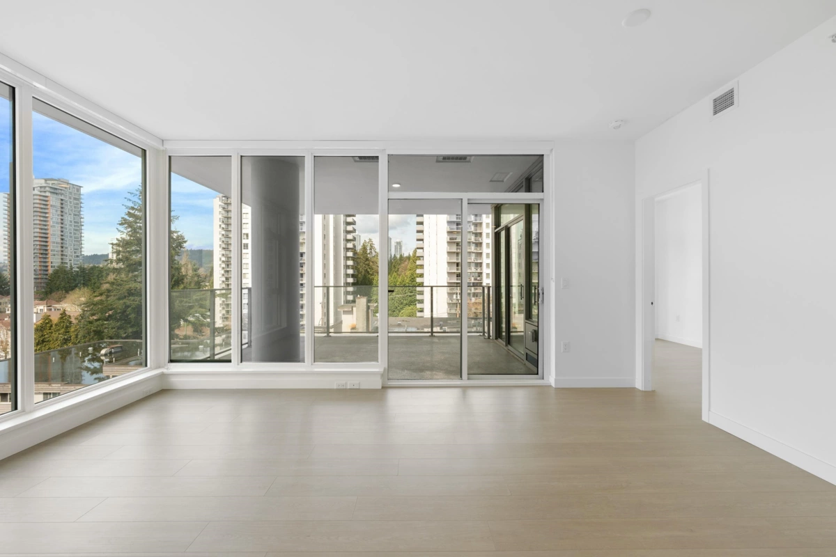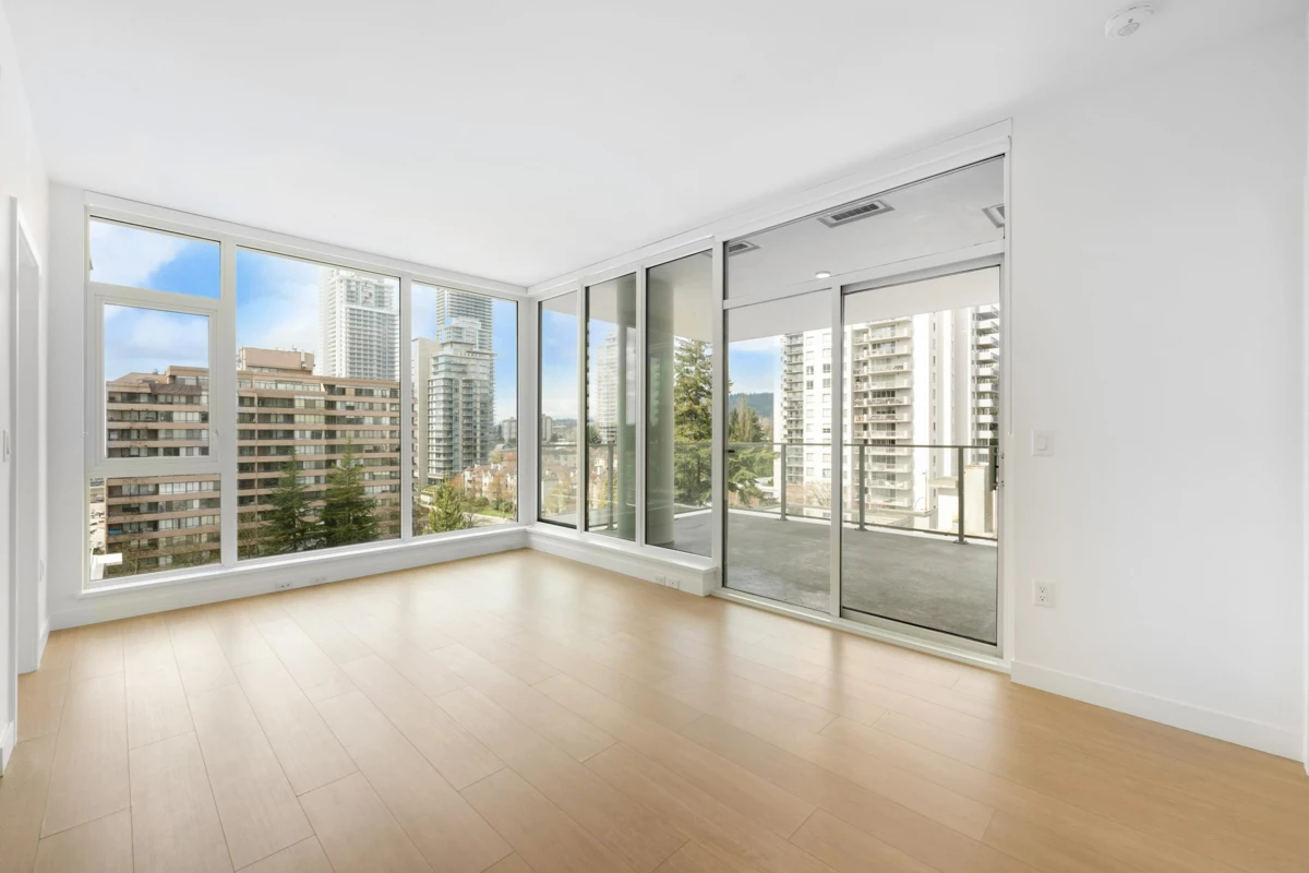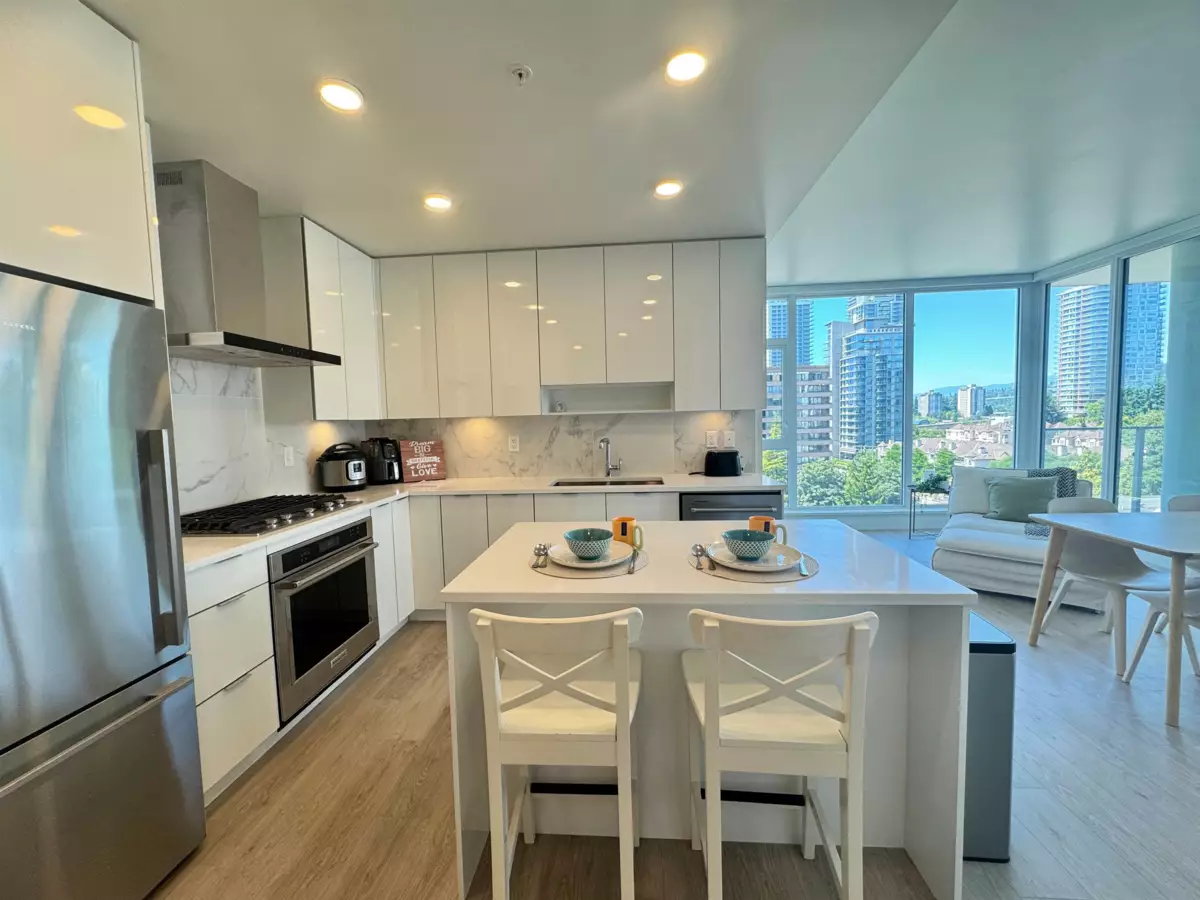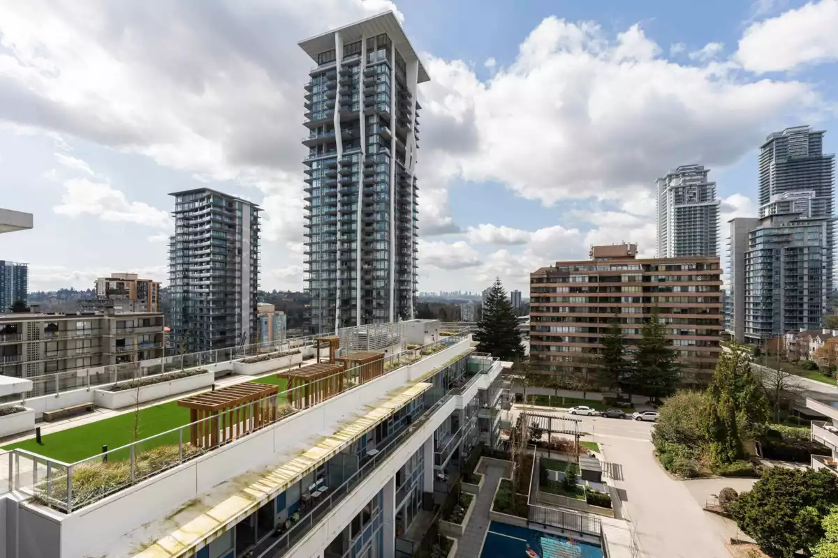 ONE OF THE LOWEST PRICED CONCRETE HIGHRISE Corner Unit by Ledingham McAllister in SYDNEY features an open-concept kitchen and living area with 9ft ceilings, floor-to-ceiling windows, and a balcony with a 270° panoramic view of the city and amenities open area. The unit offers two elegant bathrooms, a stainless appliance package with gas cooktop and front-loading W/D (2-5-10 Warranty), plus a wheelchair-accessible floor plan with generous halls and doorways. Enjoy amenities like a fitness centre, yoga room, fireside lounge, meeting room, games room, guest suites, and a landscaped terrace with cabanas. Located in a quiet neighbourhood, just blocks from SkyTrain and Lougheed Mall. ASSUME MORTGAGE @ 2.64% TILL JAN 2028. OPENHOUSE SAT 2:30-4 PM