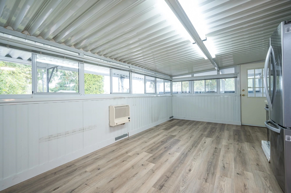 Welcome to Langley Grove Estates! Beautiful Custom Double Wide beautifully updated home featuring over 1500 square feet with 2 beds, plus den or 3rd bedroom with custom bar, silver label, metal roof, walk in jetted shower/tub, gas heat pump with A/C, 2 sunrooms with gas fireplace for year round entertaining and enjoyment, large private yard with a large covered deck plus a large detached workshop. Located on a large private lot in quiet park like setting. Low pad rental of $950.00 a month which includes garbage, recycling, snow removal and incredible amenities in this resort style living! Opportunity is knocking to own your own brand new home in this desirable Parkbridge Community. No age restrictions and 2 small pets (17"at shoulder) ok. Shows 10 plus. Call today before it's too late!