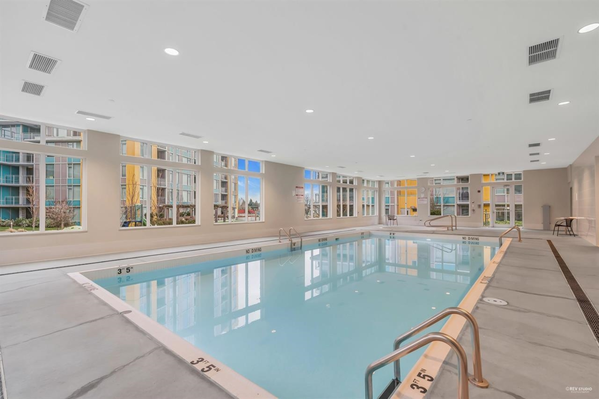 Tempo developed by Amacon. Great location within 10 minutes walking distance to Canada Line, Richmond Shopping Centre and Lansdowne Centre. Just several steps to Olympic Oval, T&T, library, restaurants and Fraser River. Tempo Club offers deluxe amenities such as indoor swimming pool & hot tub, exercise center, dance/yoga studio & party kitchen. Concrete construction with contemporary finishing. This spacious two bedroom & 2 bathroom unit with A/C is 901 sq ft living with an outdoor balcony. Must to see!