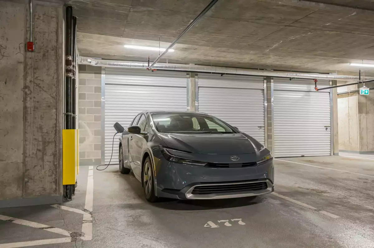 **PENTHOUSE w/ 13FT CEILINGS facing WEST built by QUADRA in the luxurious YORKSON PARK complex** Step into luxury living with our exquisite one-bed, one-bath residence spanning 771 sqft, complete with a spacious 82 sqft retractable glass panel solarium/deck. Indulge in top-of-the-line appliances, sleek quartz countertops, and the comfort of heated flooring in the bathroom. Entertain effortlessly with a natural gas line on the patio and relish in the convenience of built-in AC. 2 parking spots with pullup storage locker at end of spot & EV charger included! Nestled in a prime location, enjoy proximity to schools, shopping, transit, and easy highway access!