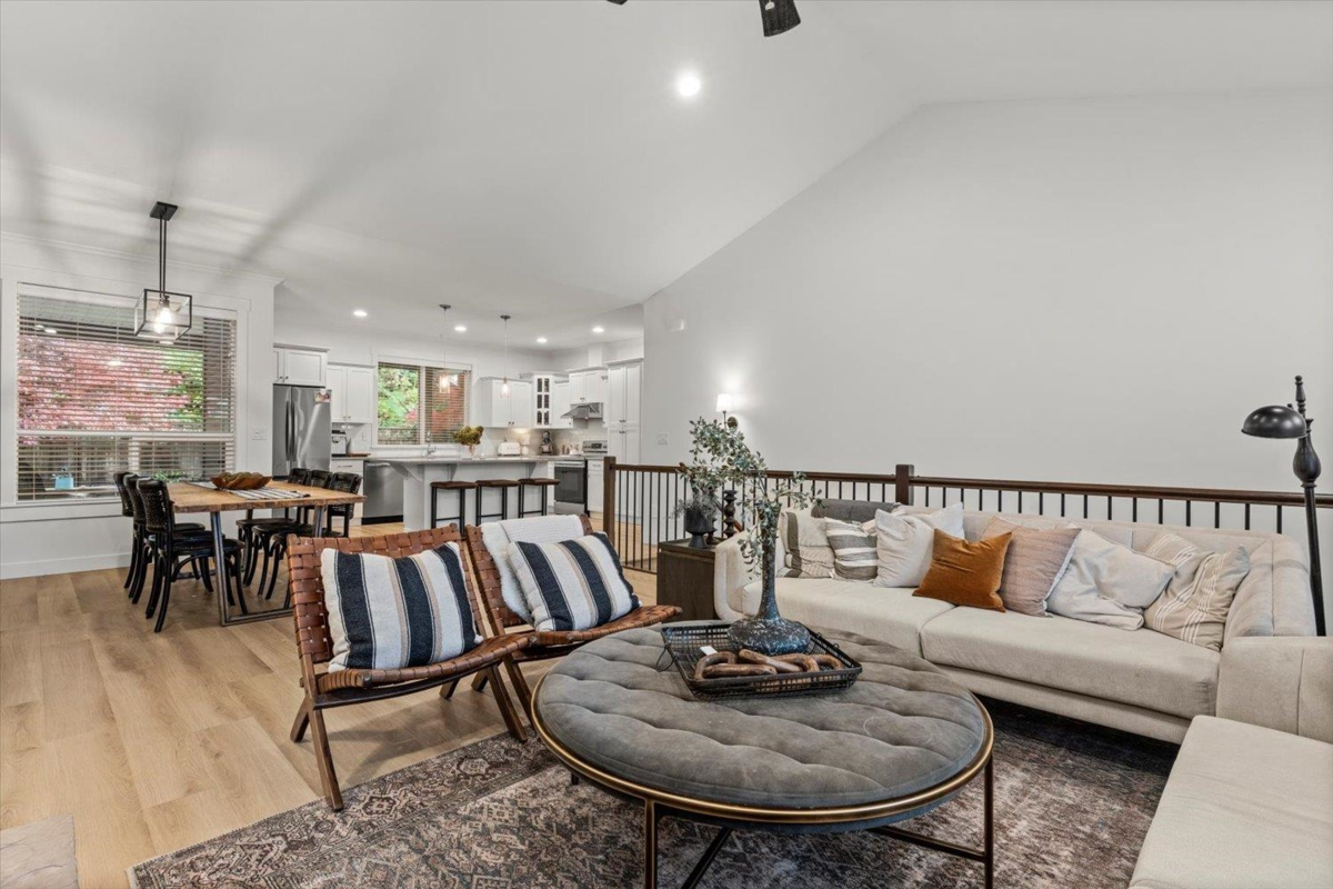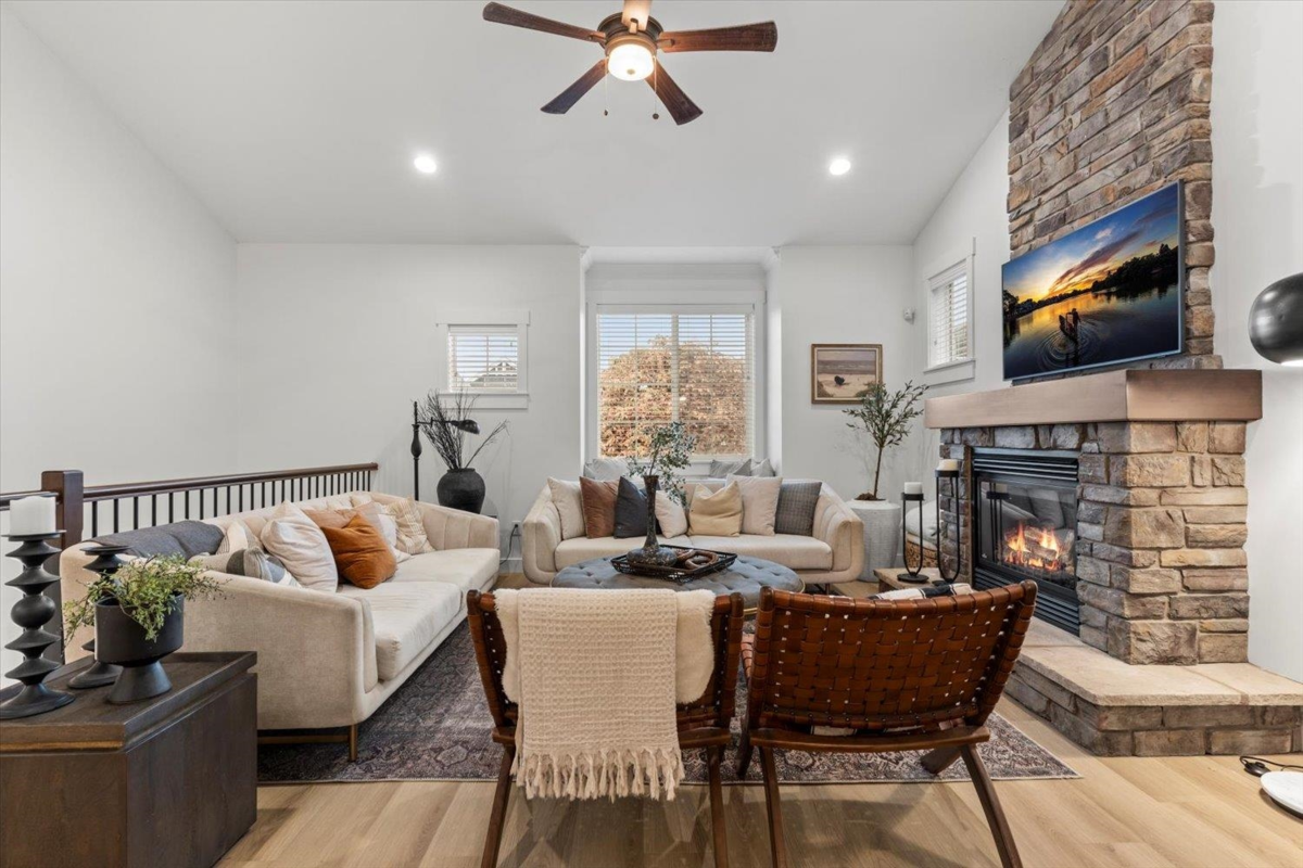 Vaulted ceilings, modern finishes, and a private backyard — this 5 bed, 3 bath Promontory home has it all. Complete with mountain views, this family-friendly residence offers space, style and flexibility. The bright, open-concept kitchen features stainless steel appliances, a large island and seamless flow into a stunning living room with vaulted ceilings and a stone-accented gas fireplace. Step outside to your fully fenced, tree-lined yard with hot tub - relax enjoy! Upstairs, three spacious bedrooms include a luxurious primary suite with a walk-in closet, double vanity and walk-in shower. The lower level has a separate entrance, office and 2 bedrooms plus rough-ins to create a 1 bedroom suite — perfect for guests or extra income potential.