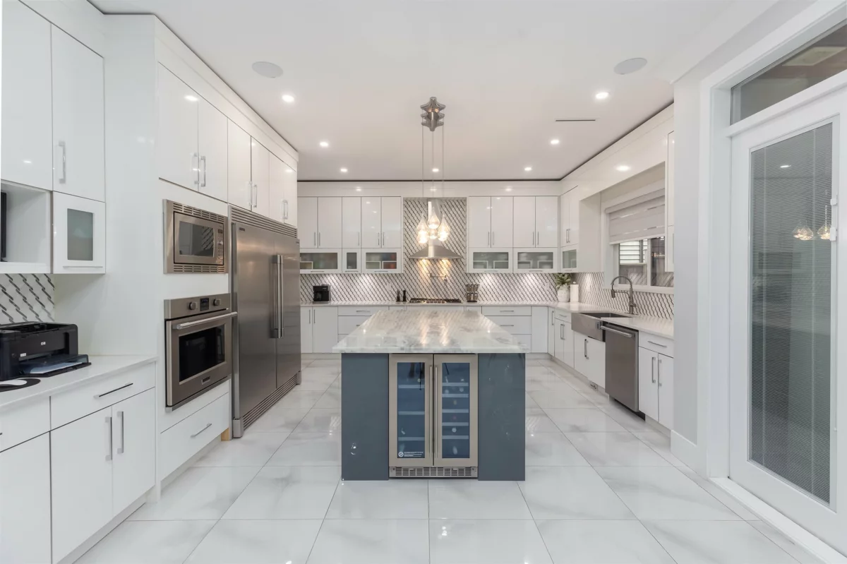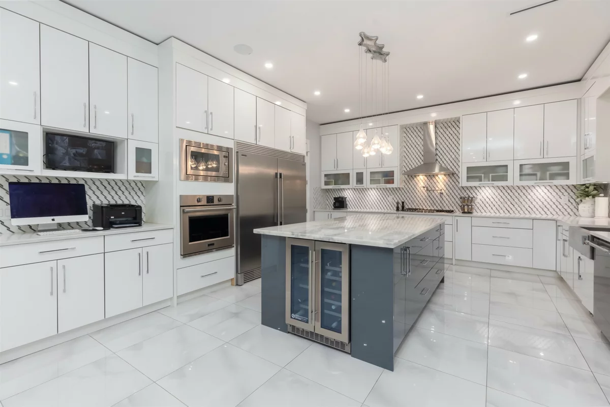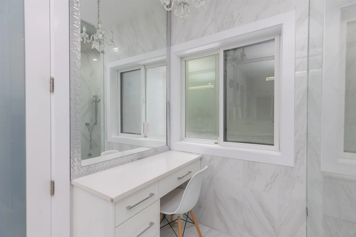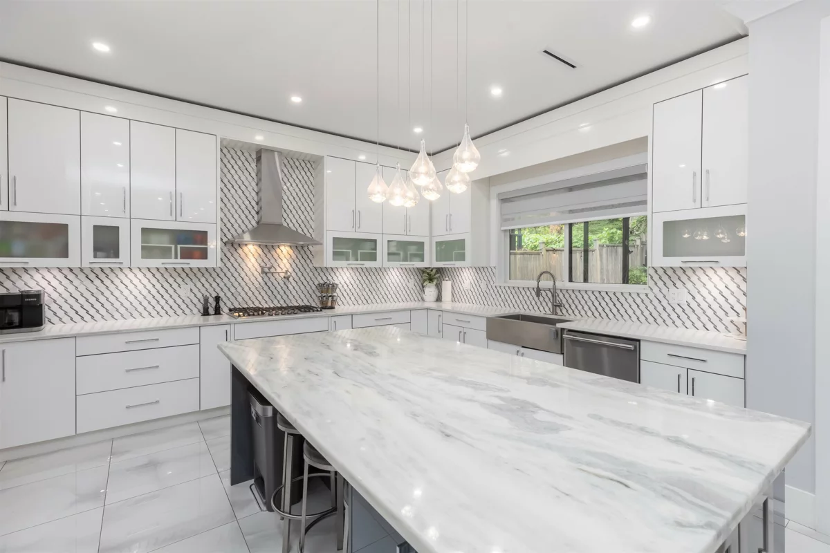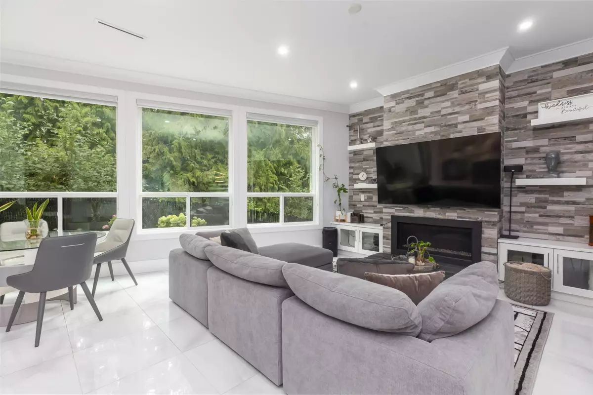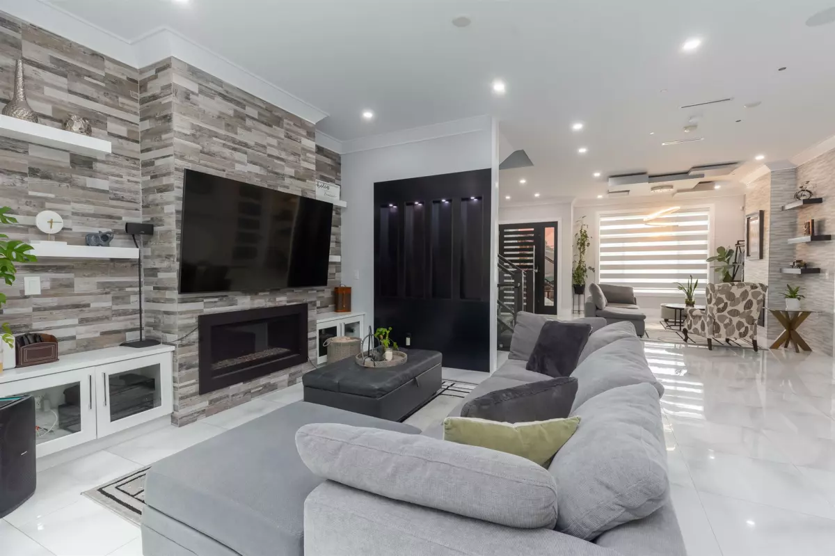 This stunning, contemporary home in Sullivan Station offers breathtaking mountain views and backs onto a private greenbelt for ultimate tranquility. Situated on a rare 65-foot corner lot, this expansive residence spans over 4,350 sqft and is designed to impress. Featuring 7 spacious bedrooms & 8 bathrooms including a 2-bedroom legal suite & 2 master bedrooms, this home is built for both comfort and style. The grand interior boast soaring vaulted ceilings, oversized windows, and premium finishes throughout. Highlights include centralized A/C, radiant in-floor heating, custom acrylic kitchen cabinets & top of the line appliances. The gourmet kitchen is a chef's dream with a stunning marble island slab imported from Kolkata and designer light fixtures throughout.