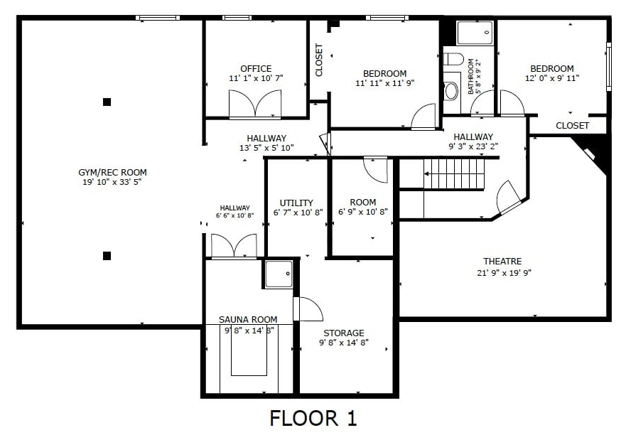 | Below | Office | 11'1' x 11'1' ft |