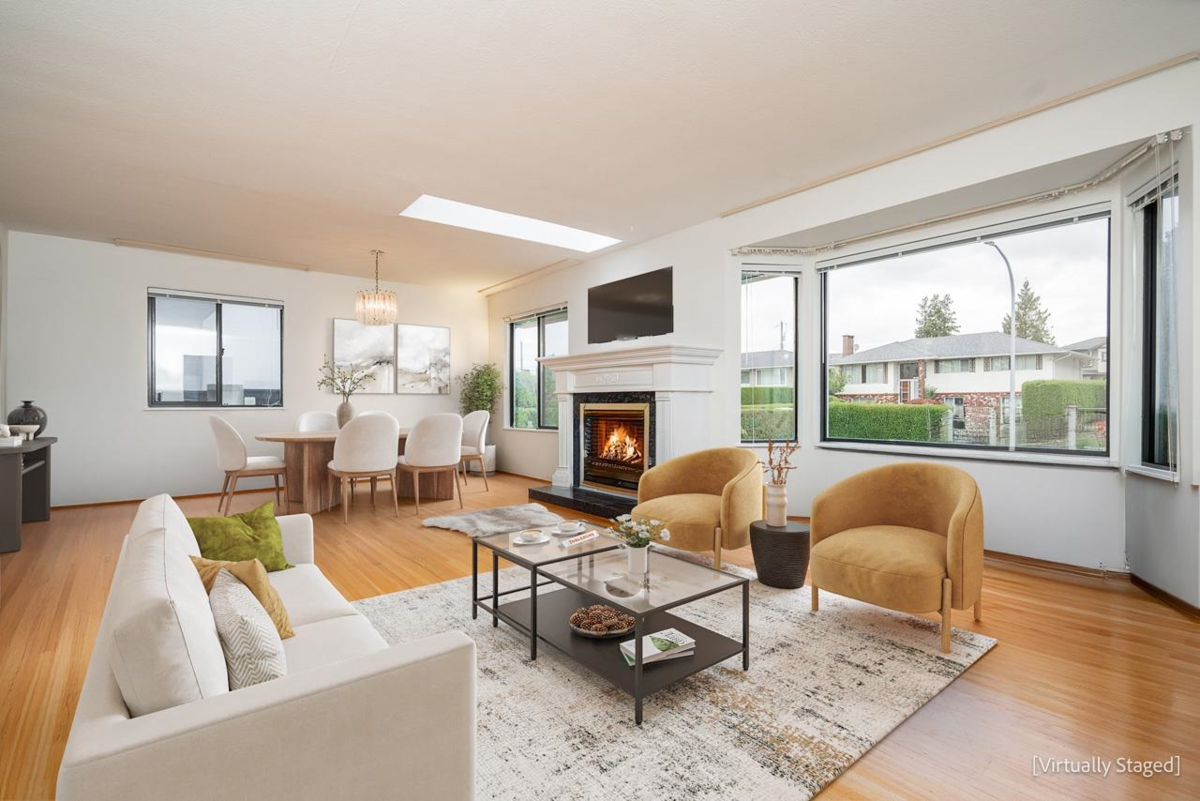 Rancher Retreat with Renewal & Redevelopment Potential! Step into this well-maintained rancher, a rare find for both savvy builders & downsizers alike! Inside, you’ll find gleaming hardwood floors, large windows & skylights flood the home w natural light. Grand living and dining area is warmed by a beautiful gas fireplace, while the XL kitchen offers abundant cabinet + counter space, plus a bright eating area. Seamless indoor-outdoor living w covered patio off the kitchen, overlooking a sun-soaked South-facing backyard. Detached DBL garage / workshop w lane access! Flexible R1 zoning under SSMUH opens the door to many redevelopment options. PRIME location next to Burnaby North secondary, Kensington Park, & Shopping at Kensington Plaza!
