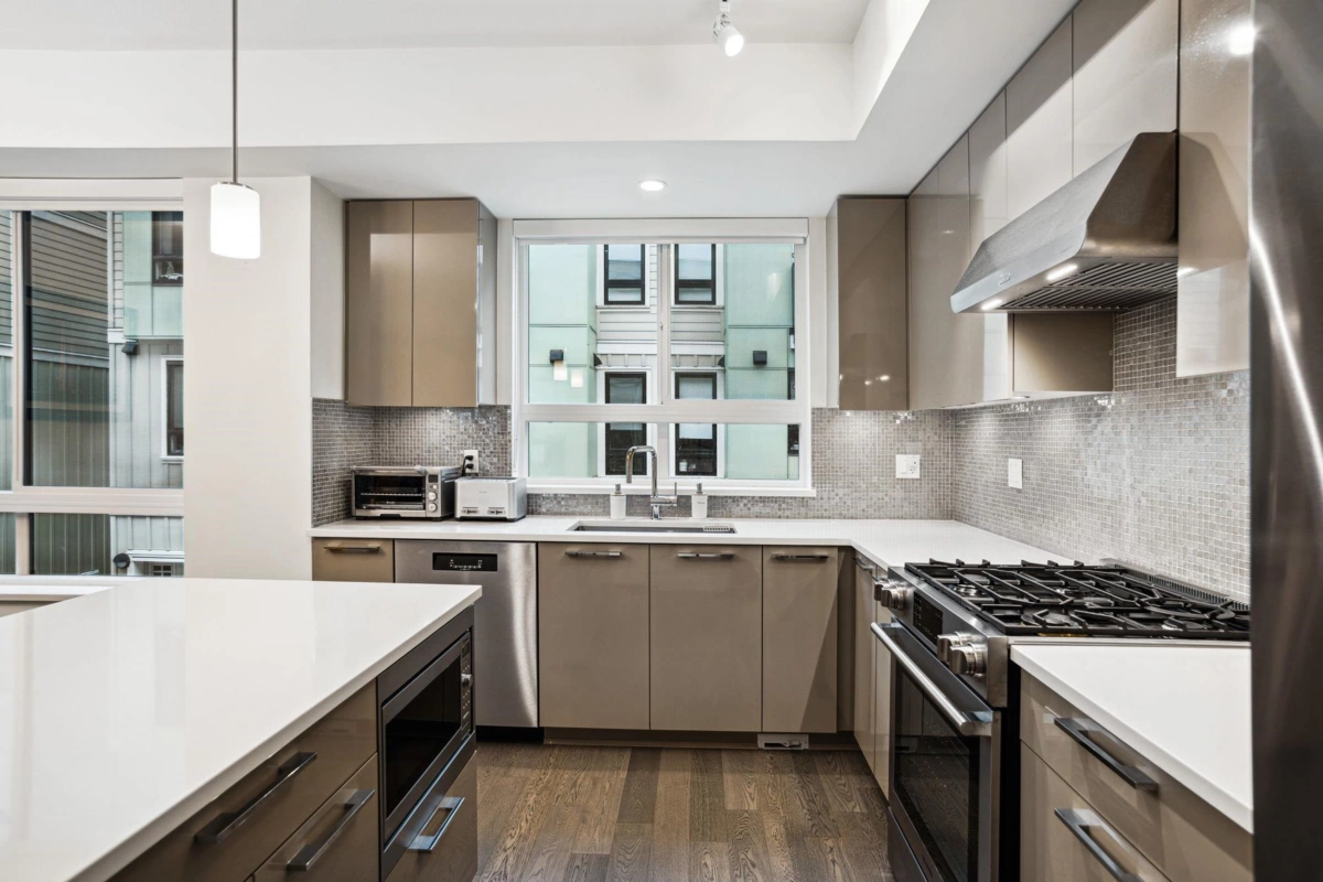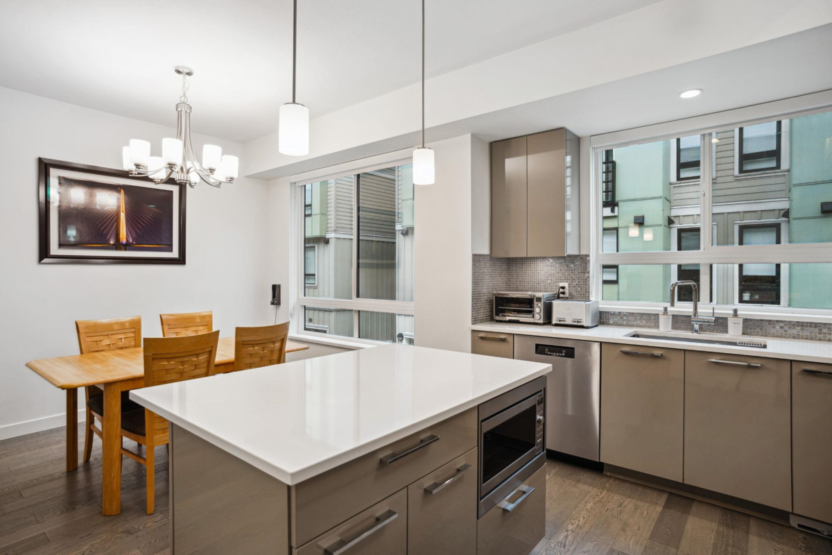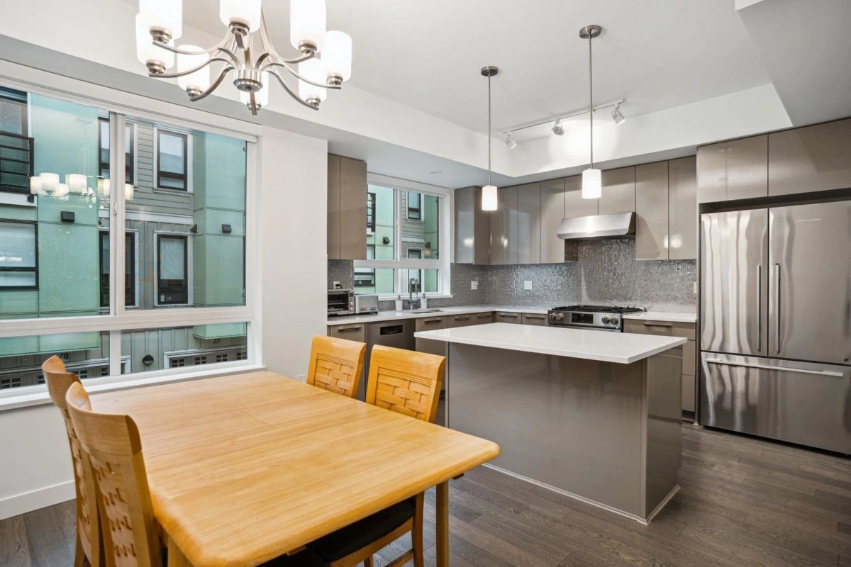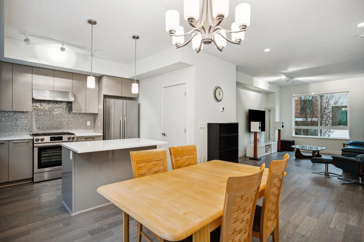 Parc Riviera Mews by DAVA - This is a 1316 sf 3 bedrooms and 2.5 Bath townhouse with a side by side double parking. It features geothermal heating & cooling, 9 foot ceiling in main living area, 4 burner gas stove, premium engineered hardwood flooring throughout living and dining areas, cozy carpets in bedrooms. Enjoy the waterfront community, dyke trail and park. Amenities include Club House, fitness room, indoor pool with hot tub and outdoor BBQ patio. Do not miss out!