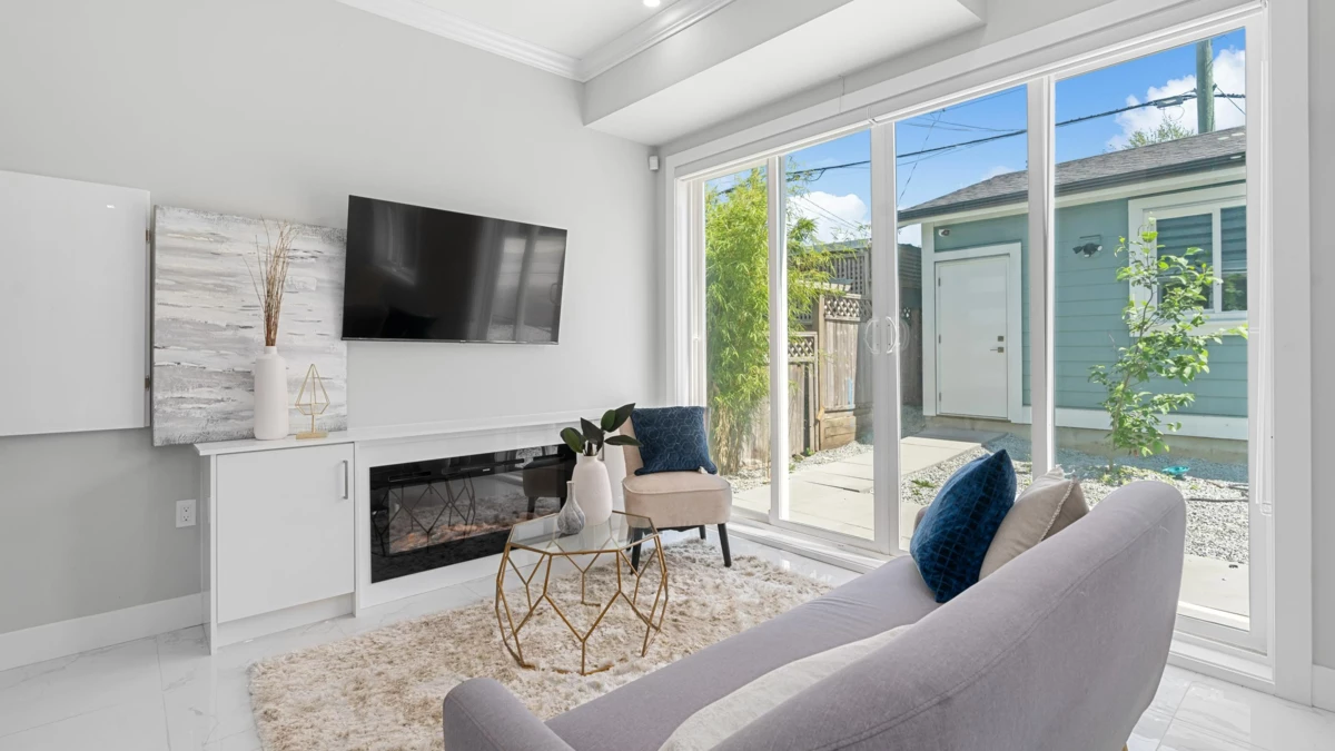 This luxury front to back duplex located on a RARE corner lot is built by a reputable builder with over 30 years experience. Elegant & modern design intertwine with an open concept bright layout to create a beautiful home. Featuring 3 bedrooms & 4 bathrooms. This home includes glamorous finishing, stainless steel kitchen appliances, radiant floor heating, A/C & tons of built in storage & spacious closets. Plenty of outdoor space for the whole family to enjoy as well as single car garage with lane access. Tons of street parking, built in security. Located in a friendly Vancouver neighbourhood, close to shops, parks & schools.