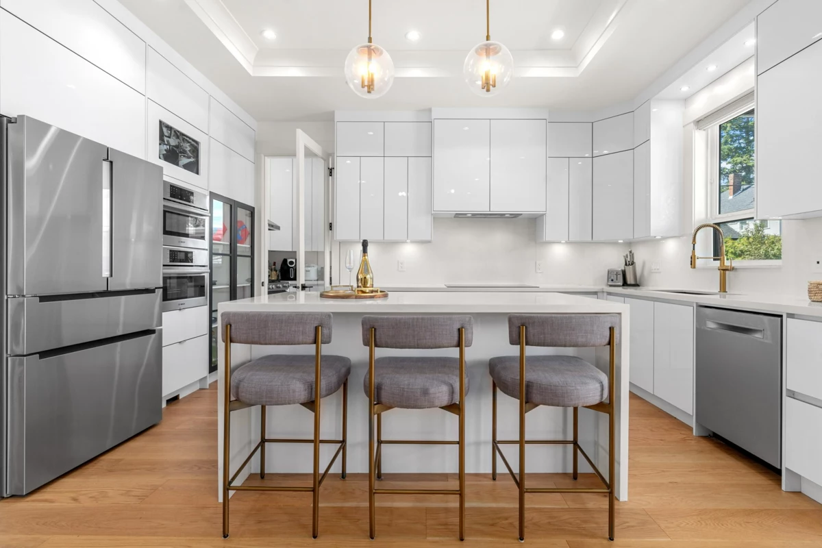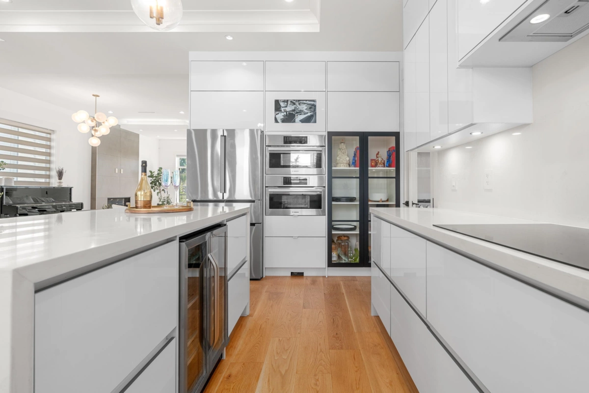 Elegant, custom-built luxury home showcasing modern sophistication in Burnaby, near Metrotown. Featuring 7 spacious bedrooms and 7 bathrooms, including 2 private suites, this 2021-built home offers a refined open-concept layout with soaring ceilings and premium finishes. The gourmet kitchen is complemented by a fully equipped prep kitchen and high-end Bosch appliances, perfect for seamless entertaining. Includes a separate double garage. Designed for multigenerational living or grand hosting, this home blends timeless style with contemporary comfort. Thoughtfully equipped with air conditioning, an HRV system, and a built-in security system for peace of mind. Close to parks and schools.