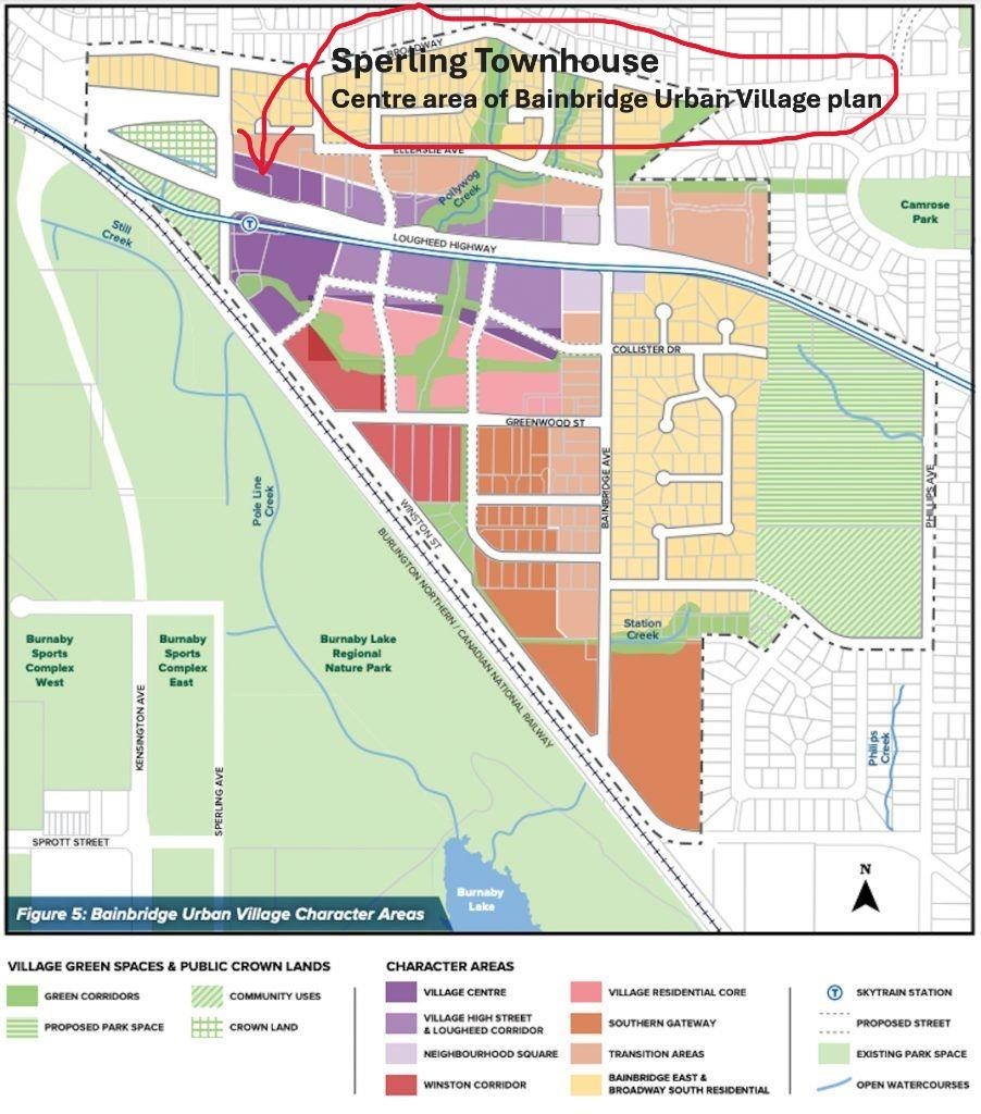 Developers & Investors Alert! The Sperling Townhouse where this unit sits is within 200 meters from Sperling Skytrain, under the Bainbridge Urban Village community Plan and BC legislation, Tier 1 of the Transit-Oriented Development (TOD) zone with a FAR of 5.0, allowing for a minimum 20-story building, maybe could be up to 30 story with certain conditions, rare development site. The complex (31 homes) is expected to be sold to a developer via strata wind-up process. This home has 3-levels, over 2000 SF, 4 beds 3 baths, corner unit, low strata fee, walking distance to Sperling Skytrain, Burnaby Lake, Bill Copeland Sports Center, Sperling elementary and Bus 110,134 & 144 (SFU/Metrotown Station), close to SFU, Brentwood, Lougheed & Metrotown Malls. Great investment opportunity!