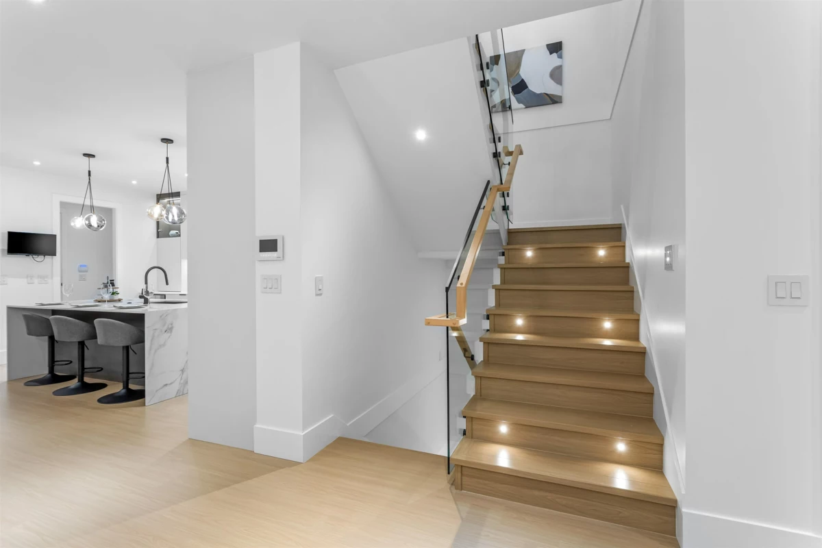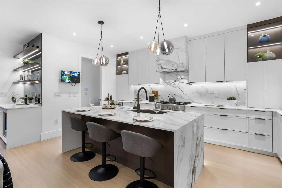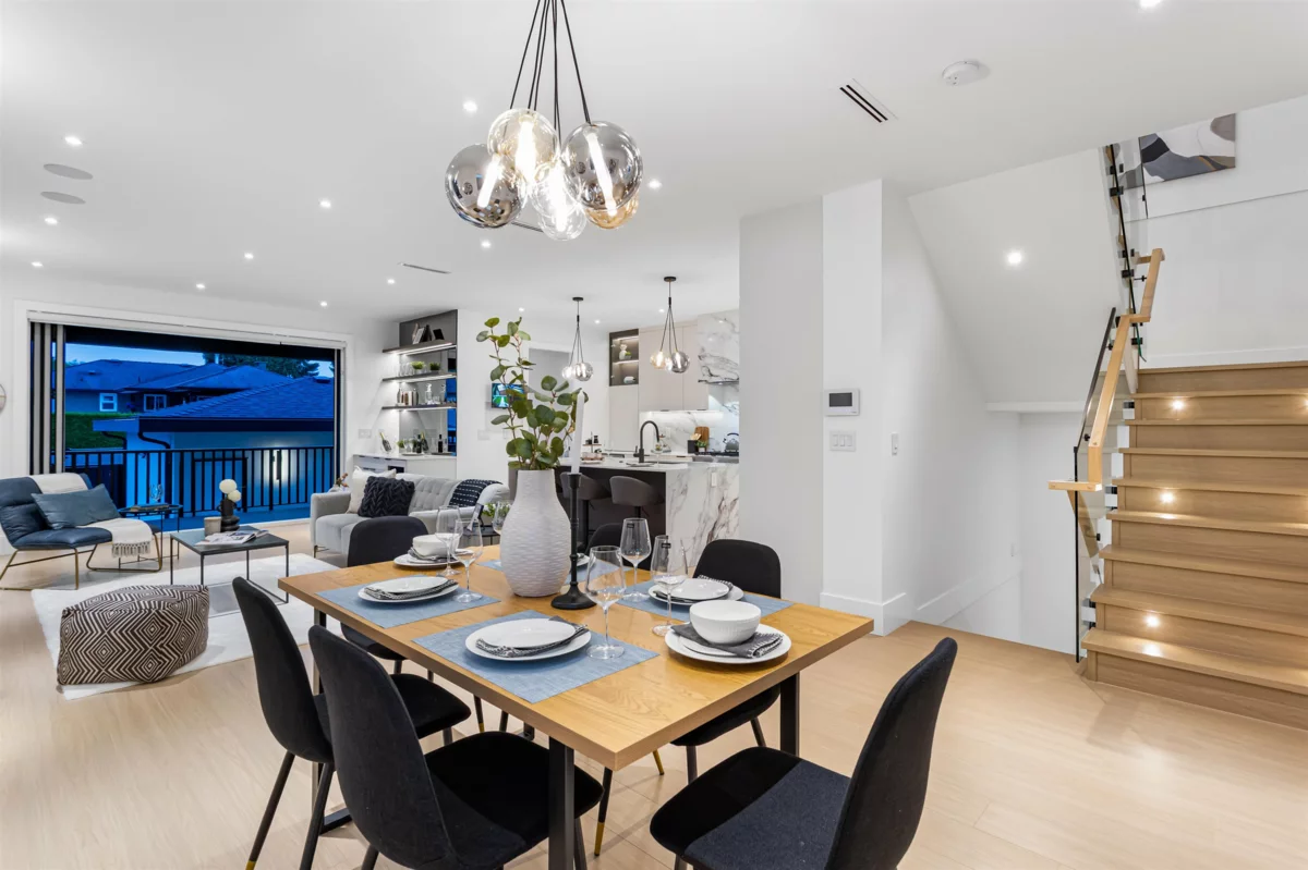 Welcome to Union Residences! These homes are side by side Duplexes with legal suite. TOTAL of 5 BDRMS, 1 DEN & 4 BATHS. Over 2800 sqft of living space. Top floor has 3 BDRMS & 2 full BATHS. Spacious master m with walk in closet. Spa like bath & private deck to enjoy your evenings. Open concept main floor with den in front, beautiful off white kitchen with built-in integrated appliances. Spacious breakfast bar with seating. Mud room from the back door. Hands reach personal bar from the family rm & covered deck. Eclipse doors to enjoy in-out feel in the summers. 2 BDRM spacious legal suite with laundry & dishwasher..All designer lights & fixtures! A/C, radiant hot water floors, CCTV...& walking distance to both levels of schools, SFU. Short drive to all restaurants & shops.