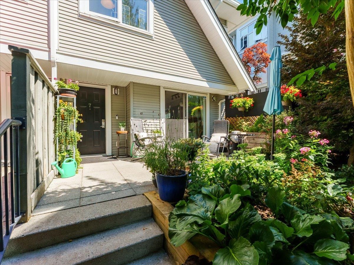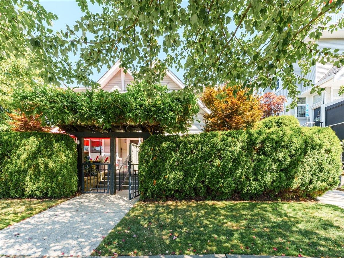 On a quiet street where gardens bloom, this corner townhome has 1,213 sqft of room. A south-facing fenced patio, private & sweet, with gated entry for a charming retreat. Step inside to an open plan, with a cozy gas fireplace — inviting & grand. A renovated kitchen, sleek & bright, with quartz counters, stainless appliances, bar fridge & under-cabinet lights. Upstairs, 3 bedrooms welcome you in, 2 with bench seats where mornings begin. The primary suite is a tranquil space, with walk-in closet & ensuite in place. 3 bathrooms, fresh & perfectly styled, in-suite laundry up ideal for a happy family lifestyle. 2 parking, storage & a strata well-run, near Brentwood, SkyTrain & parks in the sun. This home blends comfort, style and location!