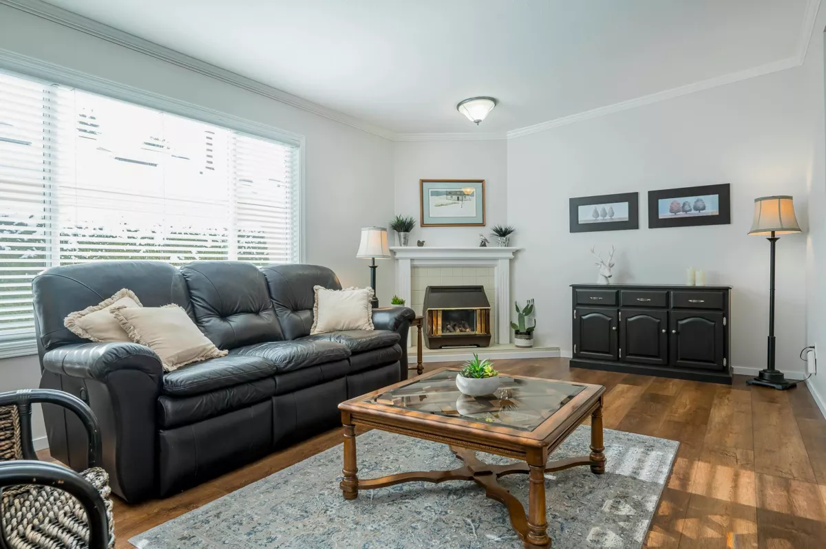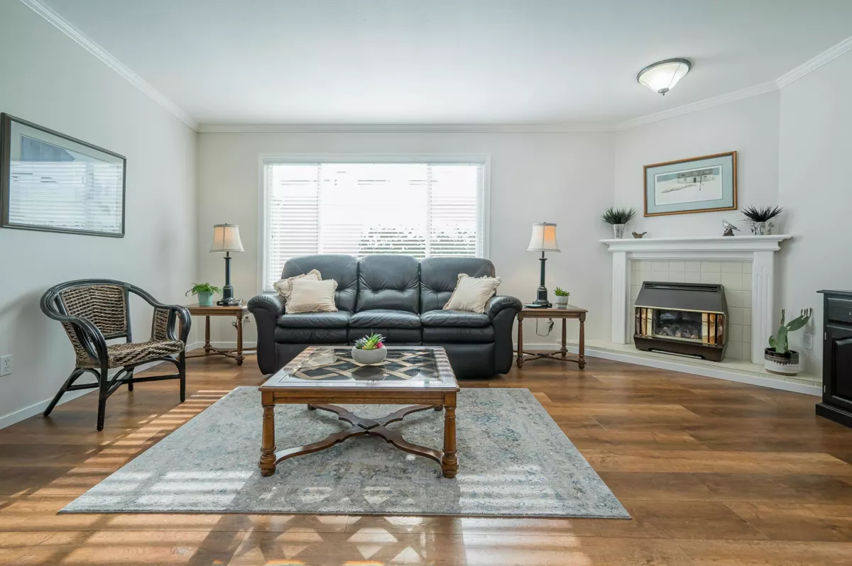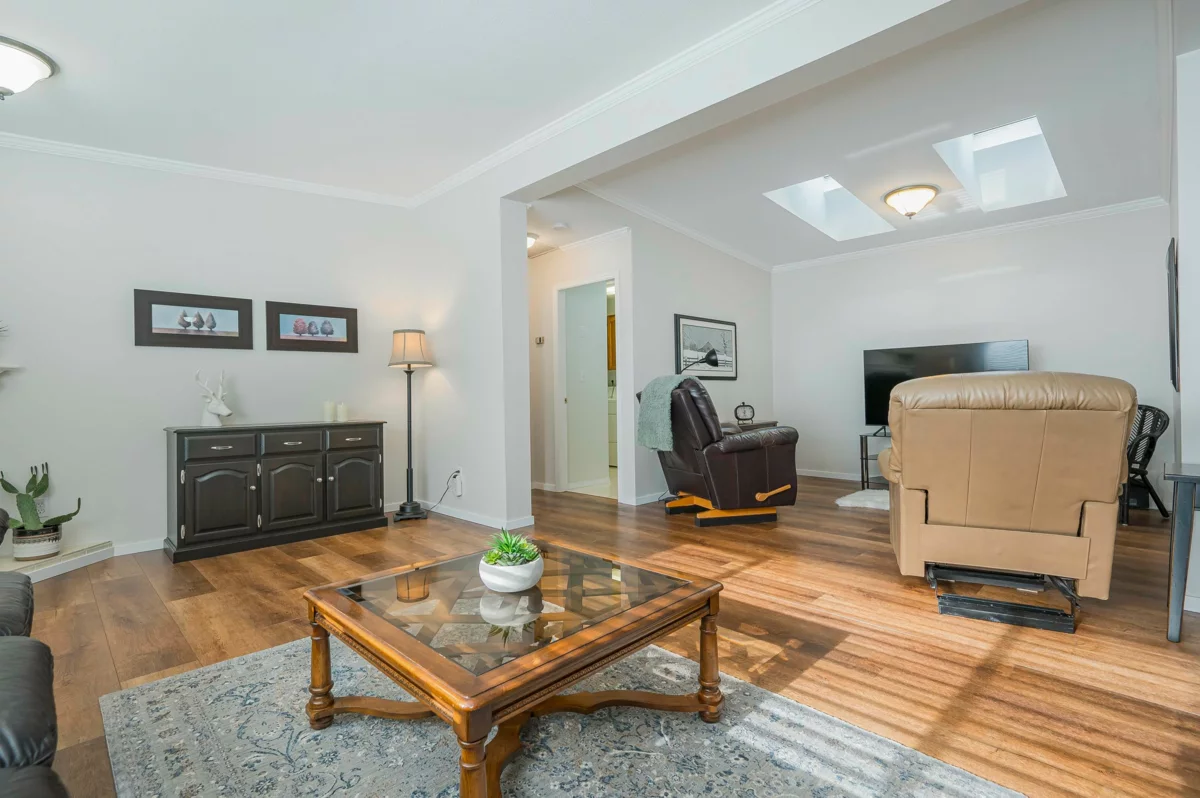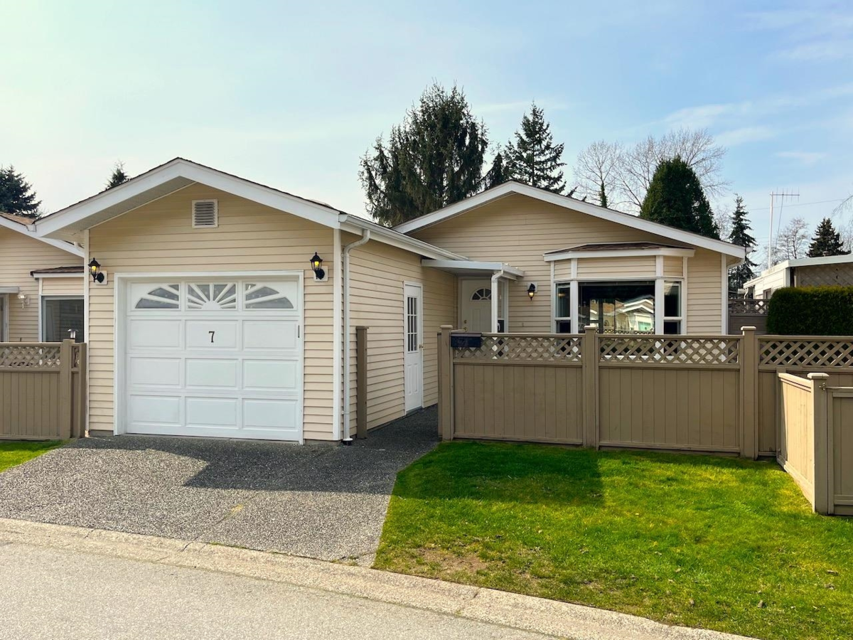 Welcome home to this bright, 1 level rancher/bungalow. 55+ Quiet location in complex. Vaulted ceilings with skylights showcase a large living room, dining room. New vinyl plank flooring in 2023 throughout main living area. South facing kitchen, opens onto large patio with good lighting. New gas furnace March 2025. Cozy gas fireplace & forced air heating. Central Vac. Large master/primary bedroom & 2nd bedroom. Sizable laundry room with ample storage. Garage with work bench and storage, Spacious covered patio with tiered, well manicured west facing backyard for outdoor activities and entertaining. Pet friendly. Lots of visitor parking, Recreation facility with guest suite. Close to Supermarket, Hwy 99 access, transit and White Rock Beach. A rare find in a great location.