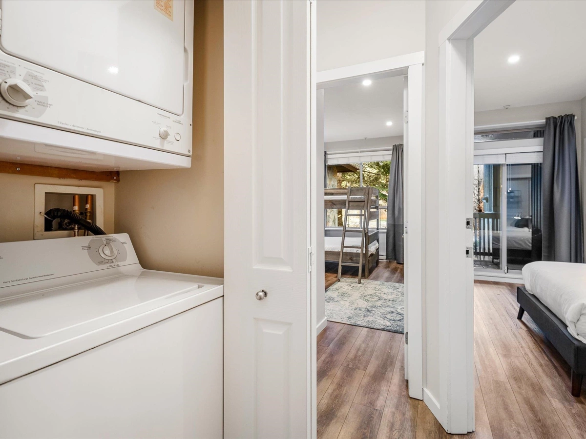 One of the best! This centrally located one-level, townhome is truly exceptional. With 2 spacious bedrooms and 2 bathrooms, it offers a comfortable and beautifully renovated living space for your family and friends to enjoy. Conveniently situated near shops, restaurants, and the village, the shuttle and it's also just minutes away from the ski hill. Enjoy the ease of the valley trail system which is accessible from both the front and back covered decks in this quiet complex of Symphony. Additional perks include undercover parking, a hot tub for relaxation after skiing, and the convenience of a fully furnished property in the heart of it all. Nightly rentals allowed for revenue generation. Don't miss out on this amazing opportunity!